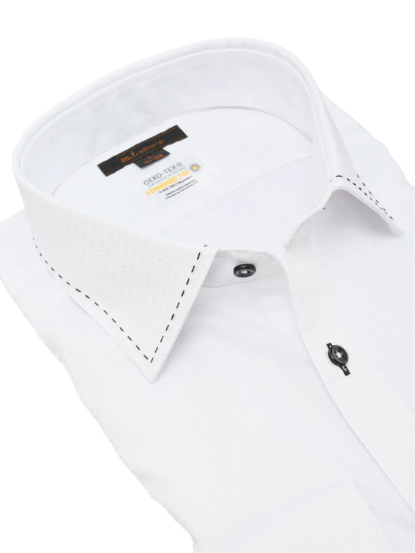 Жаккардовый узор придает образу глубину. Широкий воротник имеет широкий вырез, что позволяет легко сочетать его с галстуком. Ручная вышивка добавляет акцент.