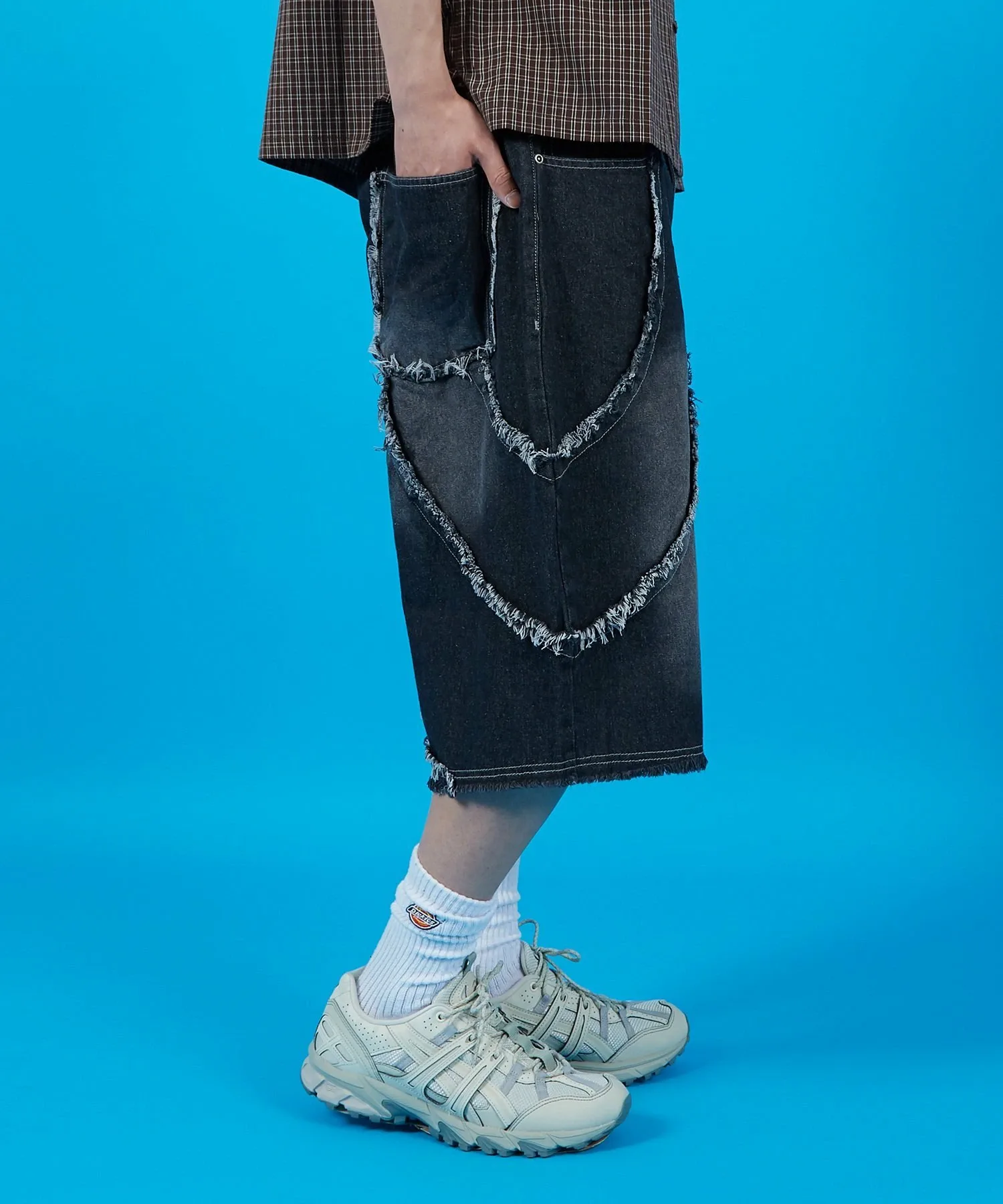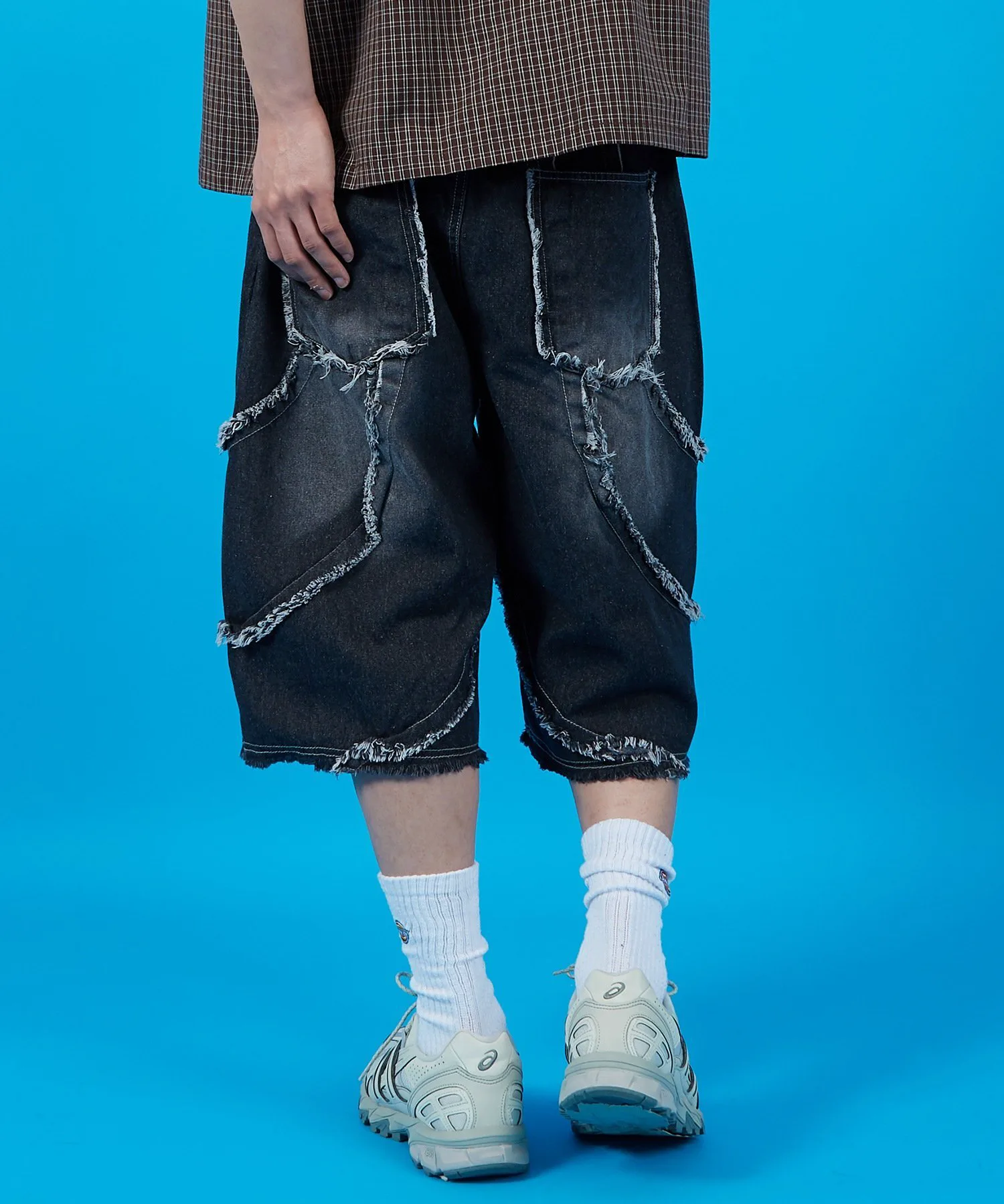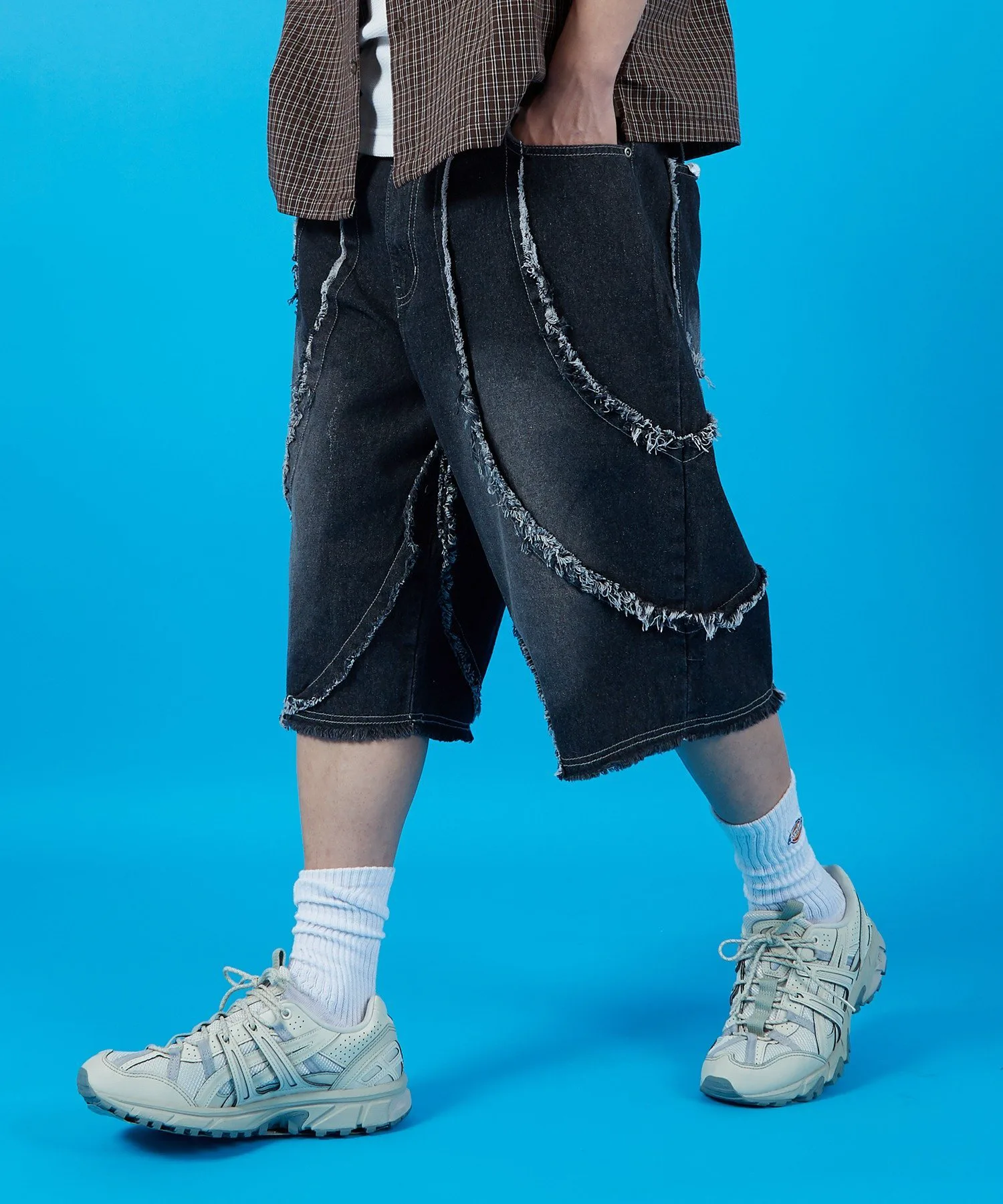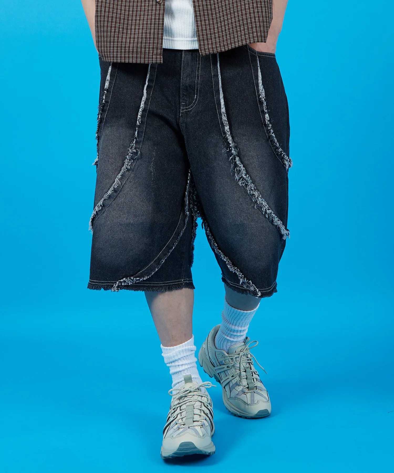 Эти джинсовые шорты с пятью карманами отличаются эффектной трехмерной косой окантовкой и бахромой в этническом стиле.