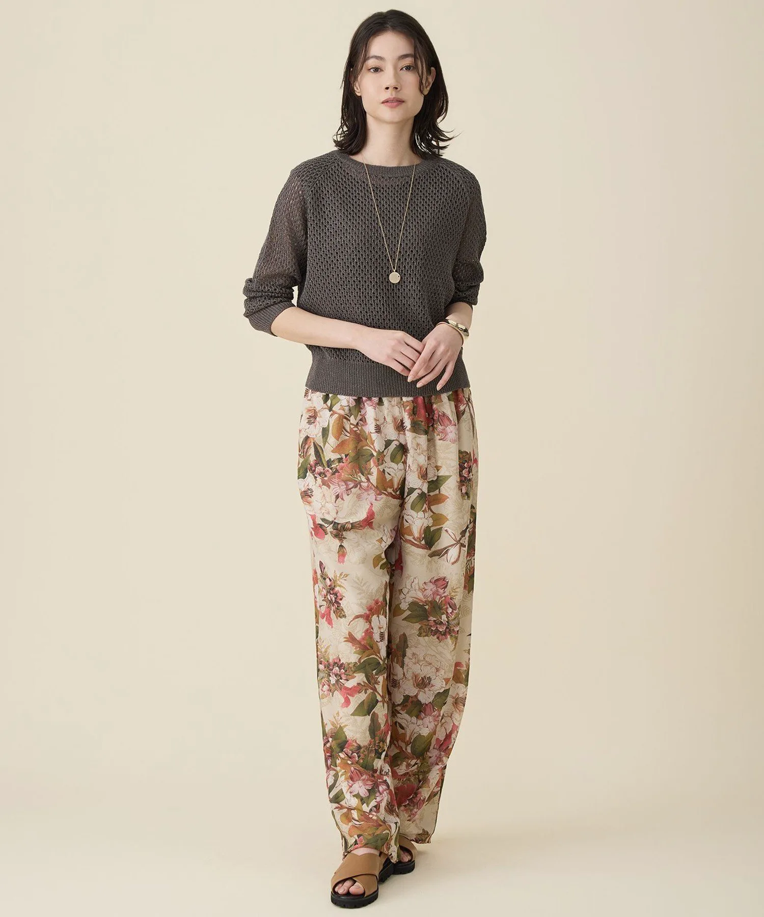 Легкий сетчатый трикотаж, который можно носить с любыми брюками или юбками. Дизайн: Этот трикотаж сочетает в себе умеренно модный стиль благодаря нежной сетчатой вязке. Он имеет базовый силуэт с достаточным запасом свободного кроя, чтобы не подчеркивать линии тела. Он дополняет различные наряды и легко вписывается в ваш гардероб. Материал: Изготовлен из французского льна. Эта пряжа отличается освежающим ощущением и мягкой текстурой, характерными для льна. Она обработана методом прядения, который минимизирует ворсистость поверхности, обеспечивая аккуратный вид. Типичный пуловер из того же материала (KRWMLM0355)