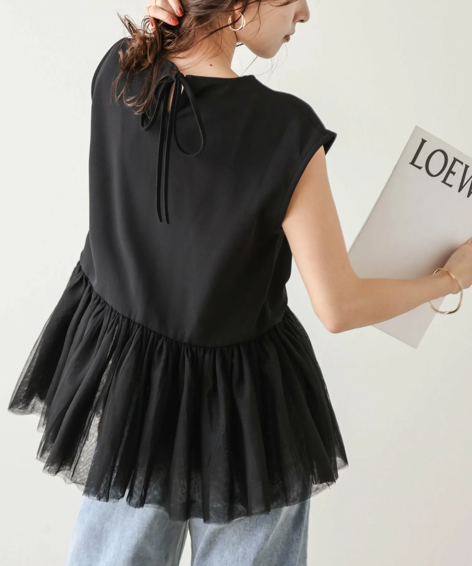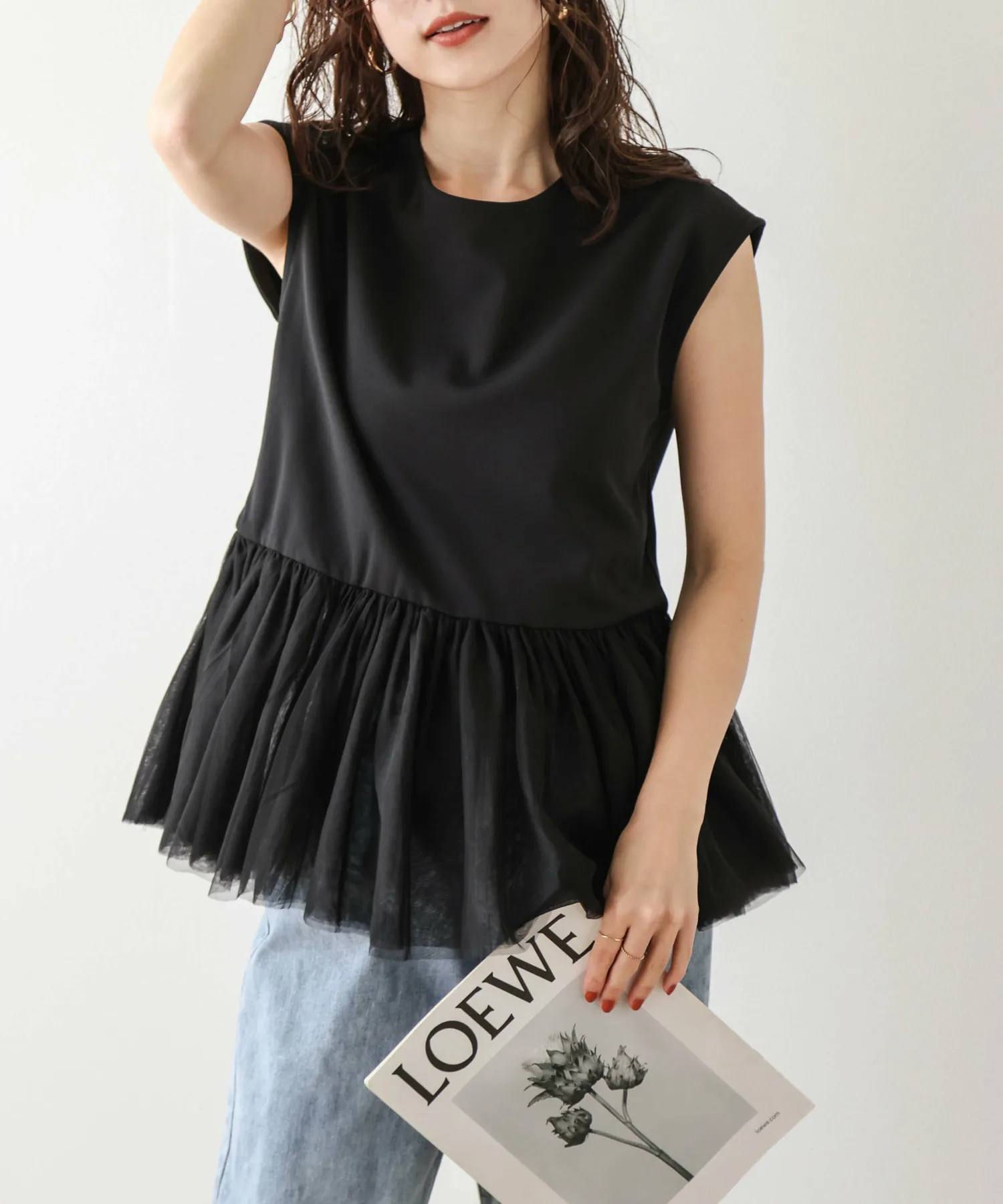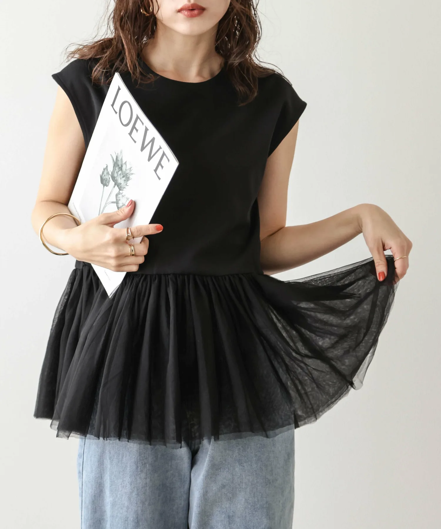 Женственный топ с привлекательной мягкой тюлевой баской.