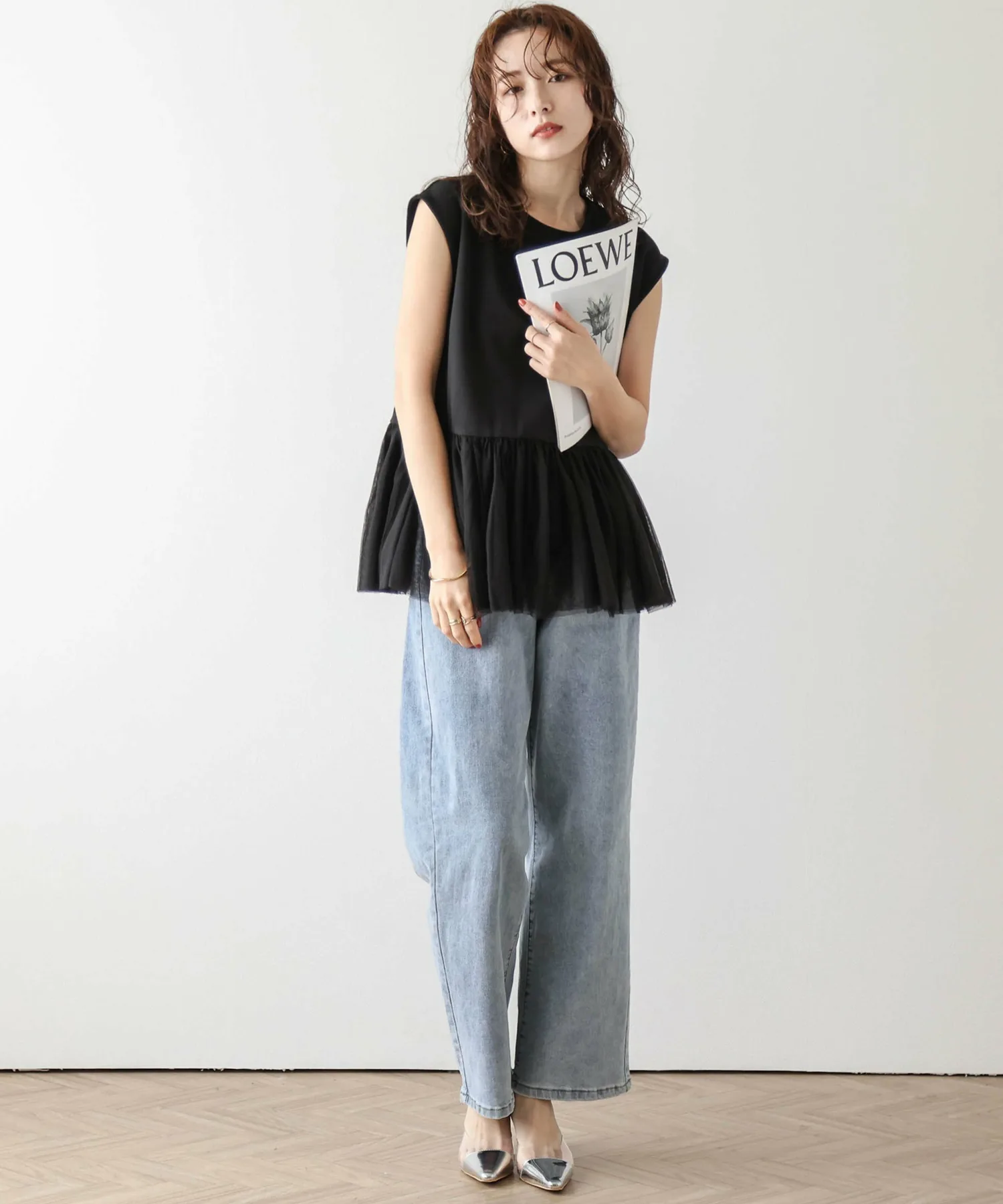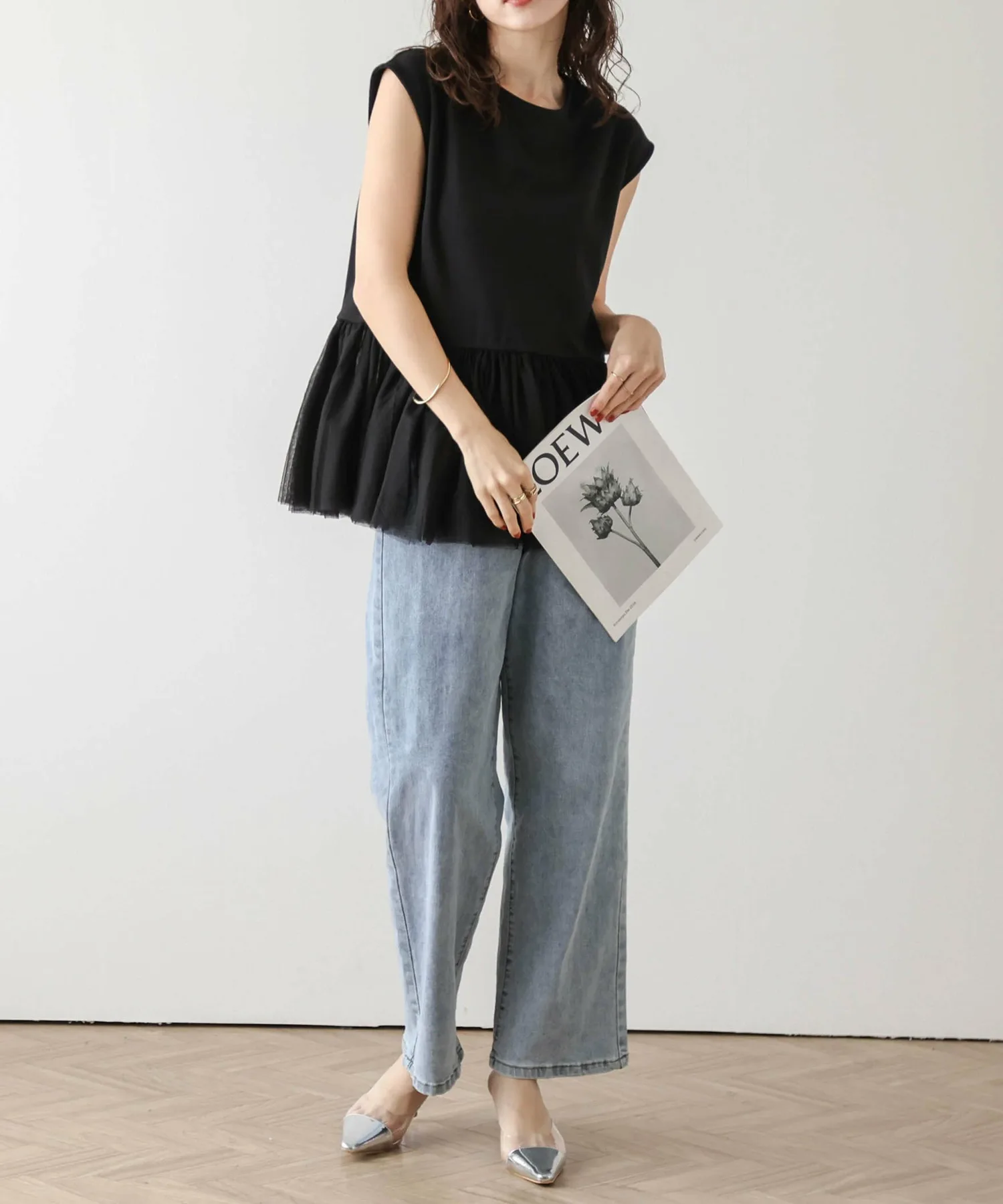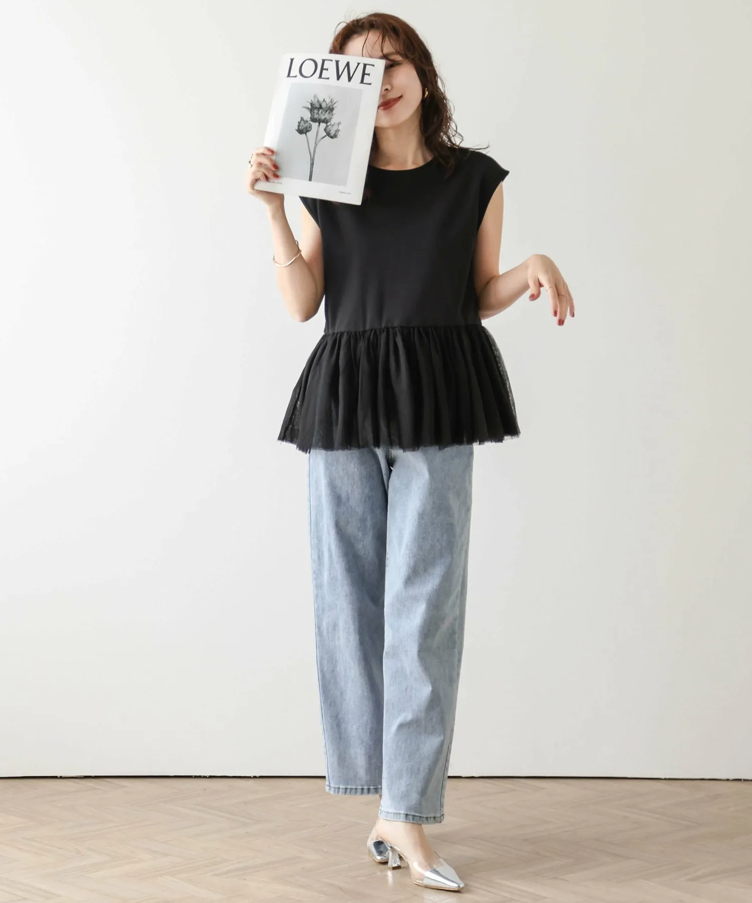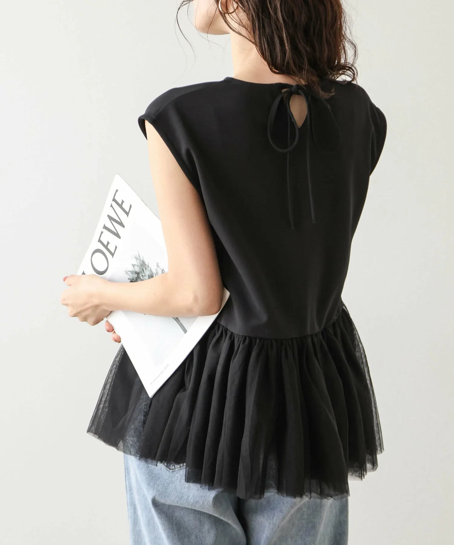 Женственный топ с привлекательной мягкой тюлевой баской.