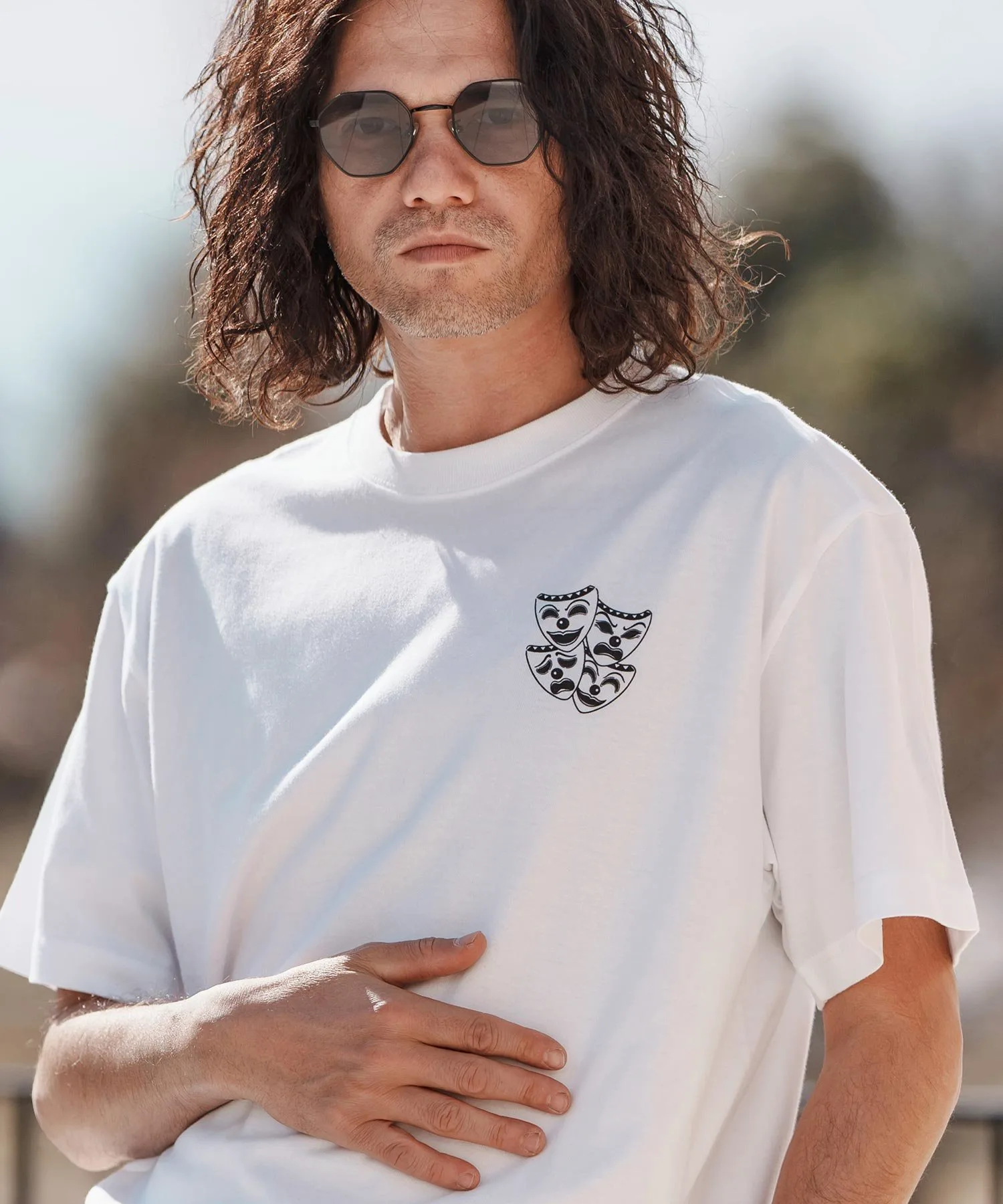 Футболка с принтом, основанным на мотиве двух лиц, который также используется в качестве мотива для татуировок.