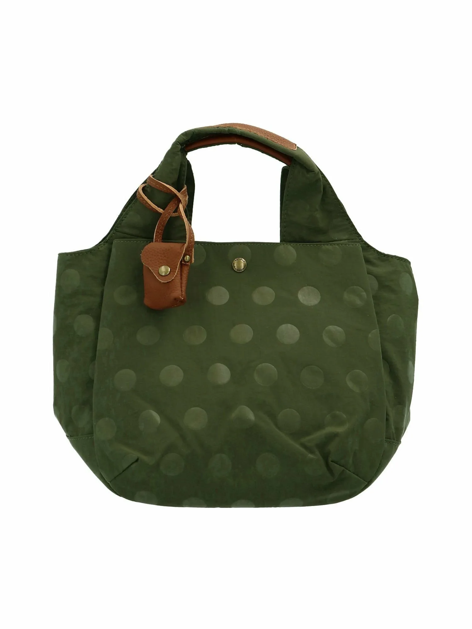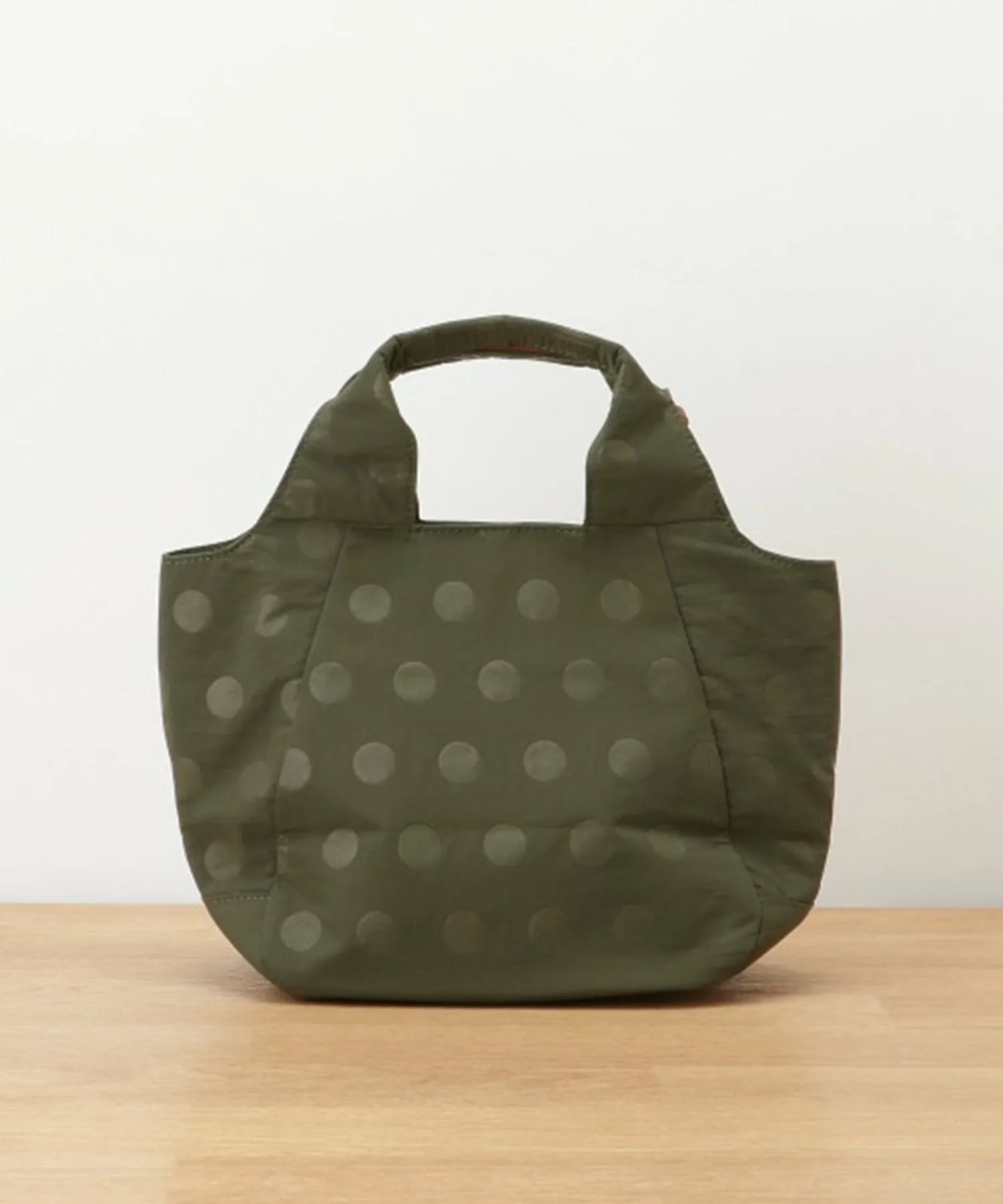 Из серии "Нейлон в горошек/Коровья кожа", в которой термообработанное точечное тиснение на нейлоновой ткани придает ей приятную на ощупь текстуру и ощущение легкости,эта сумка-тоут среднего размера отличается беспрецедентным силуэтом.