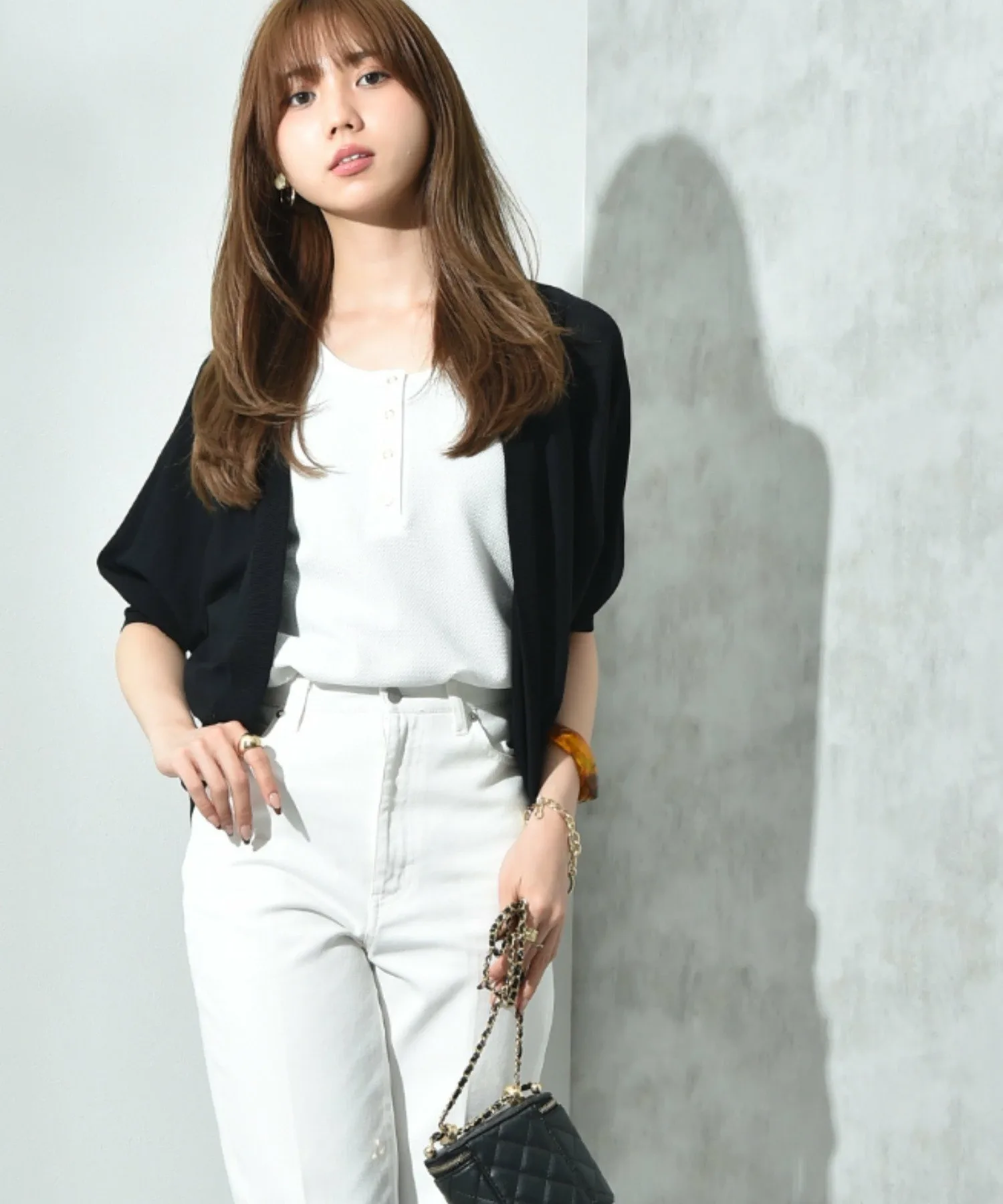 Уровень защиты от УФ-излучения более 80%. Снижает проникновение УФ-излучения. *Протестировано государственным испытательным агентством (УФ-излучение и охлаждающий эффект) INTERPLANET/actuel Концепция Всегда оставайтесь собой и создавайте свой собственный стиль... Для женщин, которые живут в соответствии со своим уникальным стилем, не поддаваясь влиянию времени или возраста. Сочетание модных базовых вещей и непринужденного повседневного стиля. Мы предлагаем такой зрелый повседневный образ.