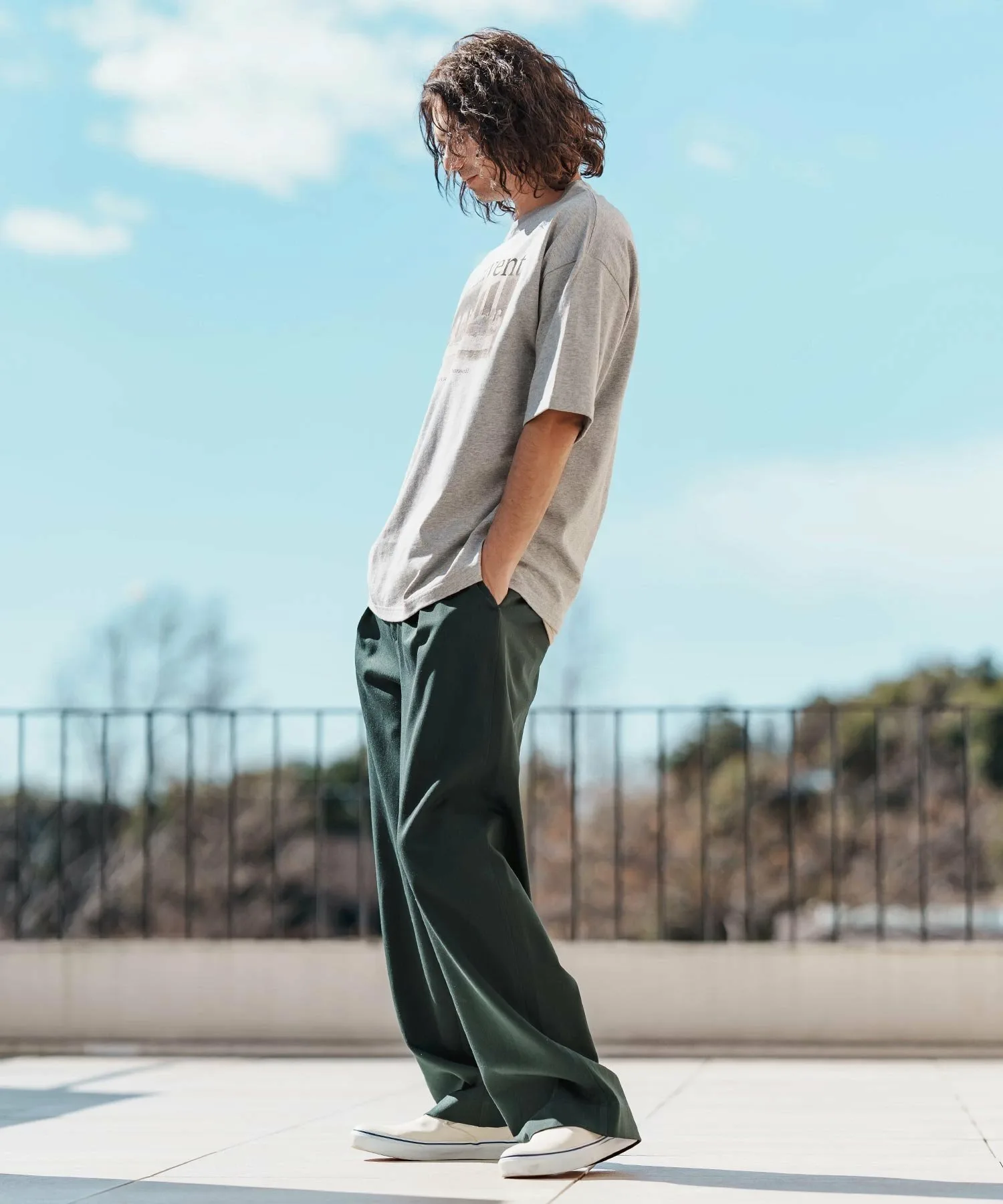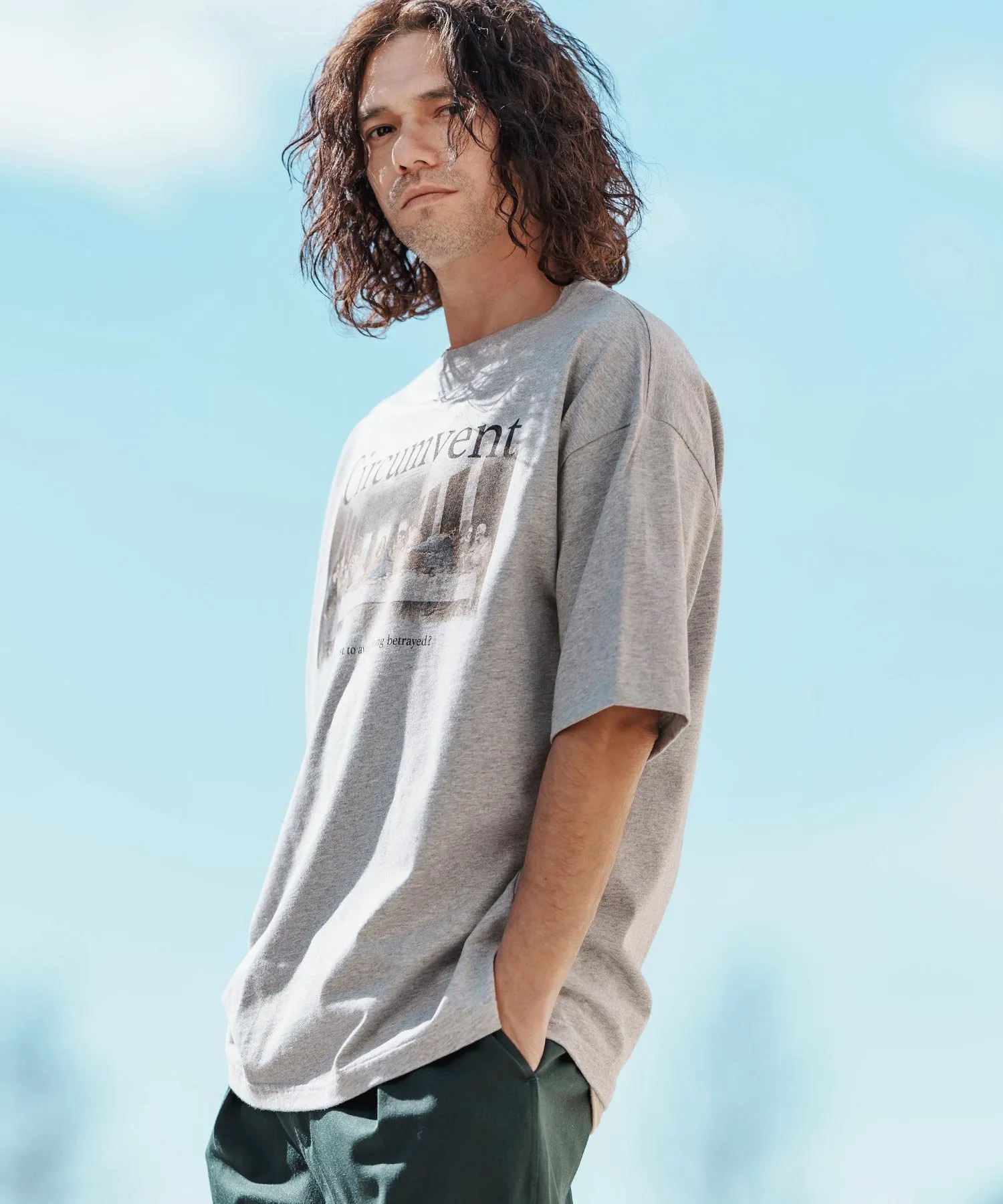 Рост модели 175 см, обхват груди 90 см, талия 73 см, бедра 89 см, размер обуви 26,5 см, размер L.