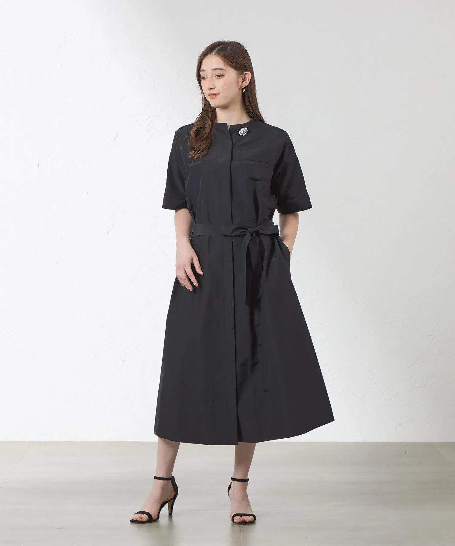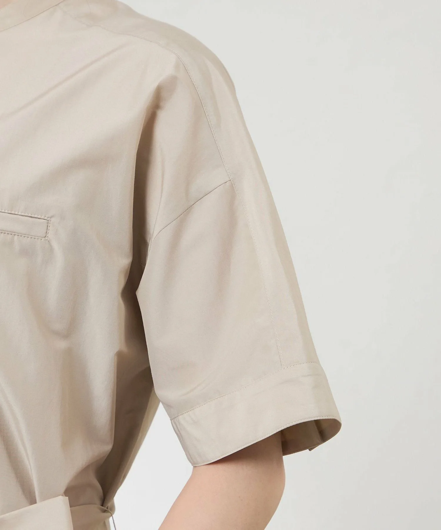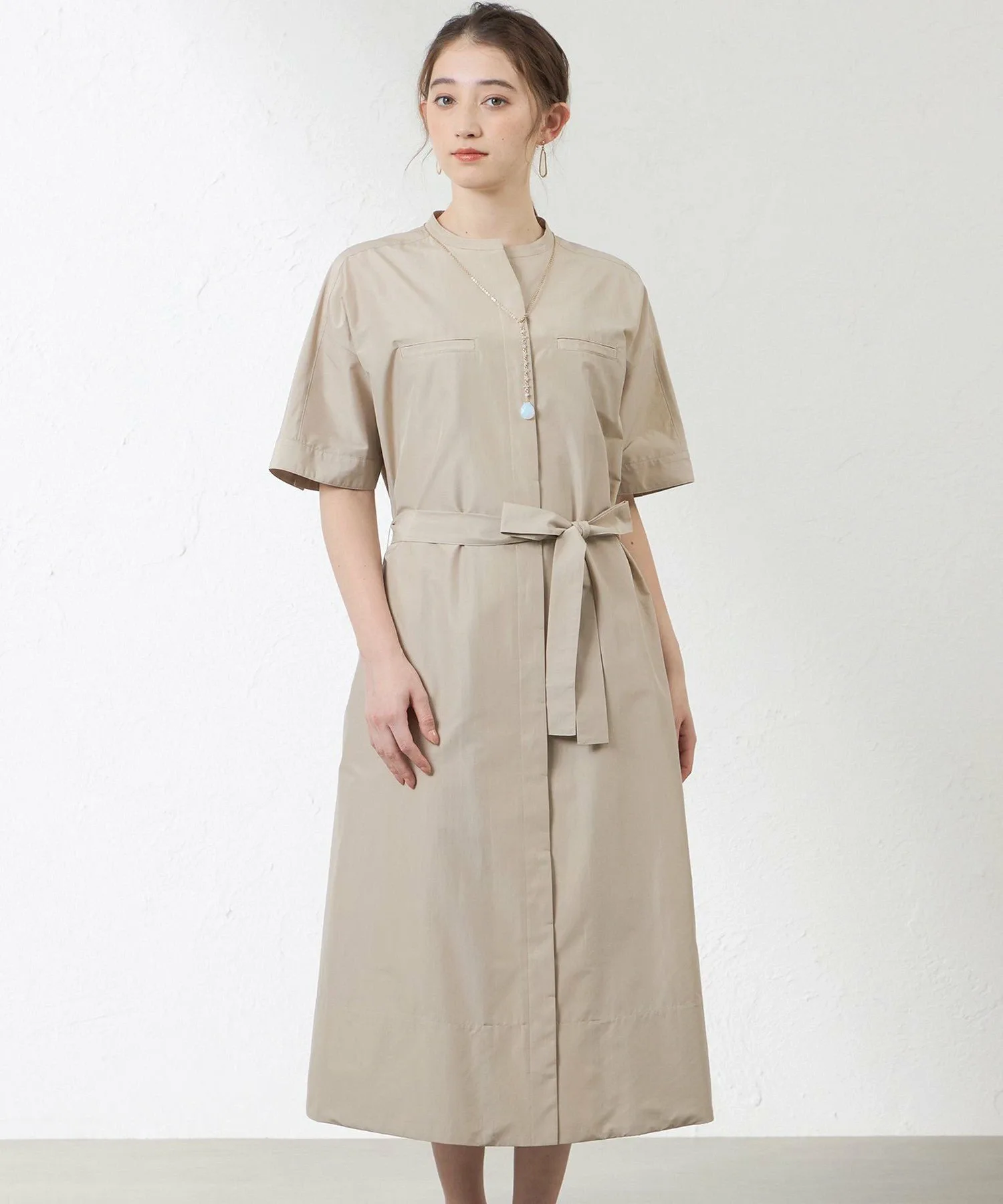 Это платье-рубашка имеет впечатляющий накладной карман на груди. Свободные рукава и манжеты в стиле «летучая мышь» придают ему повседневный, но элегантный вид. Оно также снабжено поясом, поэтому вы можете носить его с завышенной талией. Вы также можете носить его расстегнутым как жакет.