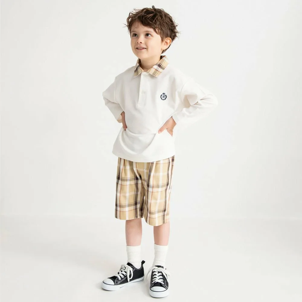 Детский мальчик: 11-5305-359 [В комплекте] Клетчатый Футболка с воротником и длинными рукавами