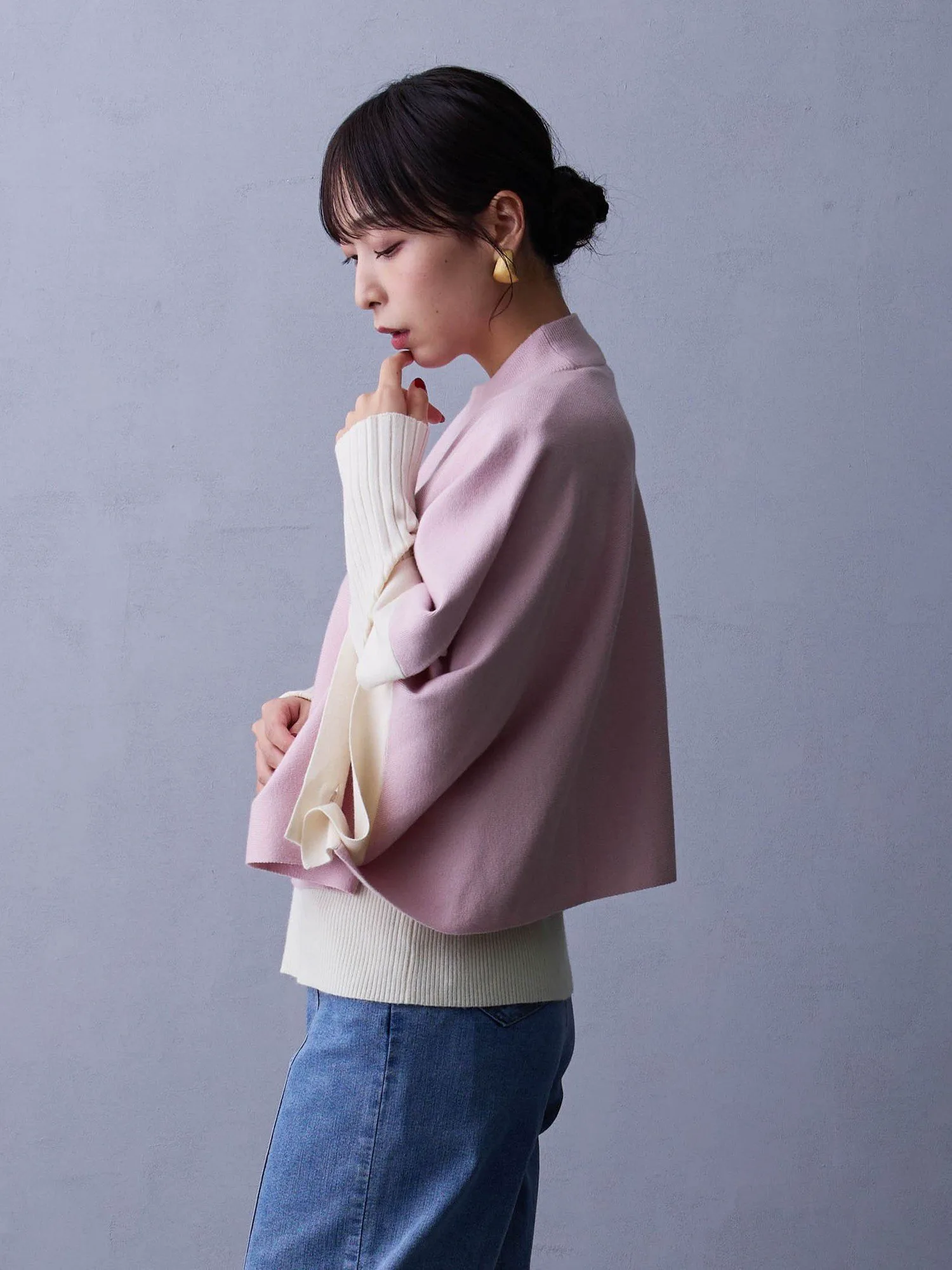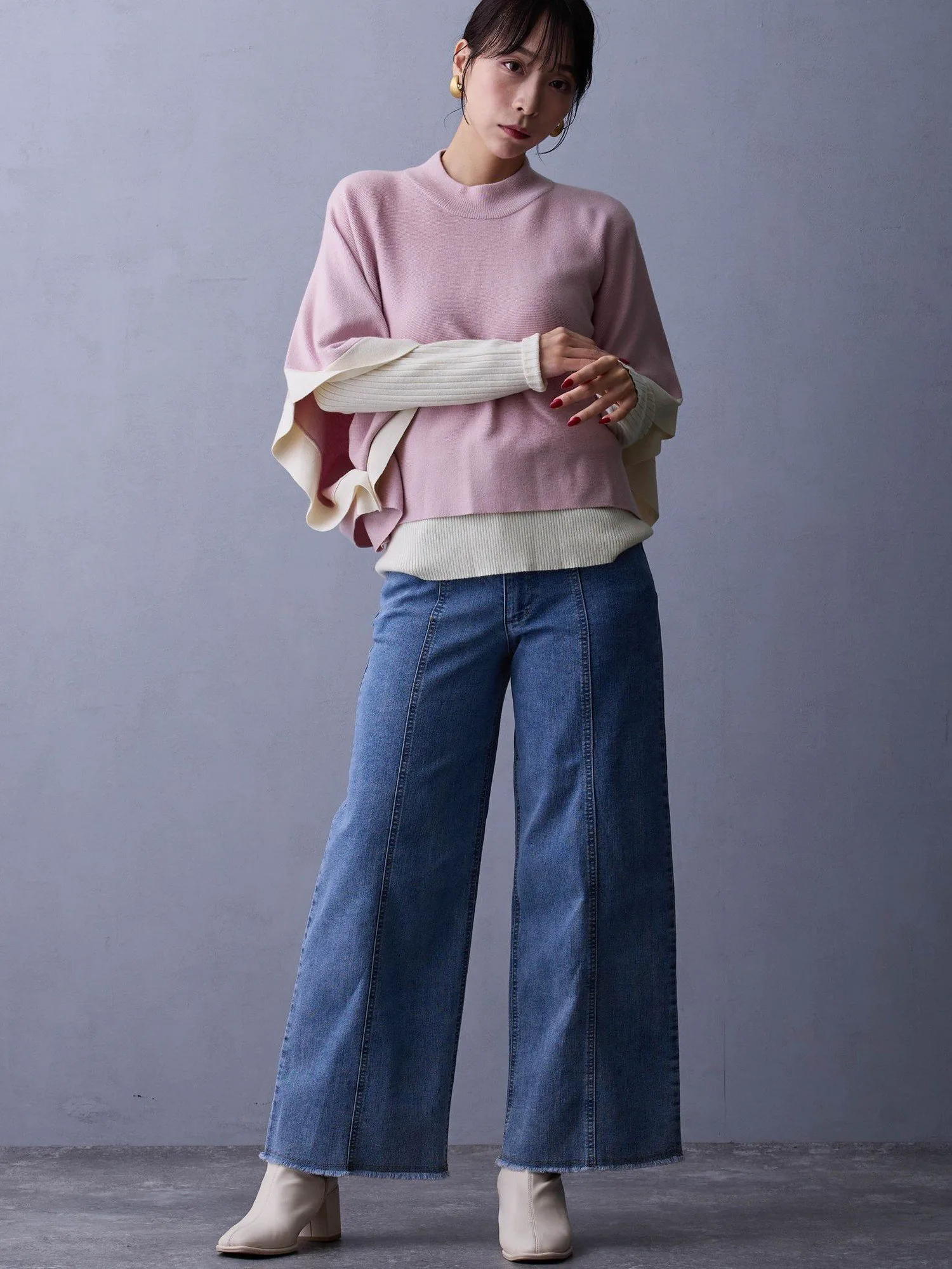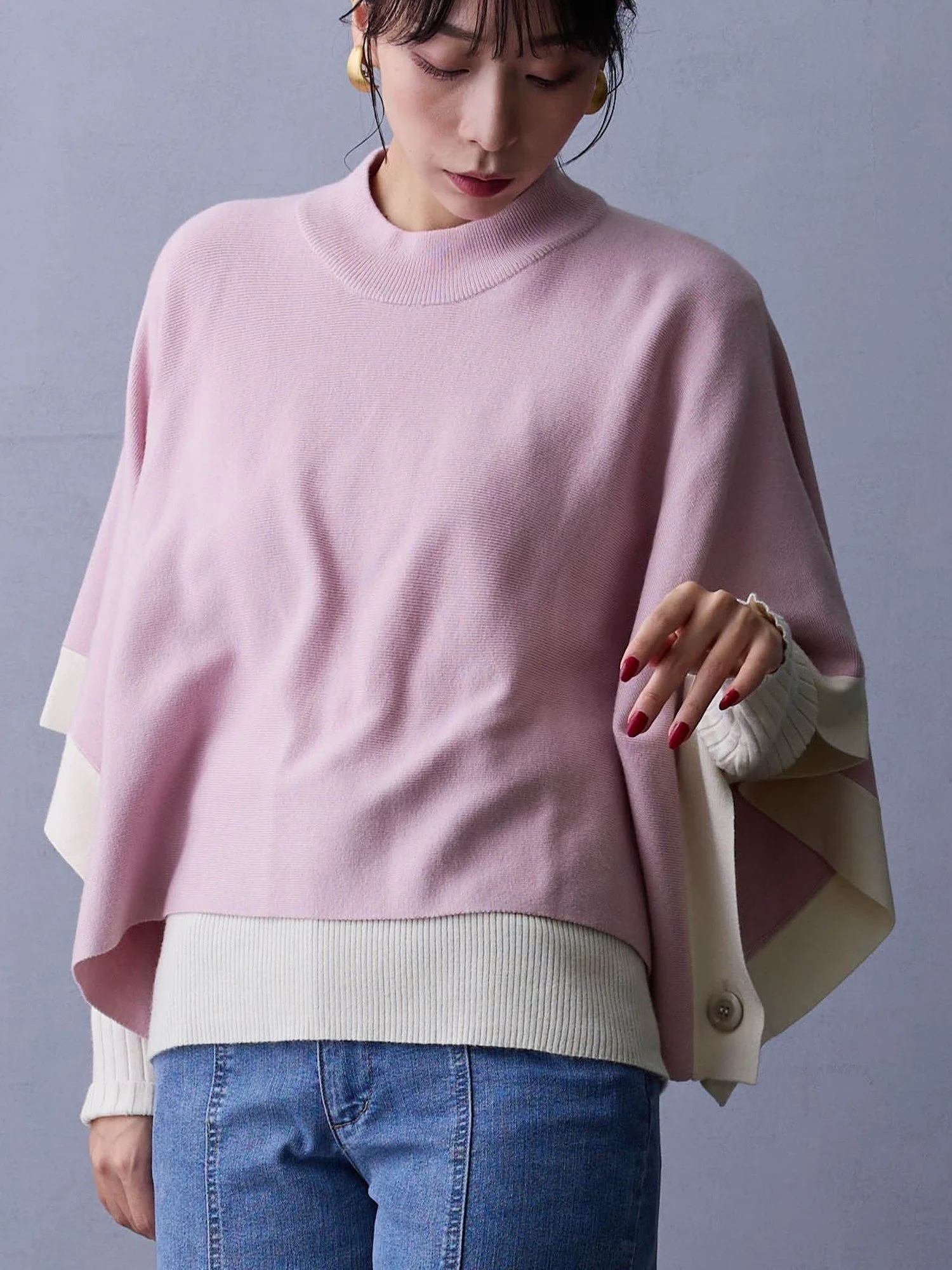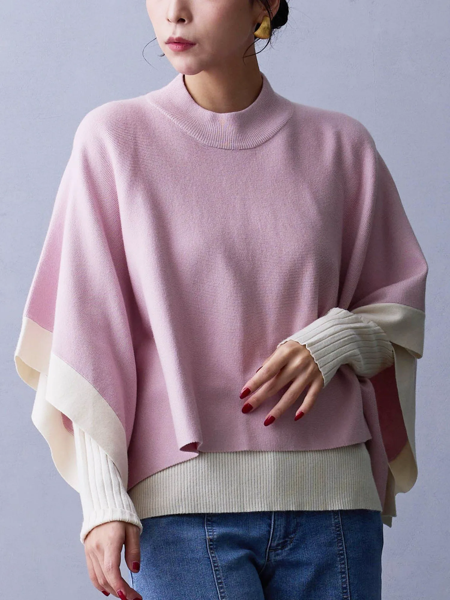 Пончо можно сочетать с рубашкой или блузкой для создания повседневного образа◎