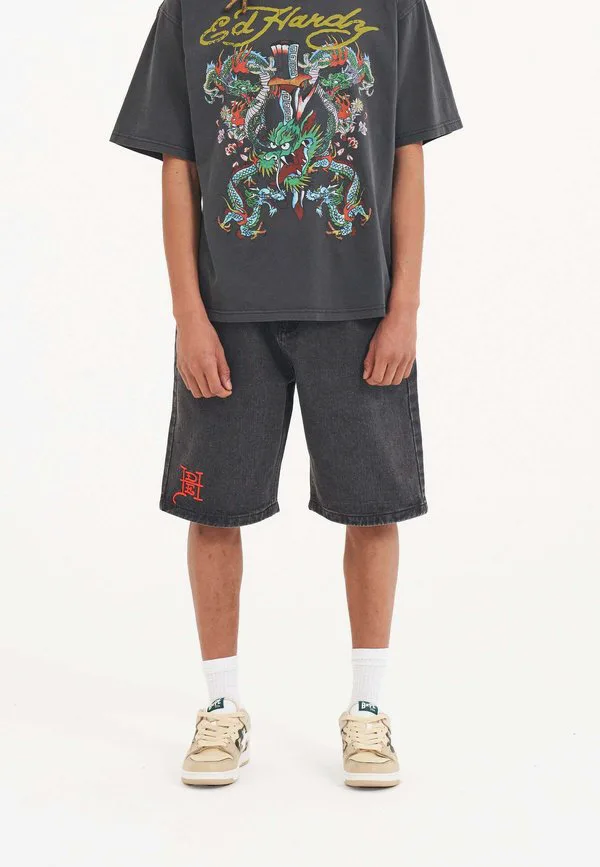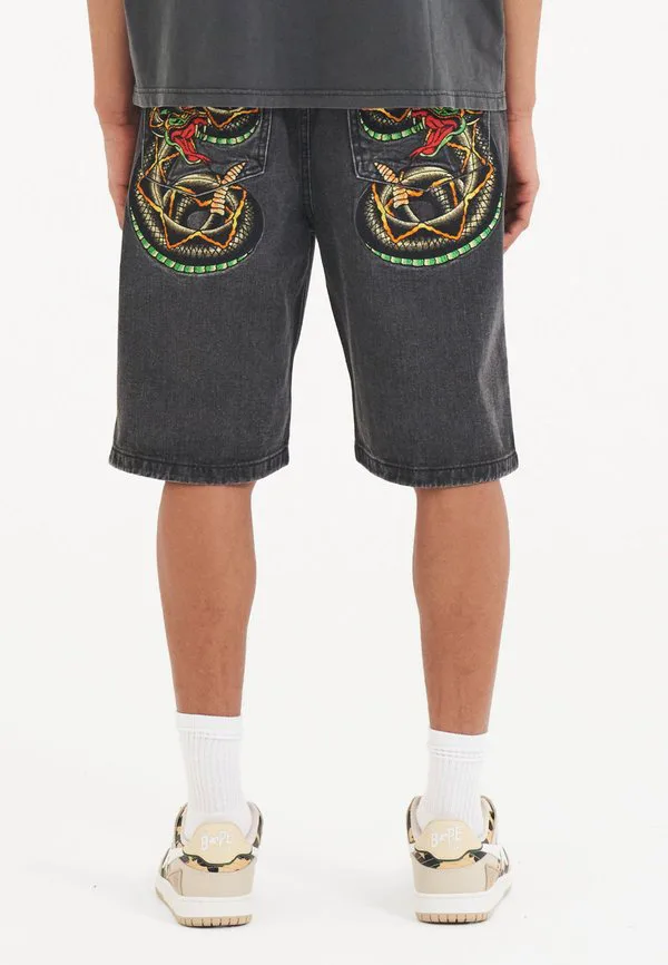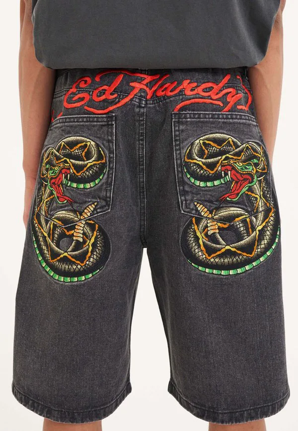 Джинсовые шорты со змеиным принтом Ed Hardy, Grey