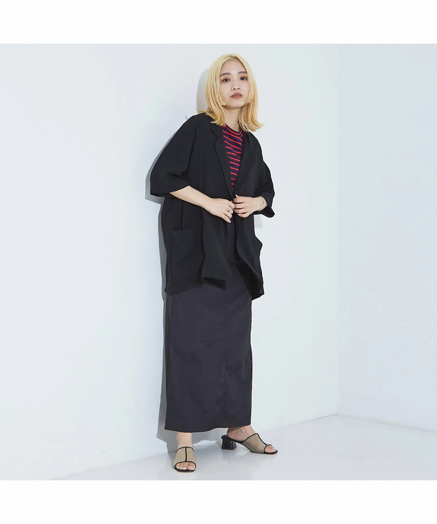 Эластичный пояс создает эффект стройности, а глубокий разрез по низу юбки обеспечивает свободу движений и выгодно подчеркивает фигуру сзади.