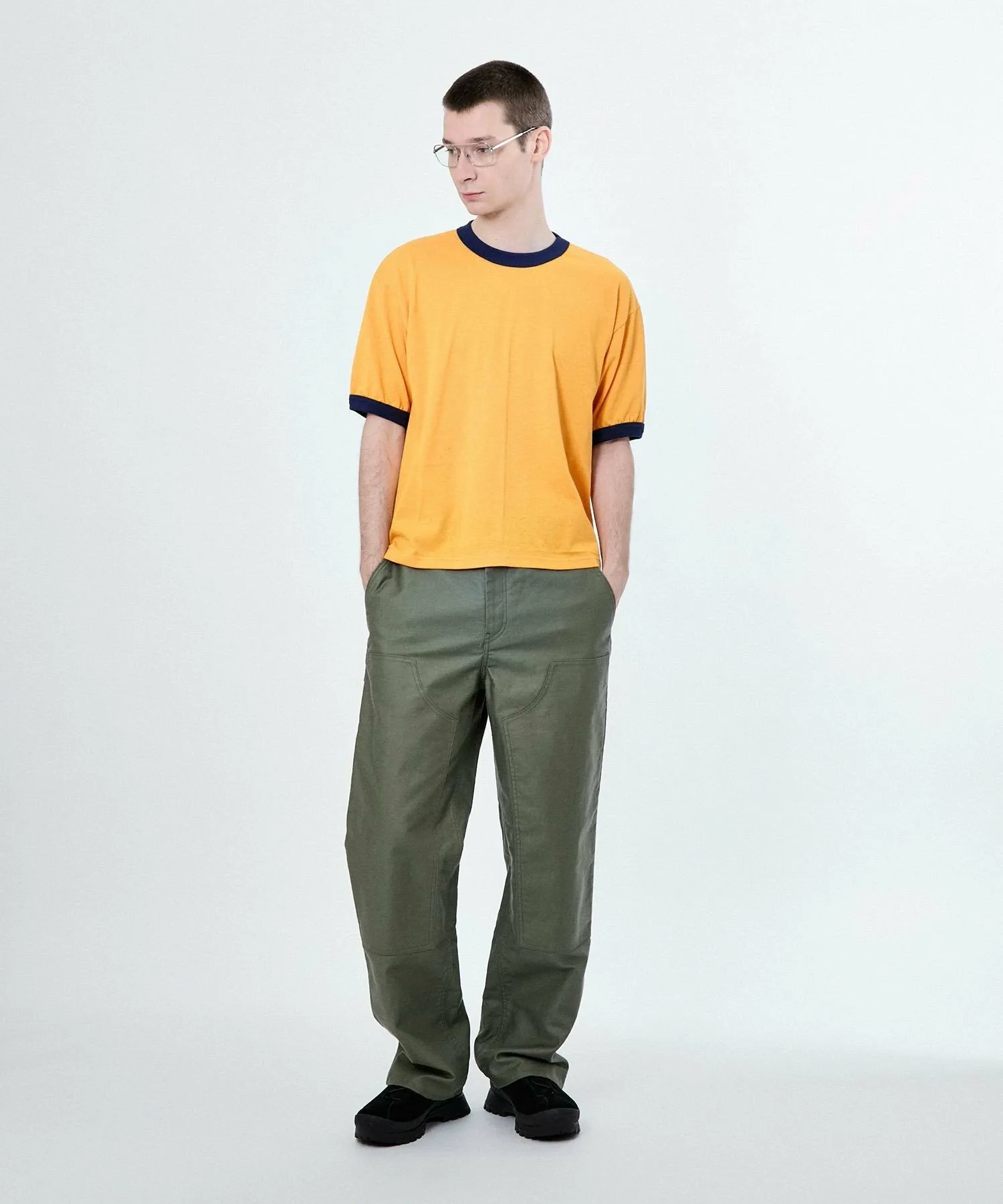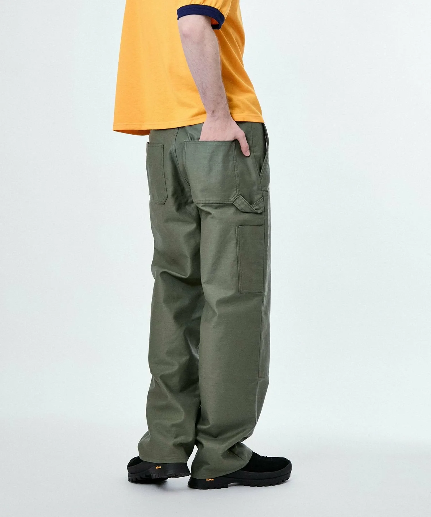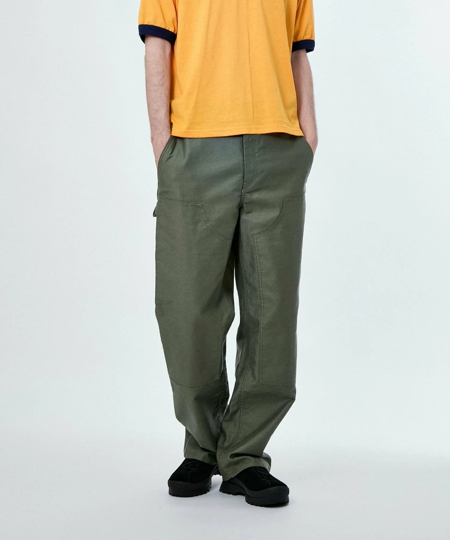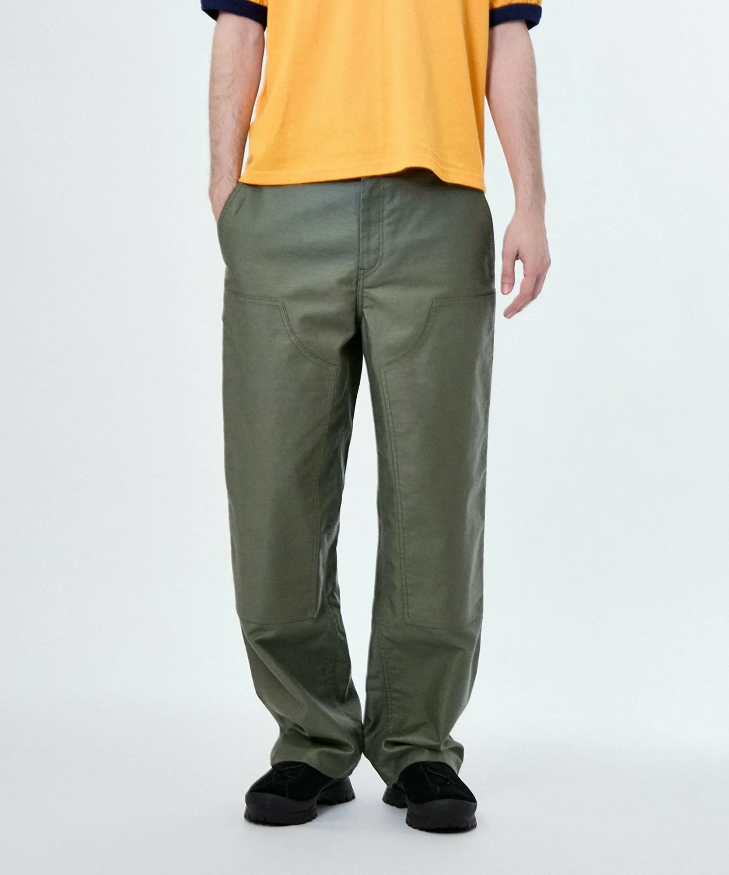 Главная изюминка – это нашивка! Эти брюки прямого кроя в стиле малярных.Изготовленные из винтажного хлопкового атласа, они предварительно выстираны для создания уникального, мятого и идеально подходящего грубого вида.