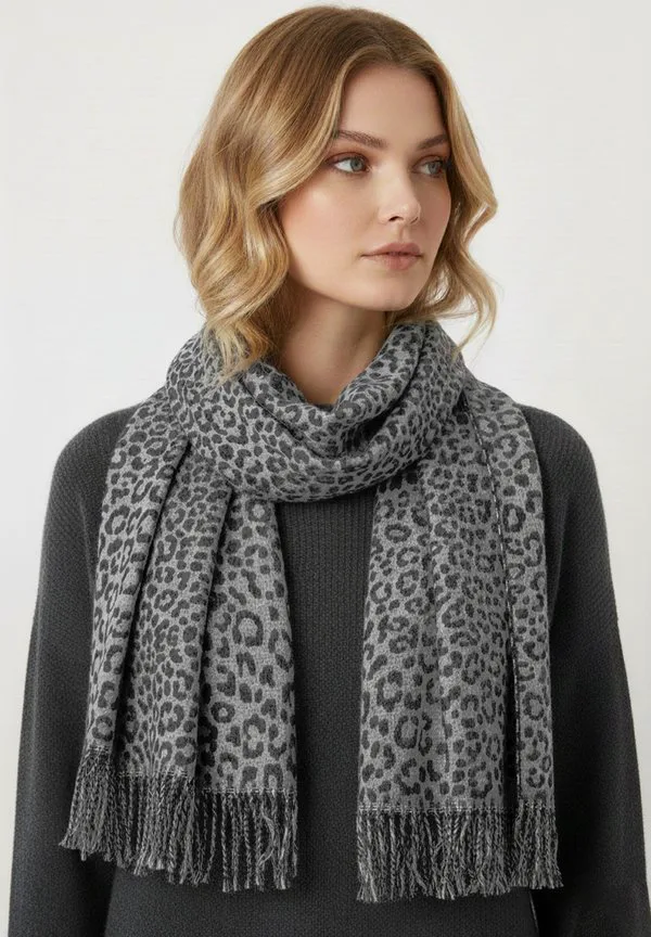 Шарф mit leopardenmuster fransen weich und angenehm Faera, Anthrazit