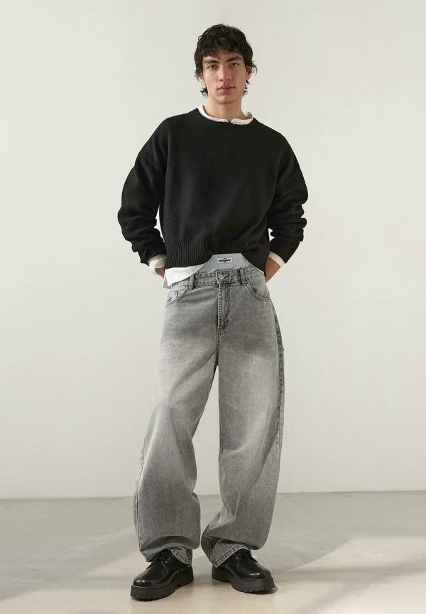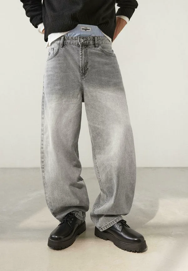Супервышитые мешковатые джинсы Bershka, Grey