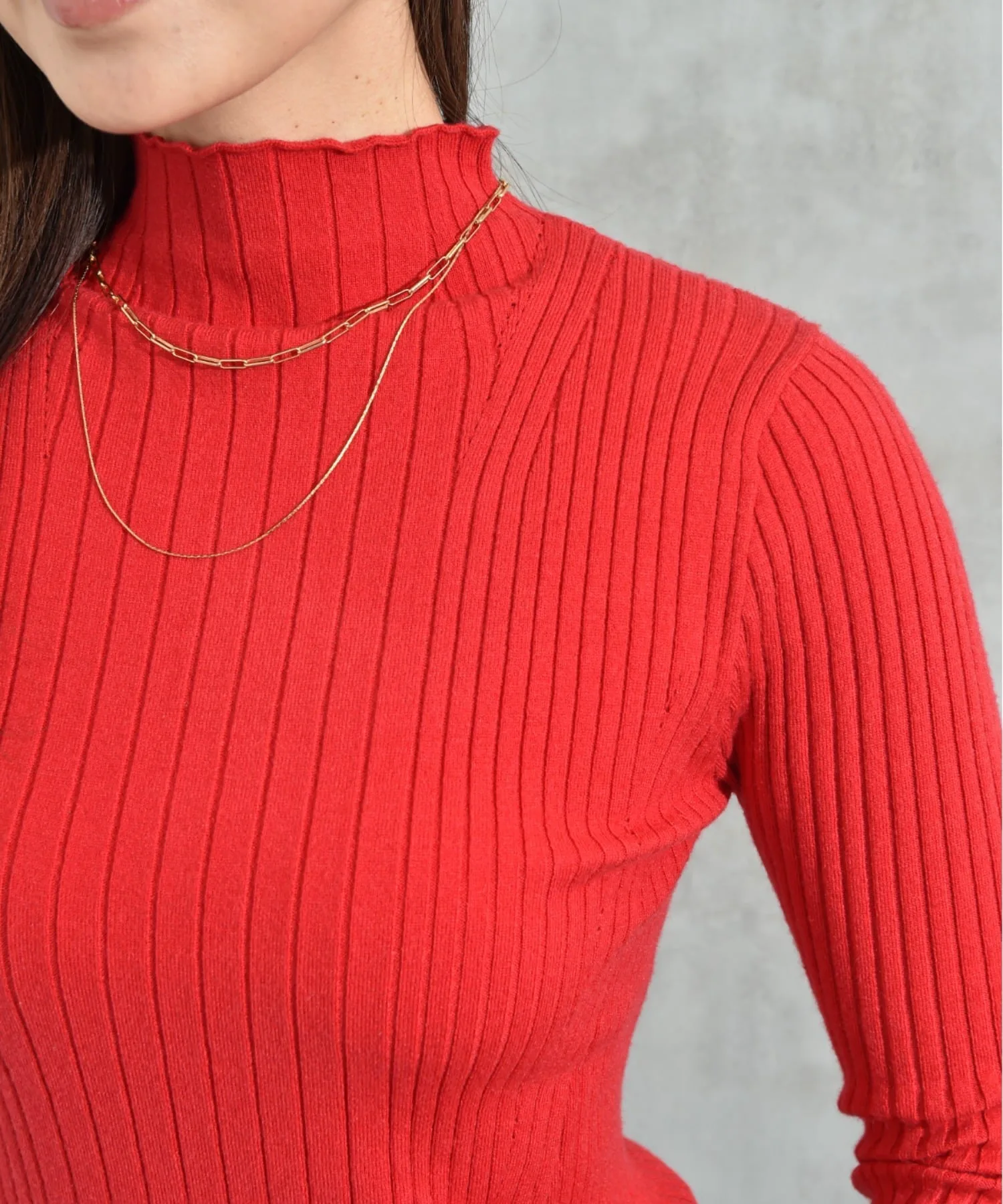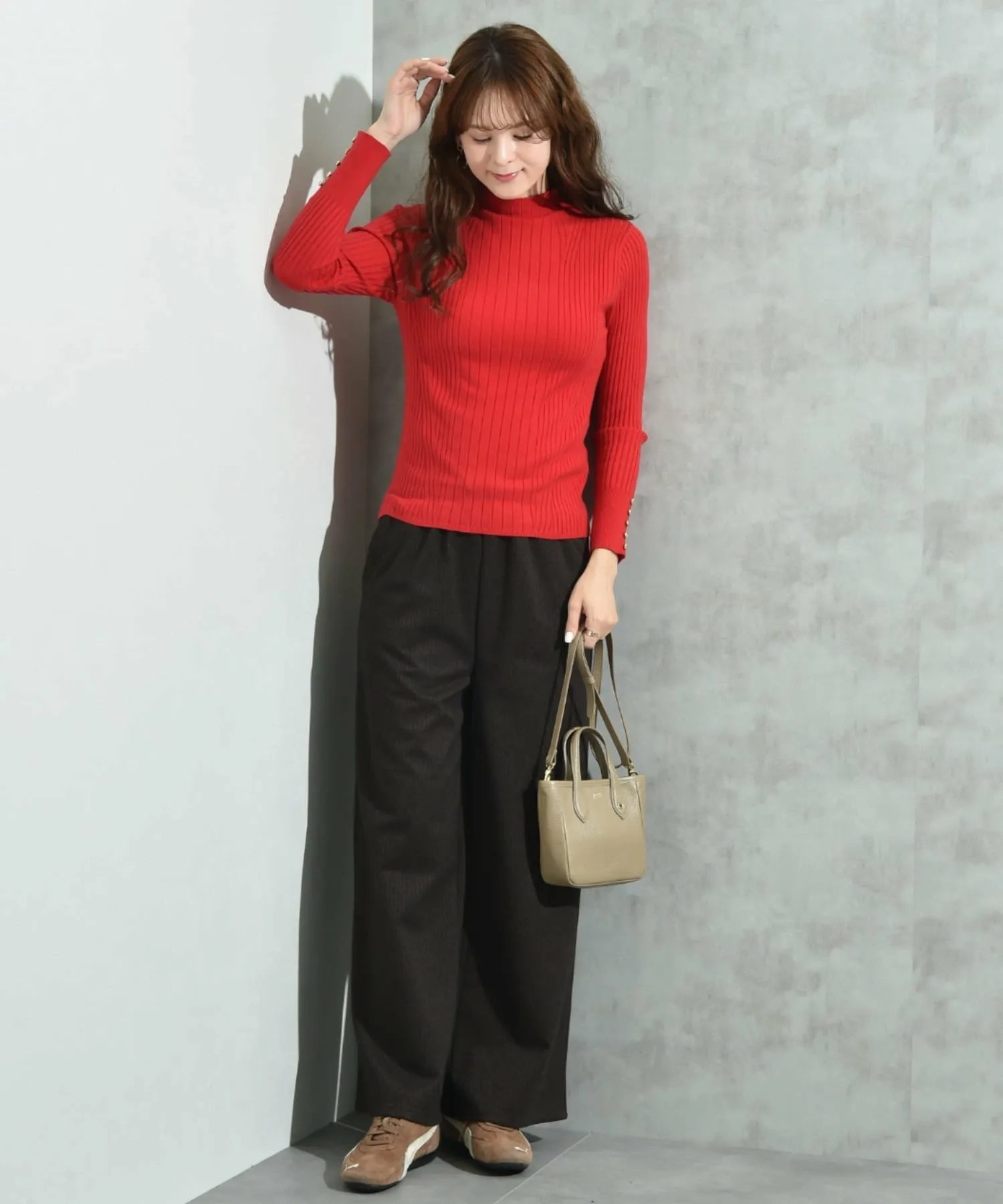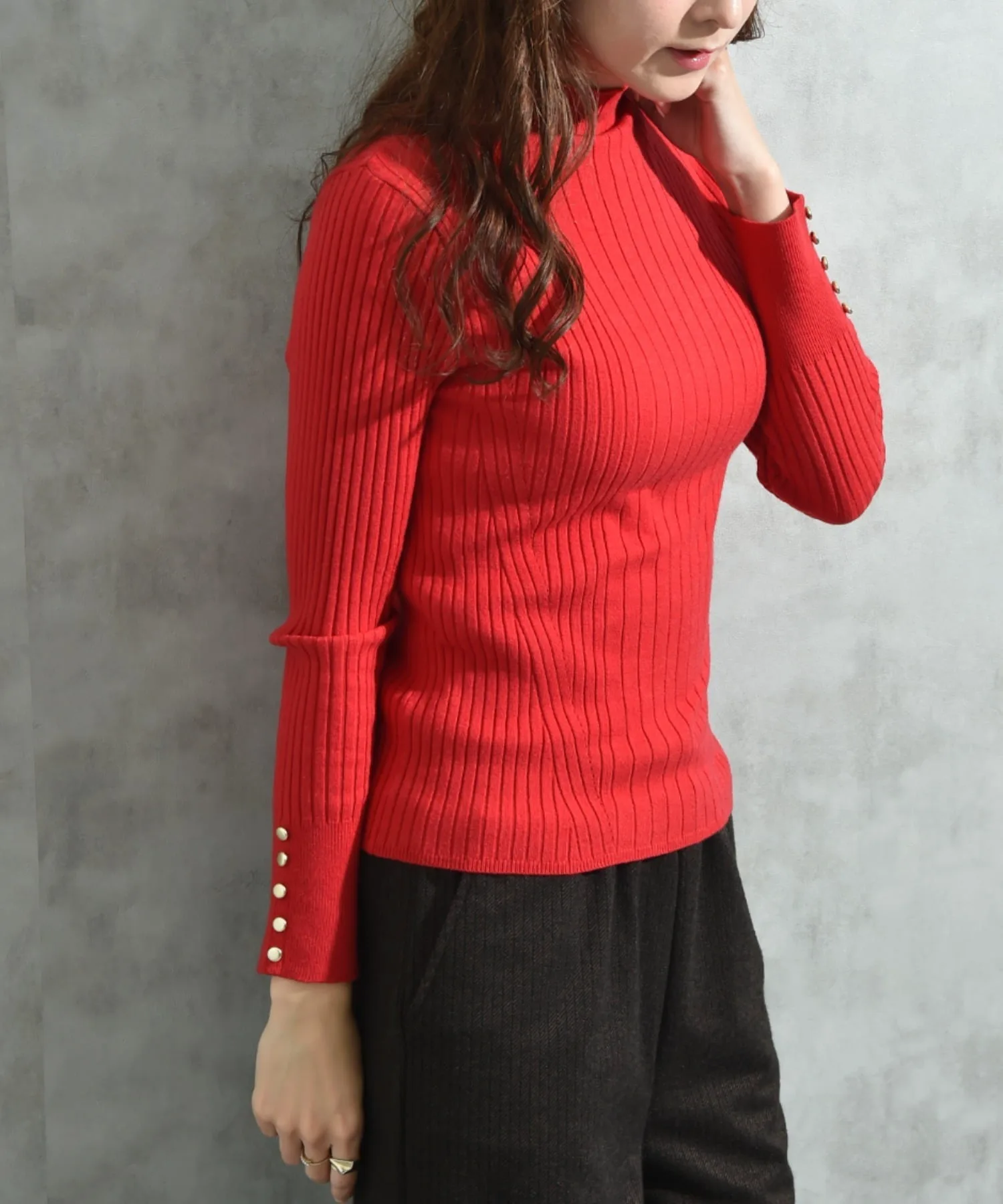 Неровная вязка в области груди и талии создает нежный образ, делая вас более женственной и утонченной. Этот фасон с вырезом-лодочкой также рекомендуется тем, кто не любит высокие воротники. Он плотно облегает шею, поэтому вам не нужно беспокоиться о вырезе. Маленькие золотые пуговицы на манжетах добавляют элегантности вашим рукам.