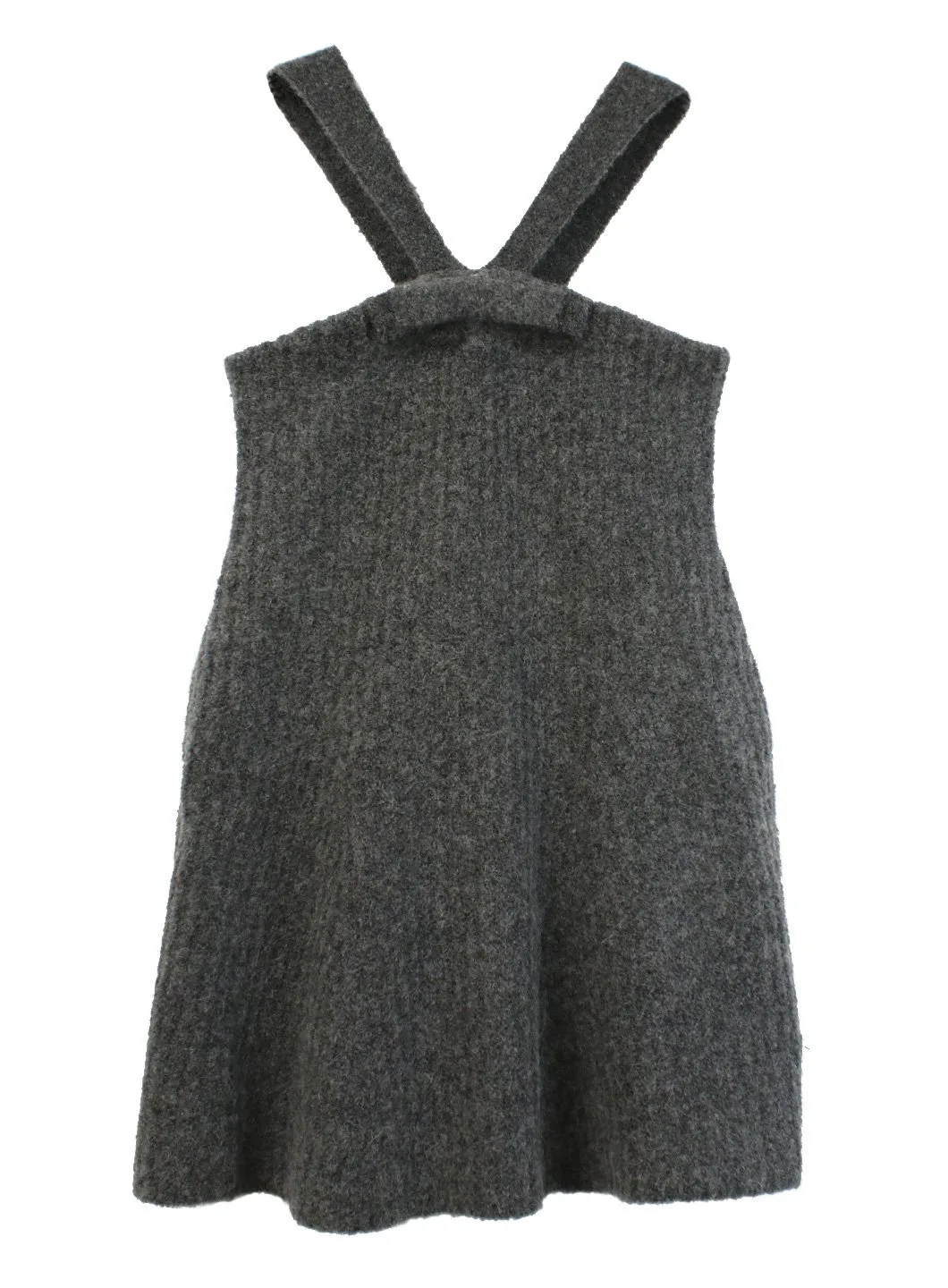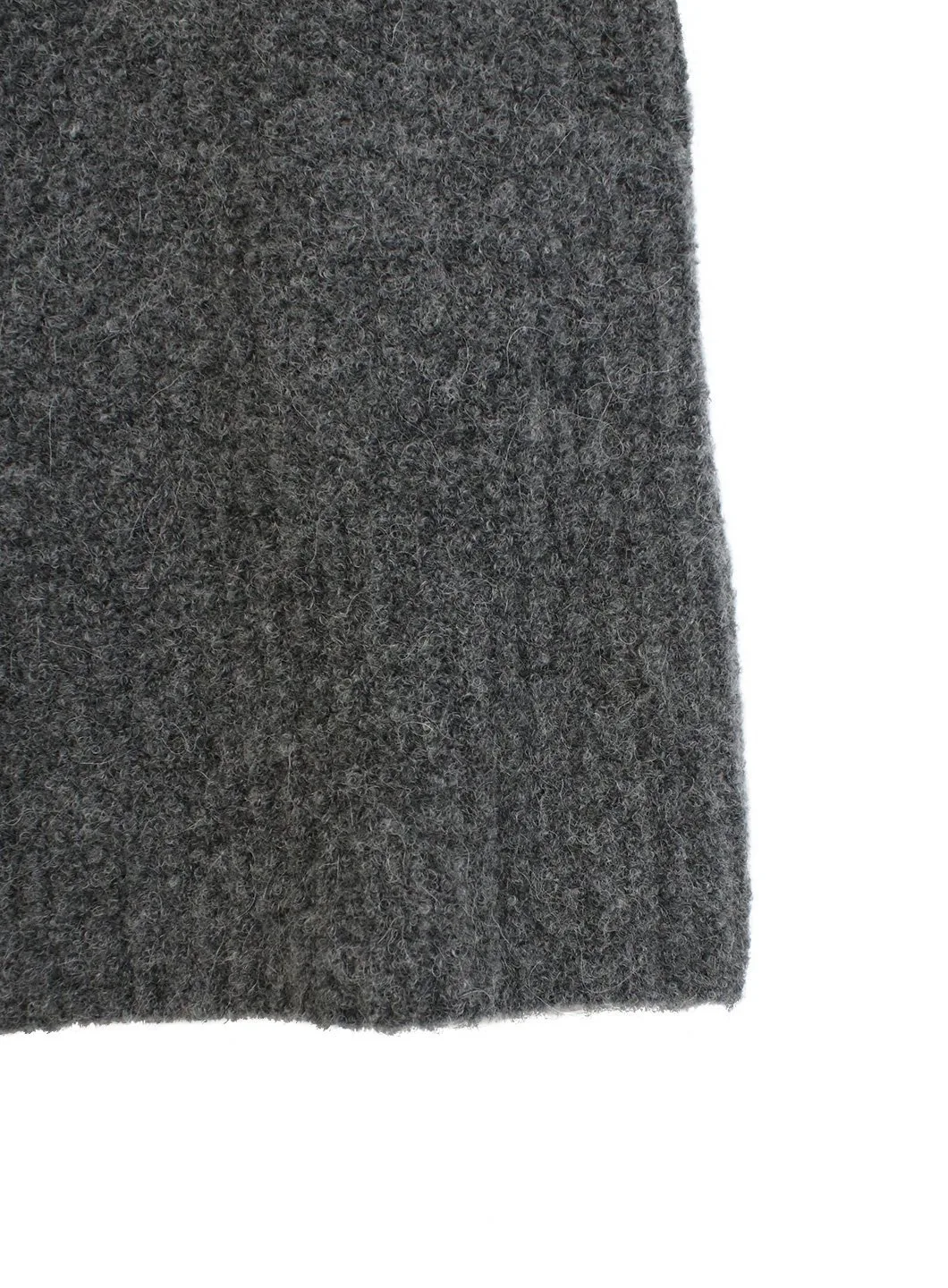 Неравномерная текстура односторонней ребристой вязки визуально удлиняет фигуру, а высокий воротник создает свежий силуэт.