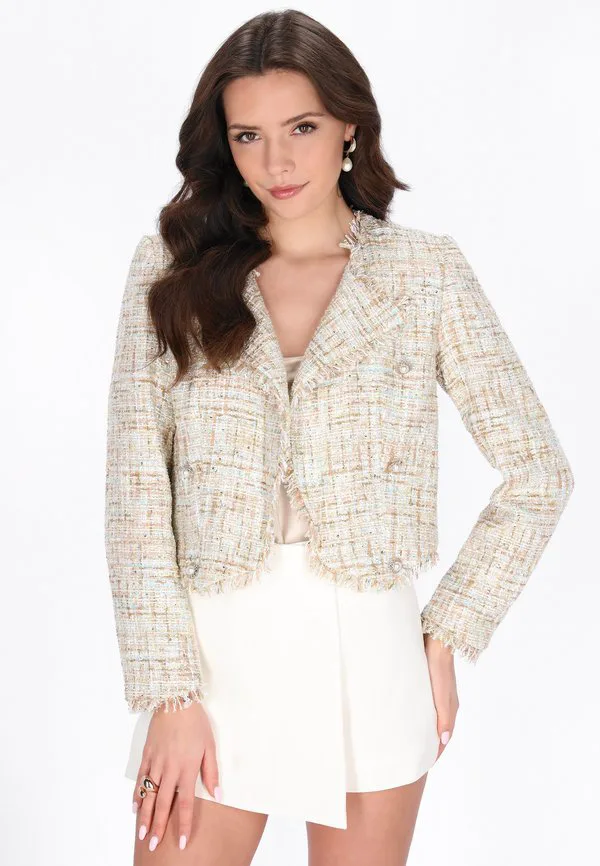 Детали: Декоративные пуговицы, стразы, плечевые подкладки, бахрома