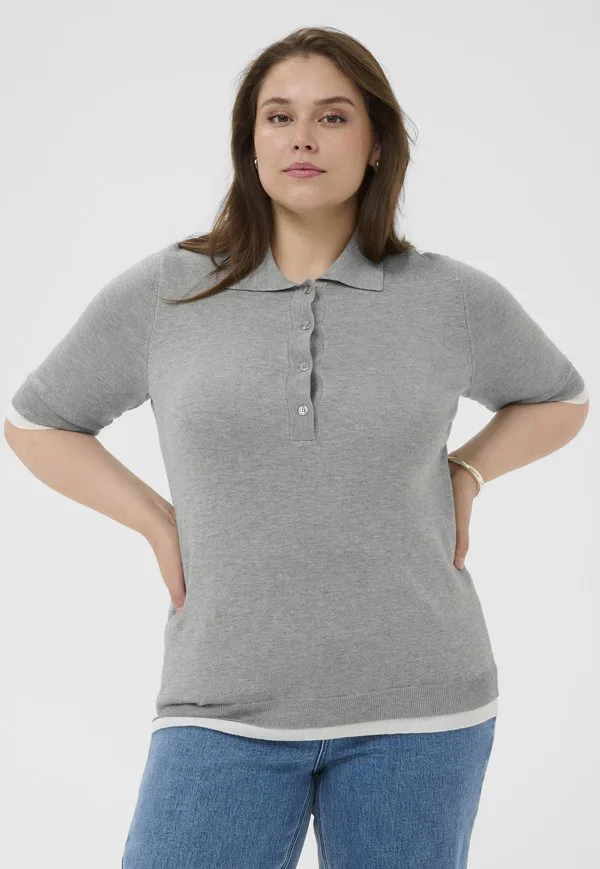 Контрастная рубашка-поло kclizzy Kaffe Curve, Grey Melange