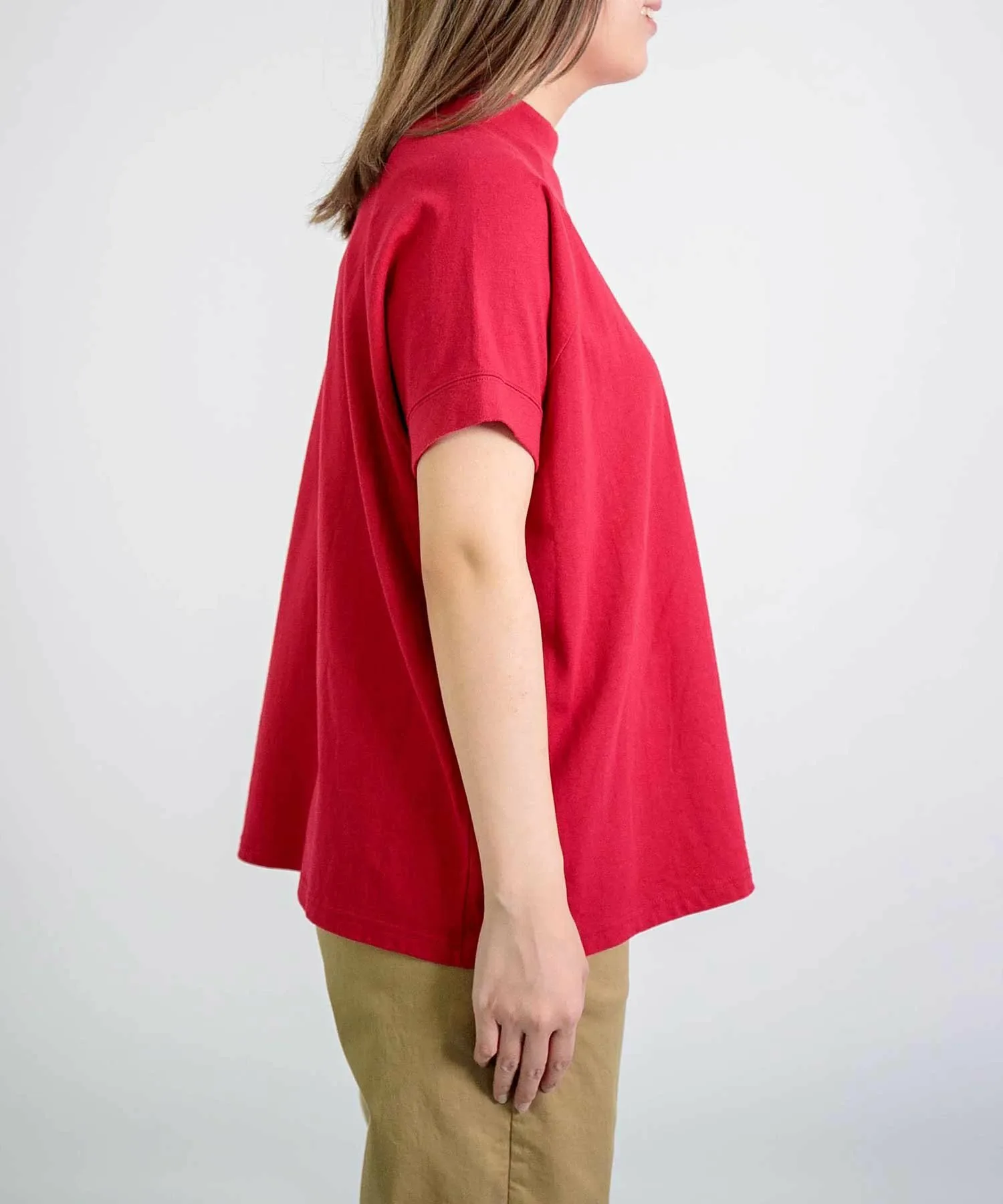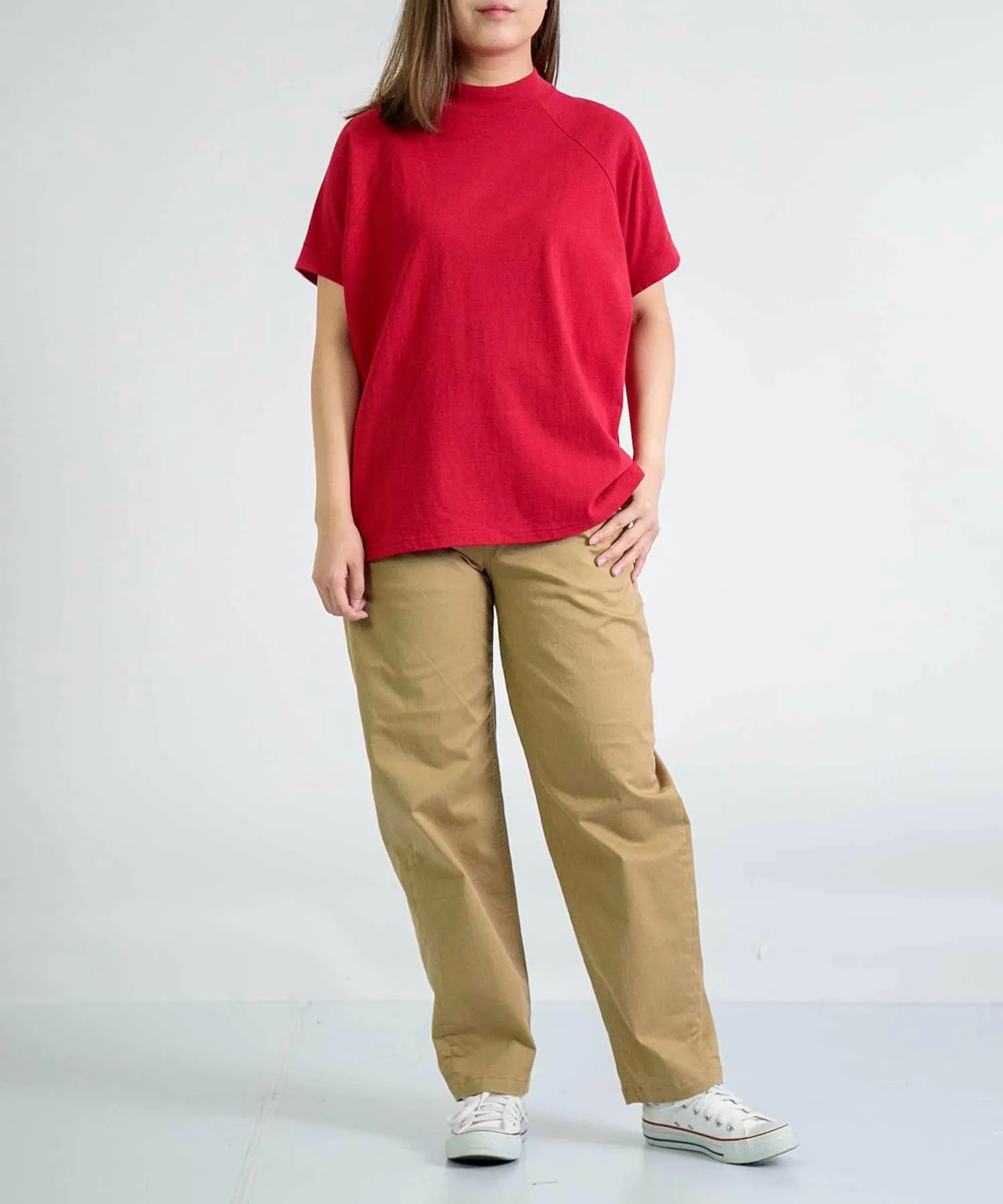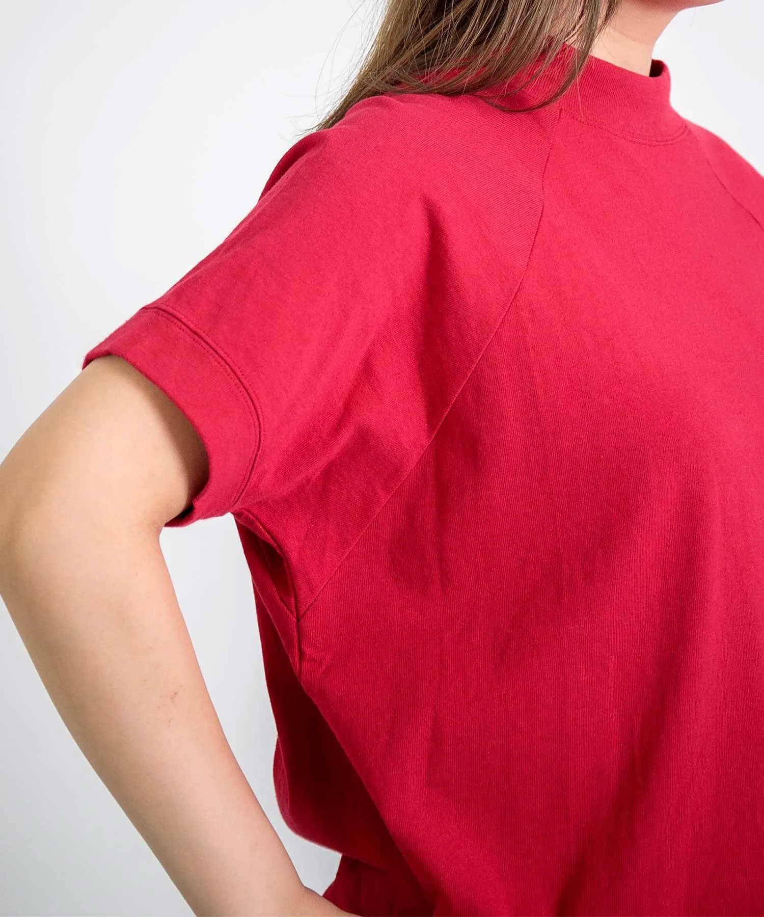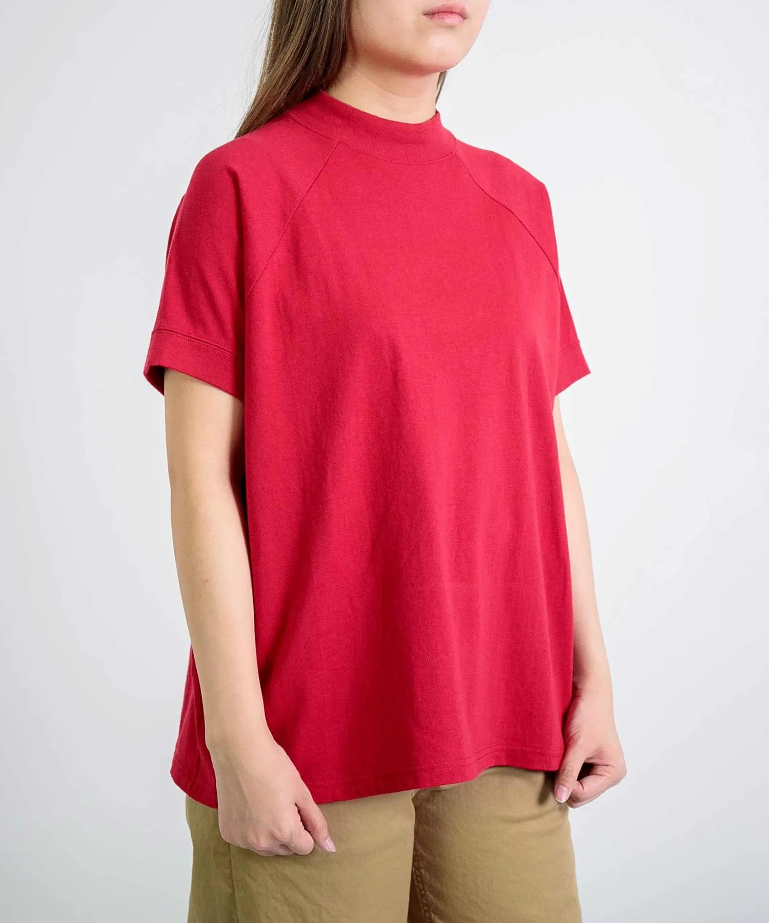 Изготовлена из слегка плотного 100% хлопкового трикотажа.Удобная и хорошо сидящая, эта вещь станет вашей повседневной одеждой.Футболка с рукавами реглан и слегка стоячим вырезом.Спущенные плечи и свободный крой обеспечивают расслабленную посадку. Простой дизайн делает её идеальной для повседневной носки. Длина позволяет легко сочетать её с любыми брюками, от юбок до брюк и комбинезонов, что делает её удобной в носке, и вы захотите приобрести её в разных цветах. …………………… Прозрачность: Нет Толщина: ОбычнаяРастяжимость: НезначительнаяПодкладка: НетМожно стирать: Да…………………… 100% хлопок
