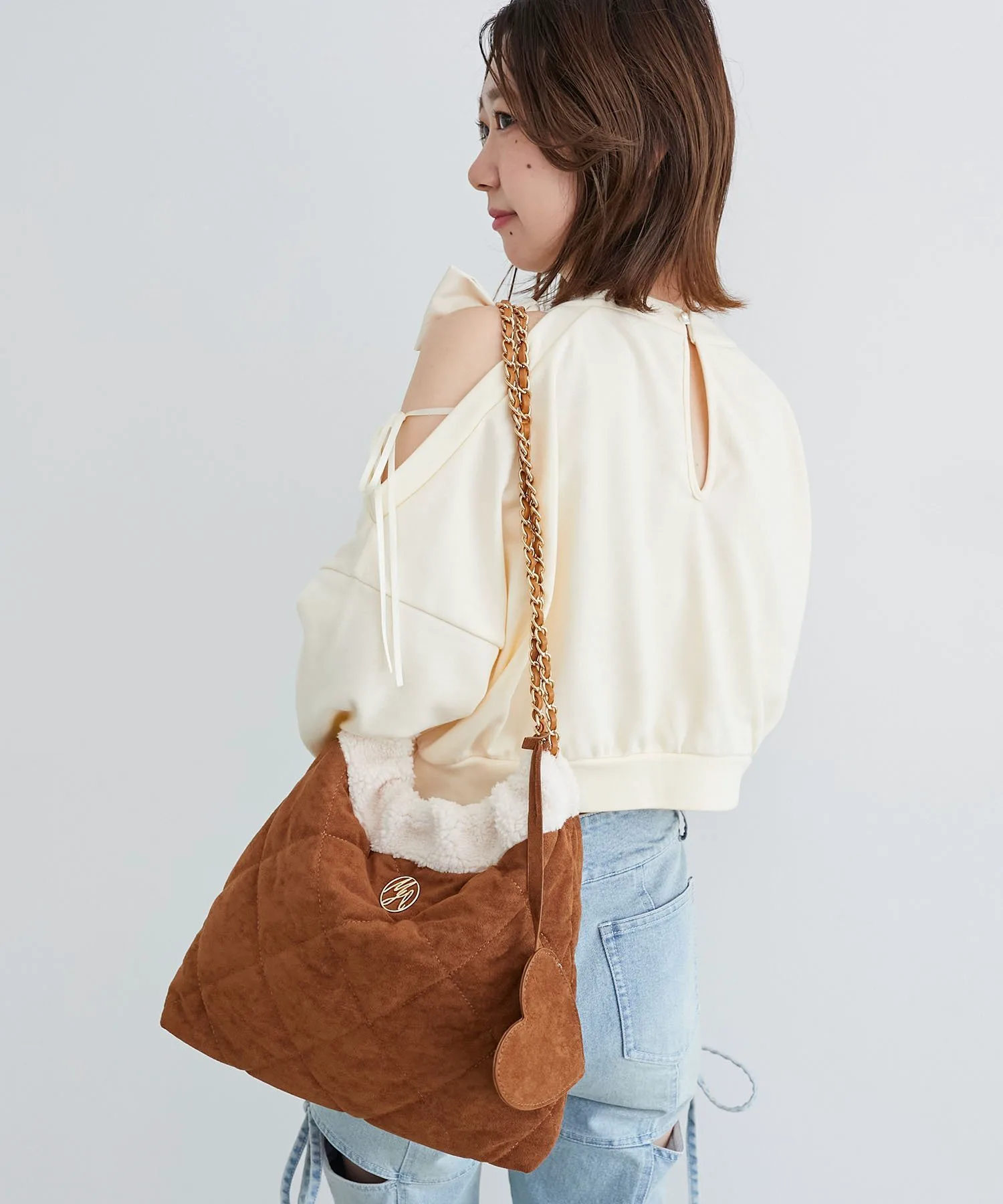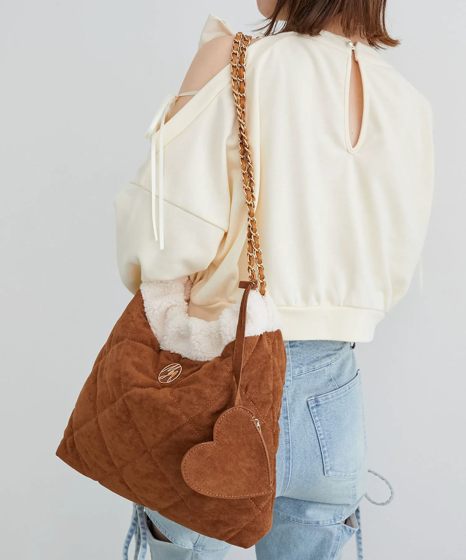 Эта стеганая сумка-хобо имеет цепочку-ручку, которая добавляет ей стиля.