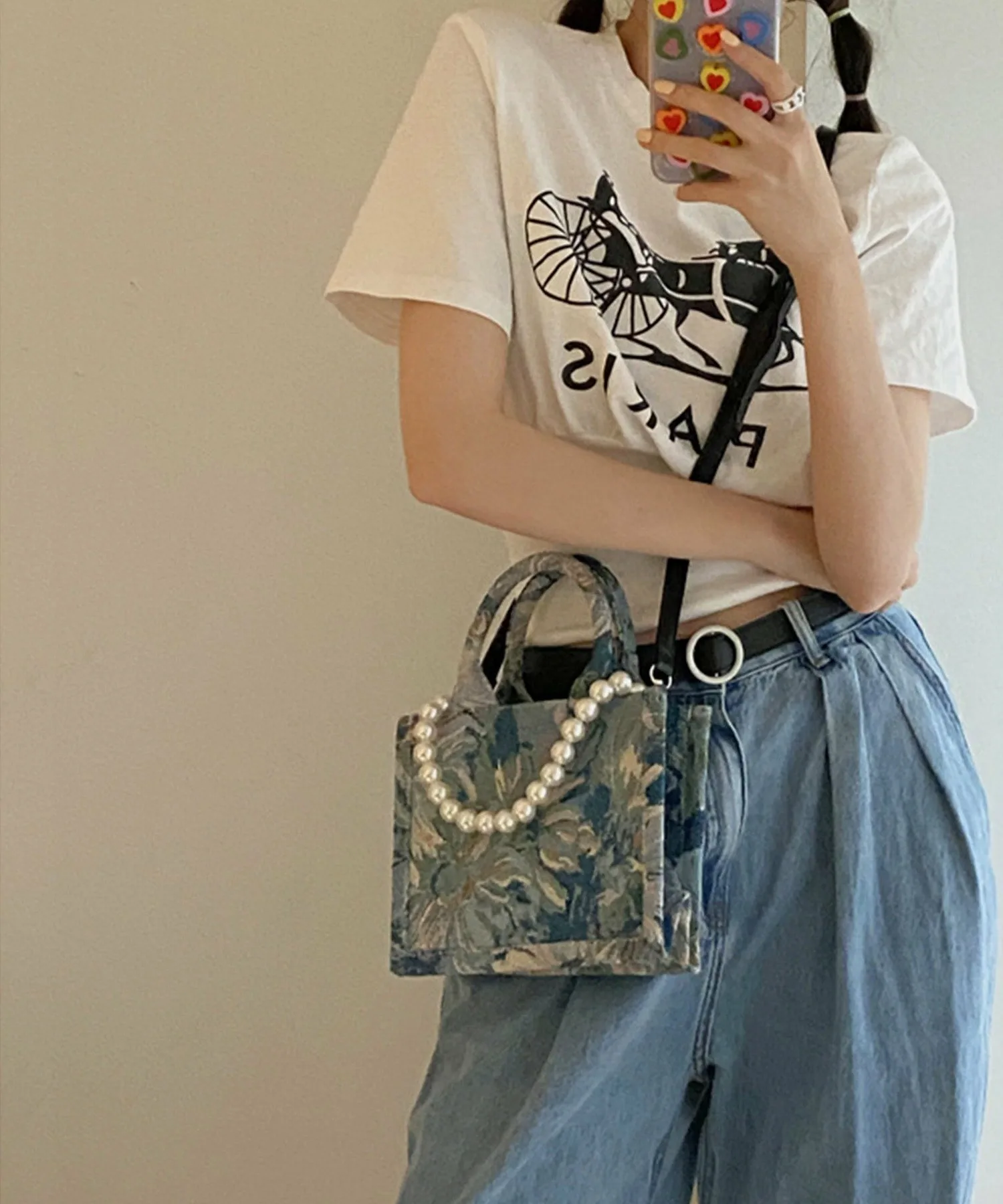 Жемчужная цепочка добавляет сумке нотку роскоши.