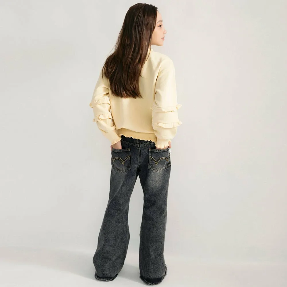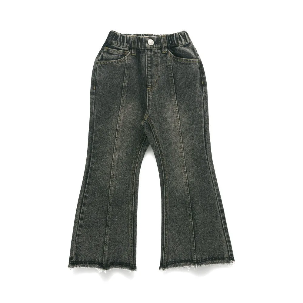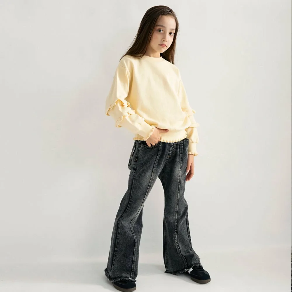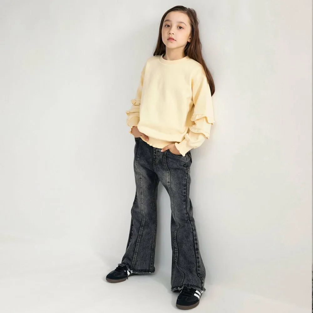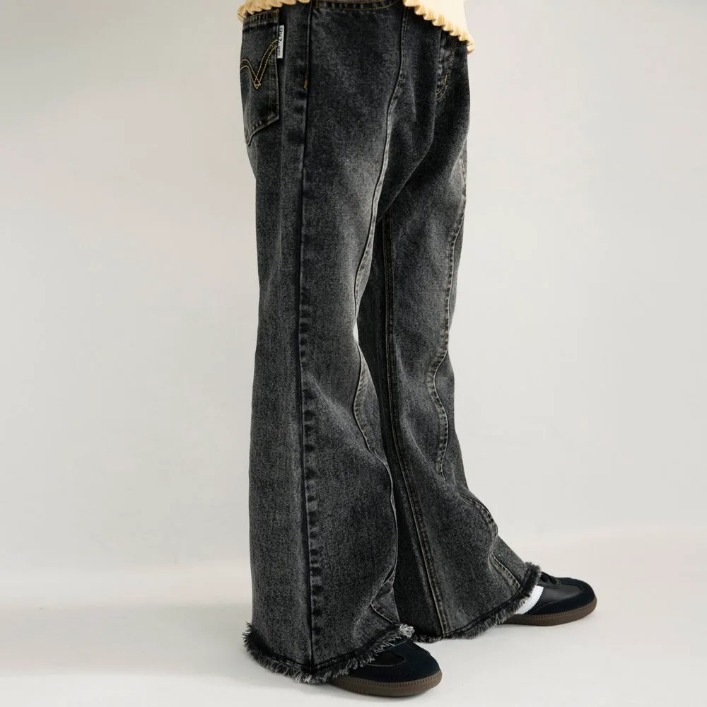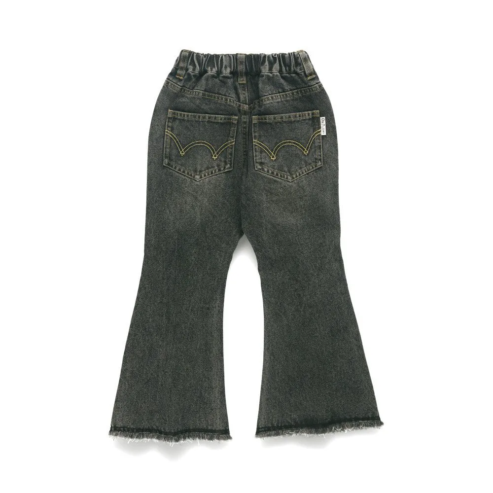 Насладитесь этими джинсовыми расклешенными брюками с силуэтом, который не уступает взрослому!