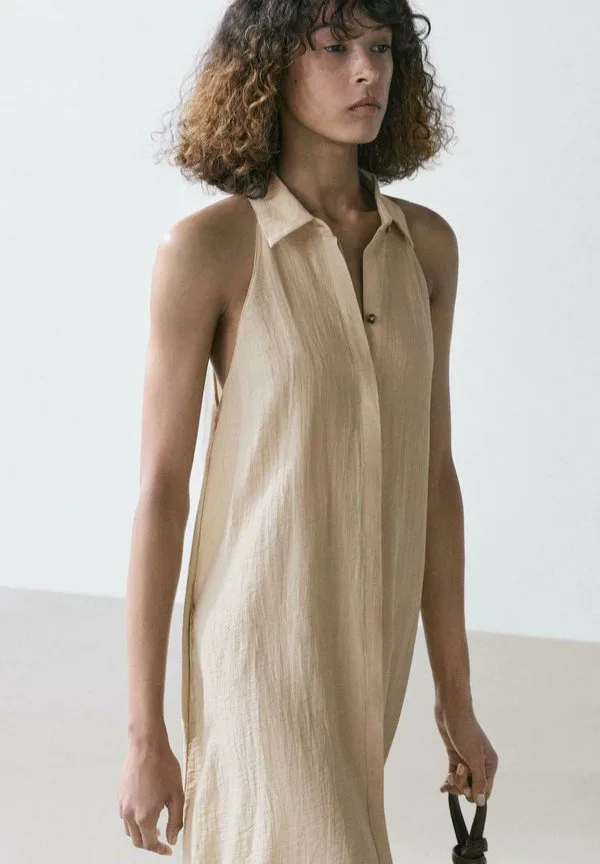 Платье-Рубашка миди Massimo Dutti, Beige