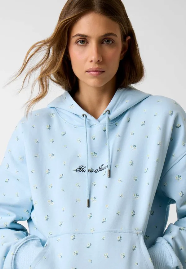 Толстовка с капюшоном bedruckter Guess Jeans, Hellblau