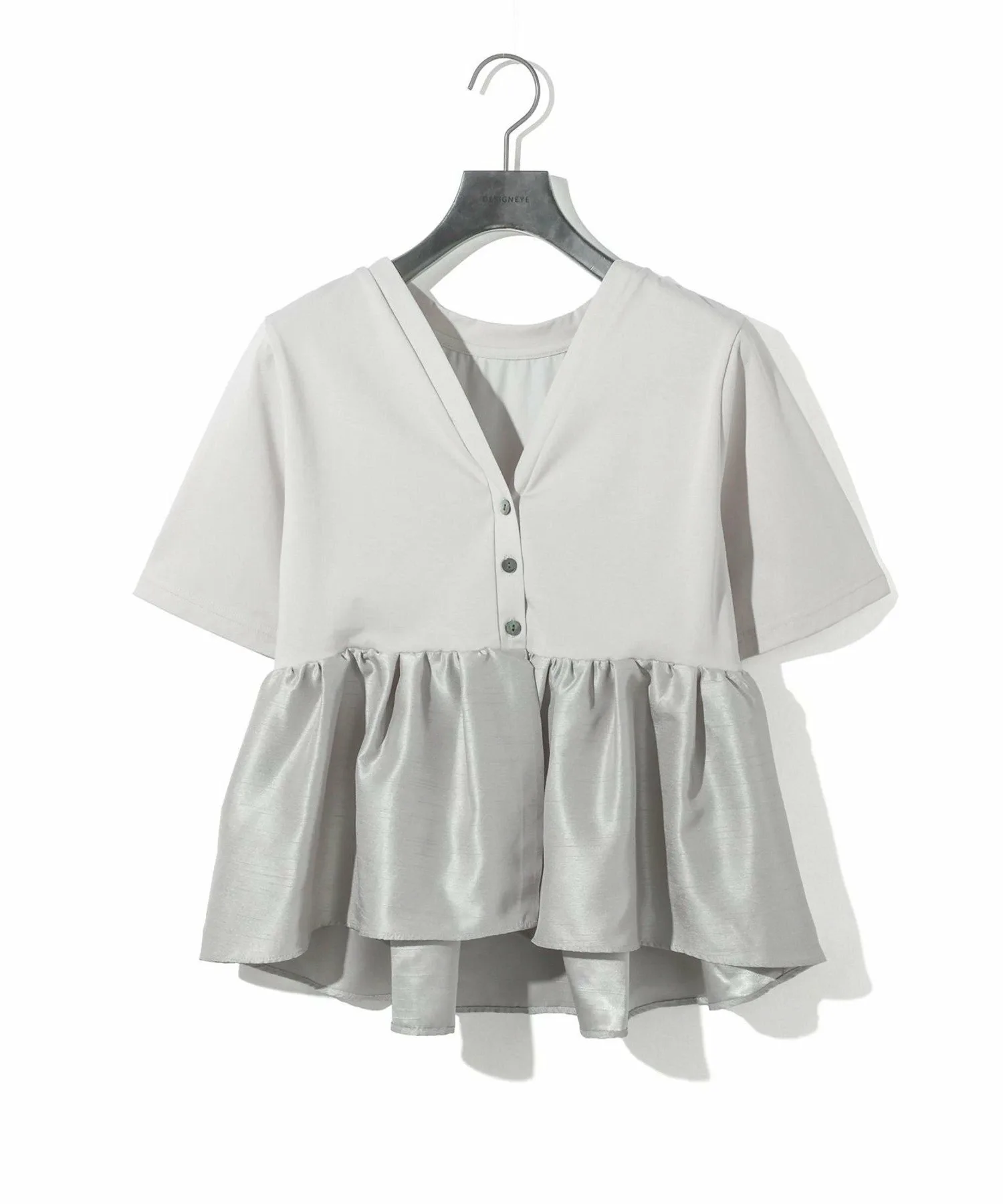 Этот двусторонний топ с баской и переплетенными нитями снова . Он имеет аккуратный крой и сшит с переходом на атласную ткань под грудью, создавая современный, присборенный, расклешенный силуэт, придающий образу женственность. Его можно носить как кардиган, расстегнув спереди, или как пуловер, что делает его универсальным предметом гардероба. Доступен в трех легко сочетающихся цветах.
