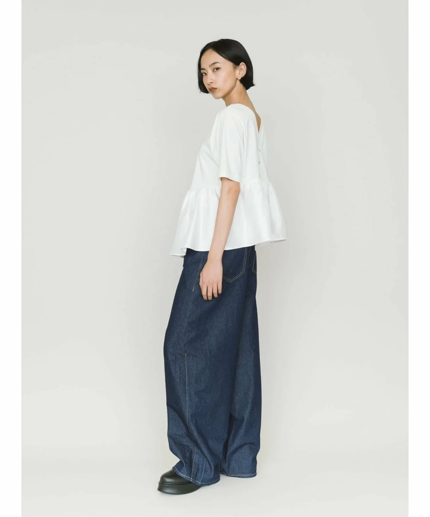 Этот двусторонний топ с баской и переплетенными нитями снова . Он имеет аккуратный крой и сшит с переходом на атласную ткань под грудью, создавая современный, присборенный, расклешенный силуэт, придающий образу женственность. Его можно носить как кардиган, расстегнув спереди, или как пуловер, что делает его универсальным предметом гардероба. Доступен в трех легко сочетающихся цветах.