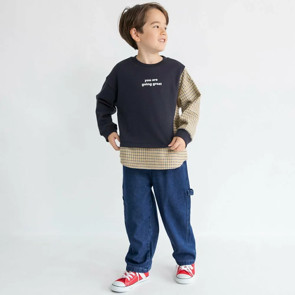 Эта футболка с длинными рукавами сочетает в себе элементы толстовки и различных материалов, идеально подходящих для создания элегантного, солидного образа.