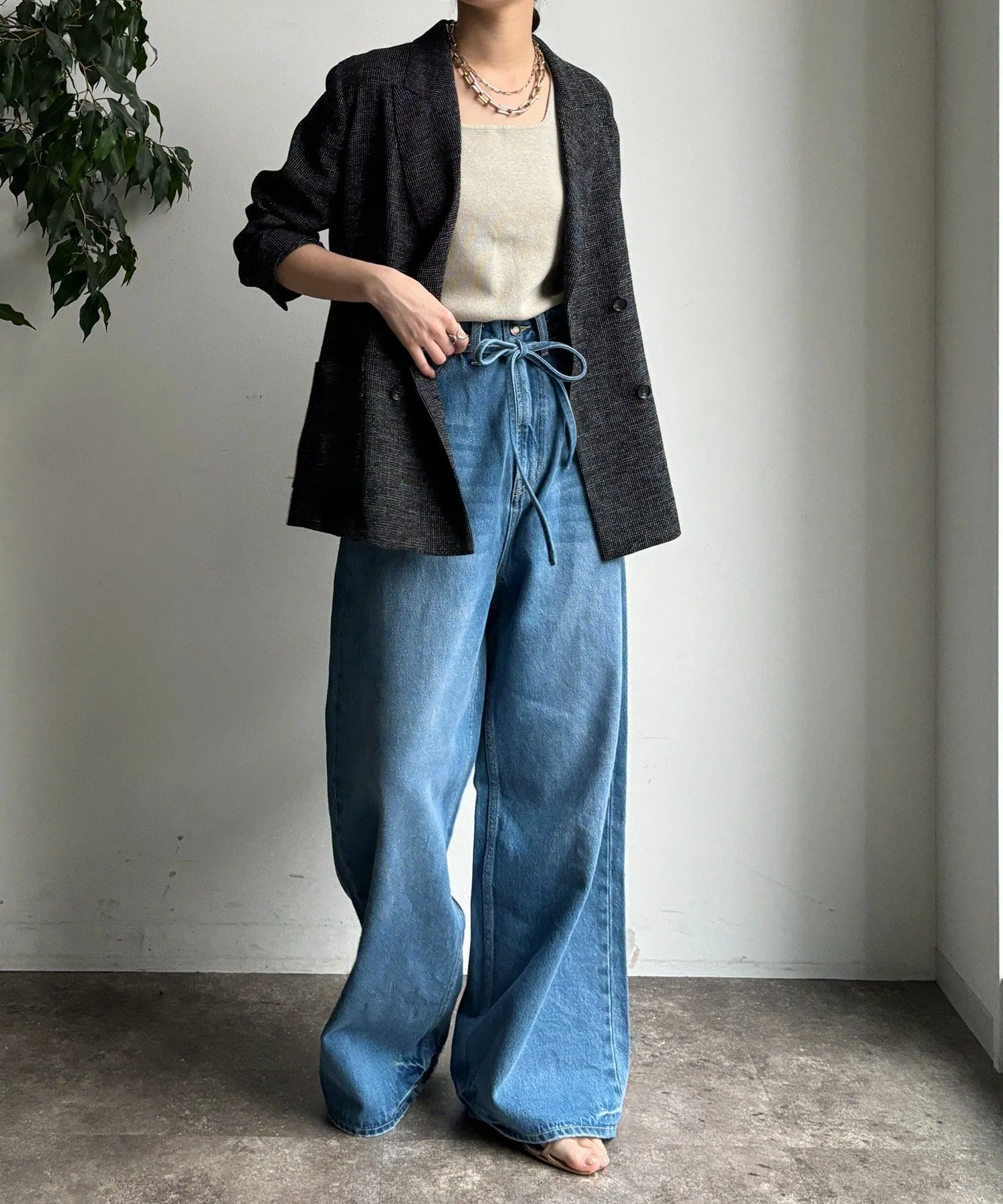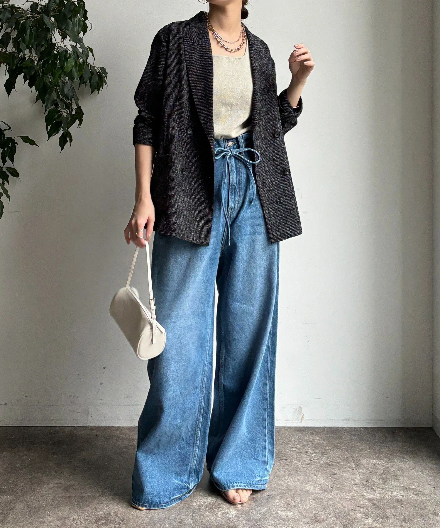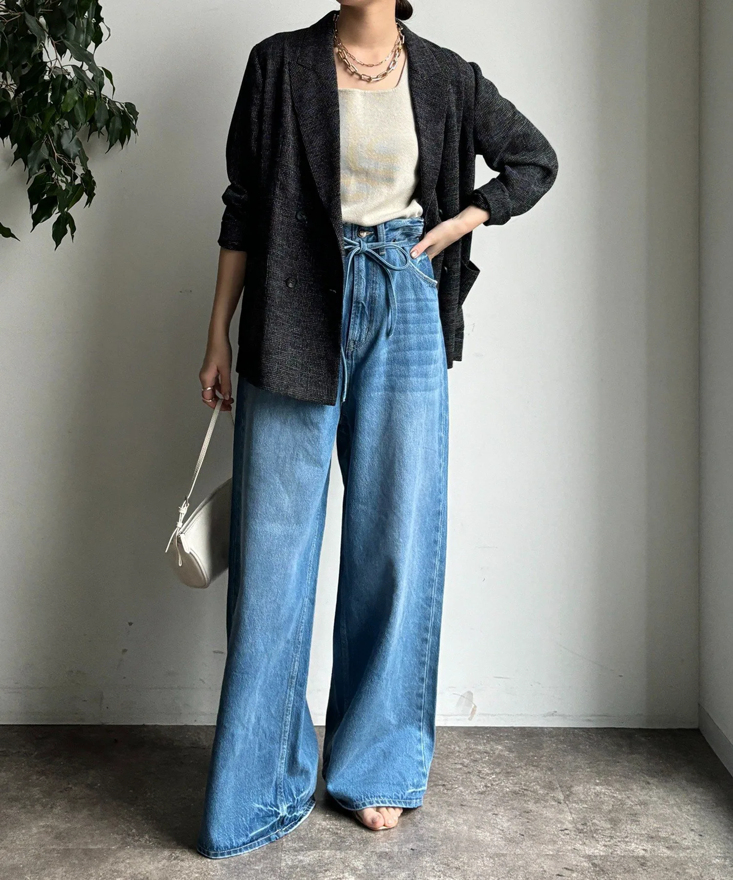 Пояс на талии добавляет тонкий акцент к простым джинсам.