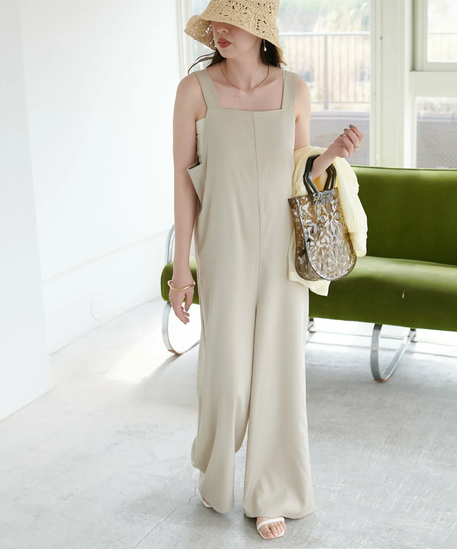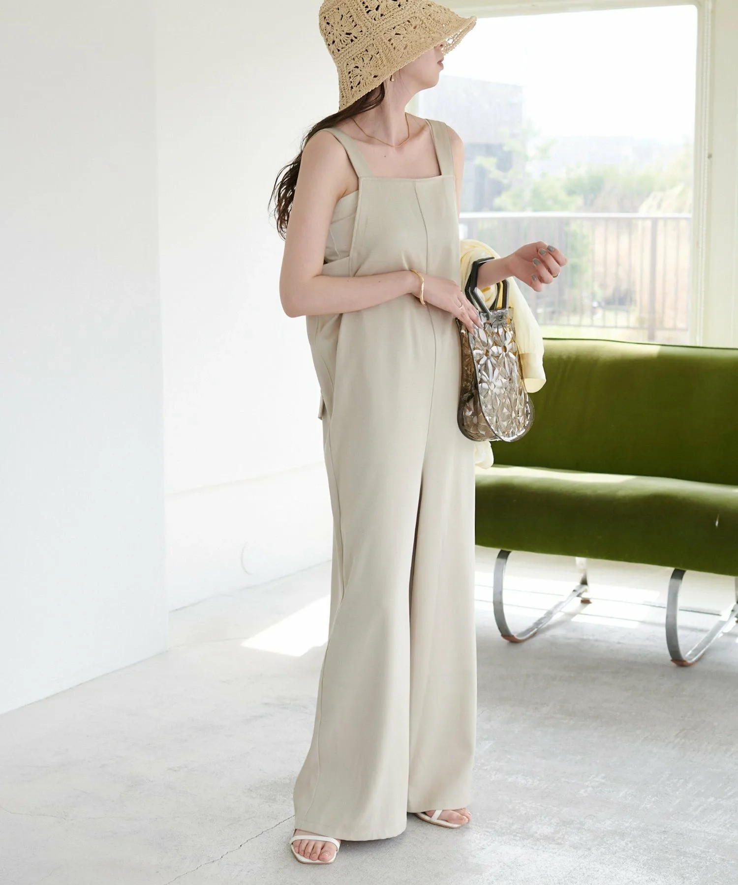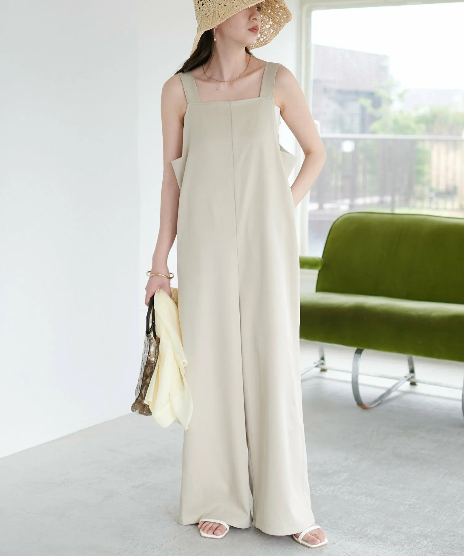 Сотрудники ростом 155 см: Материал гладкий и легкий, поэтому в нем комфортно даже в жаркую погоду! Мне очень нравится, как изящные бретельки придают ему женственный вид◎