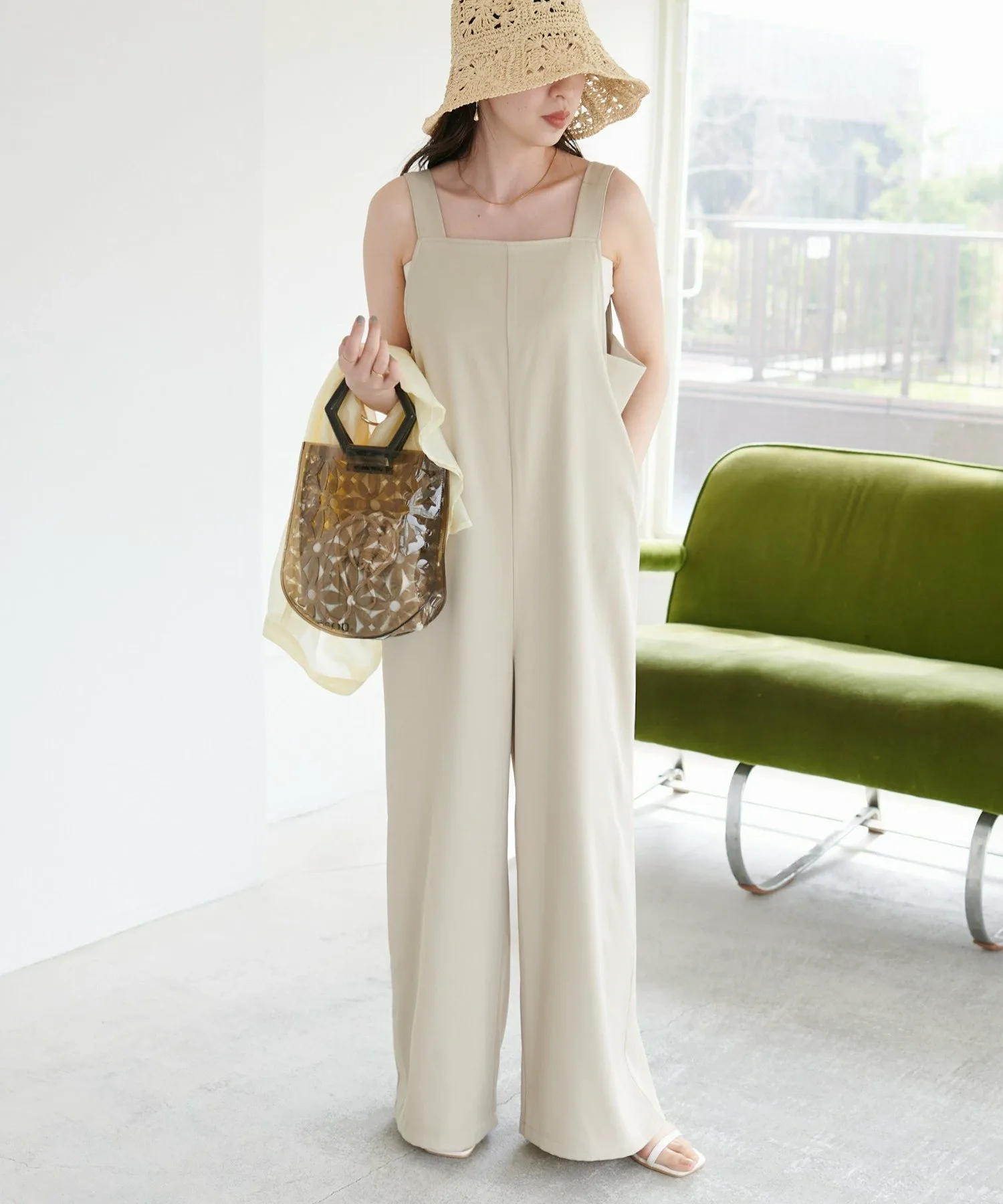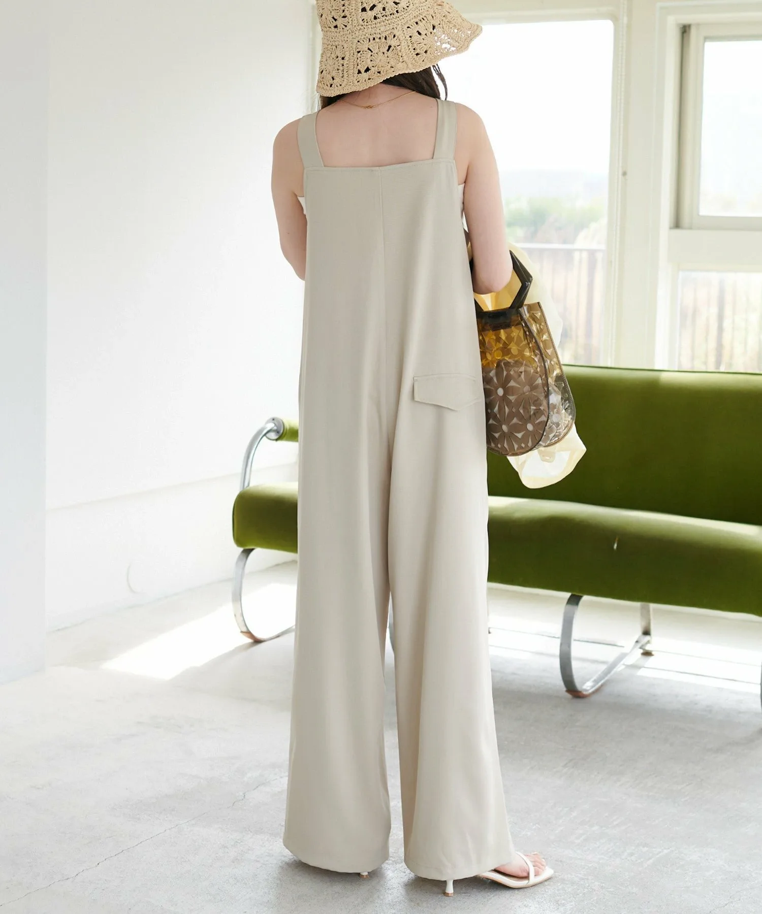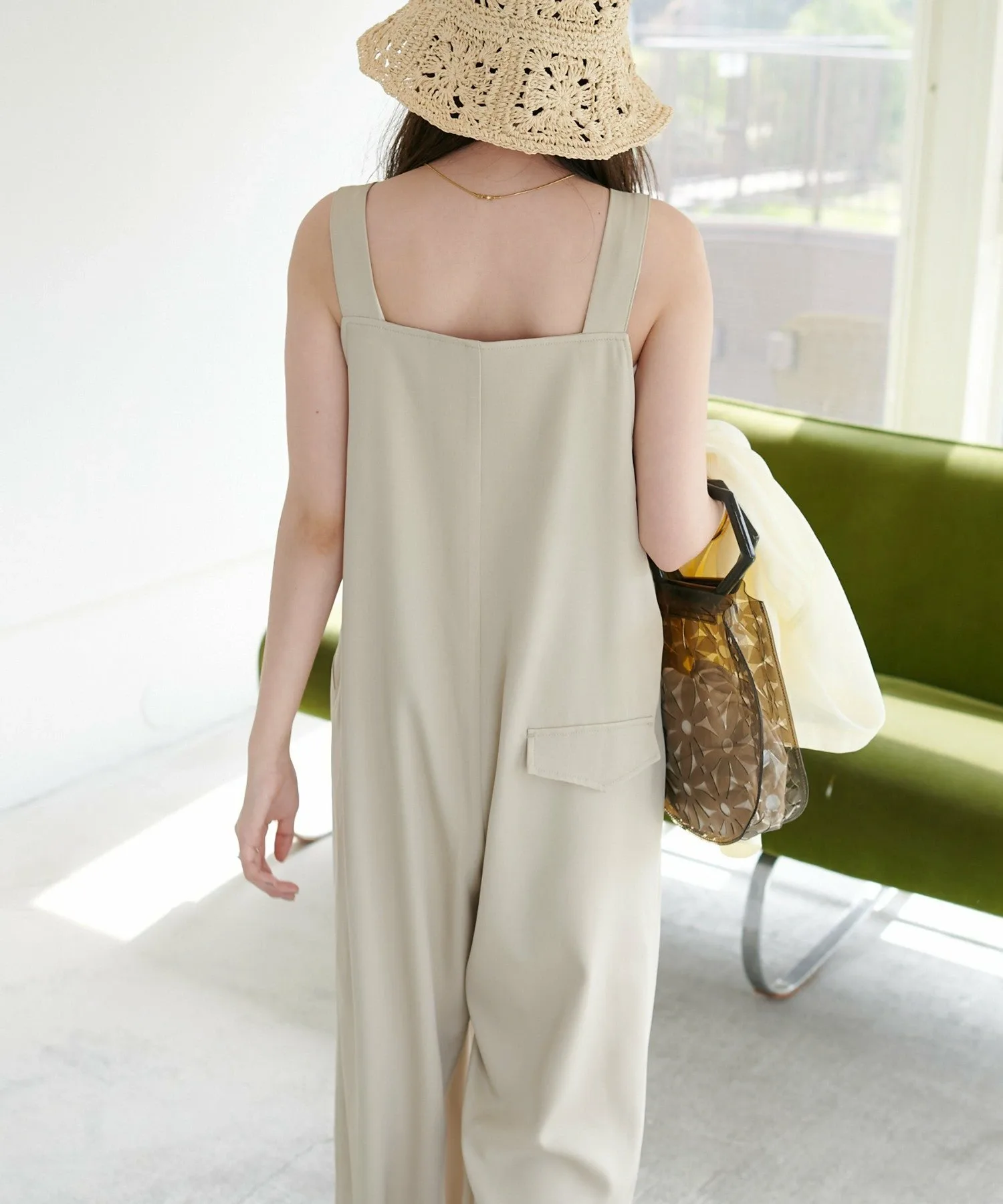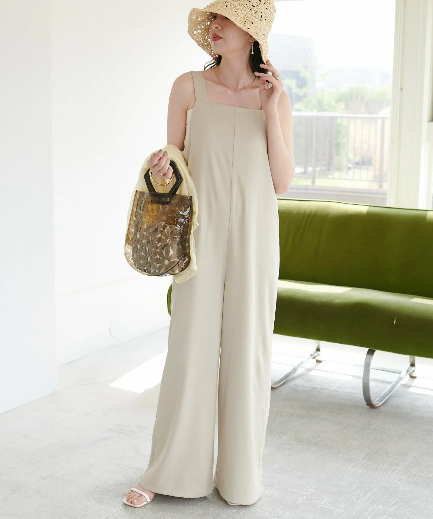 Сотрудники ростом 155 см: Материал гладкий и легкий, поэтому в нем комфортно даже в жаркую погоду! Мне очень нравится, как изящные бретельки придают ему женственный вид◎