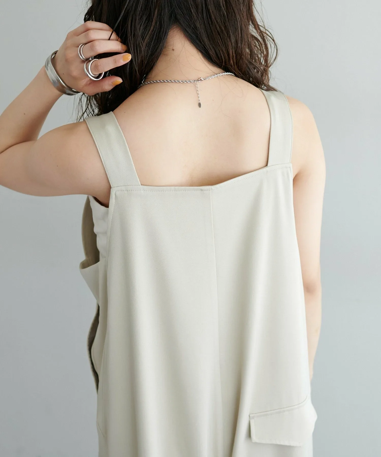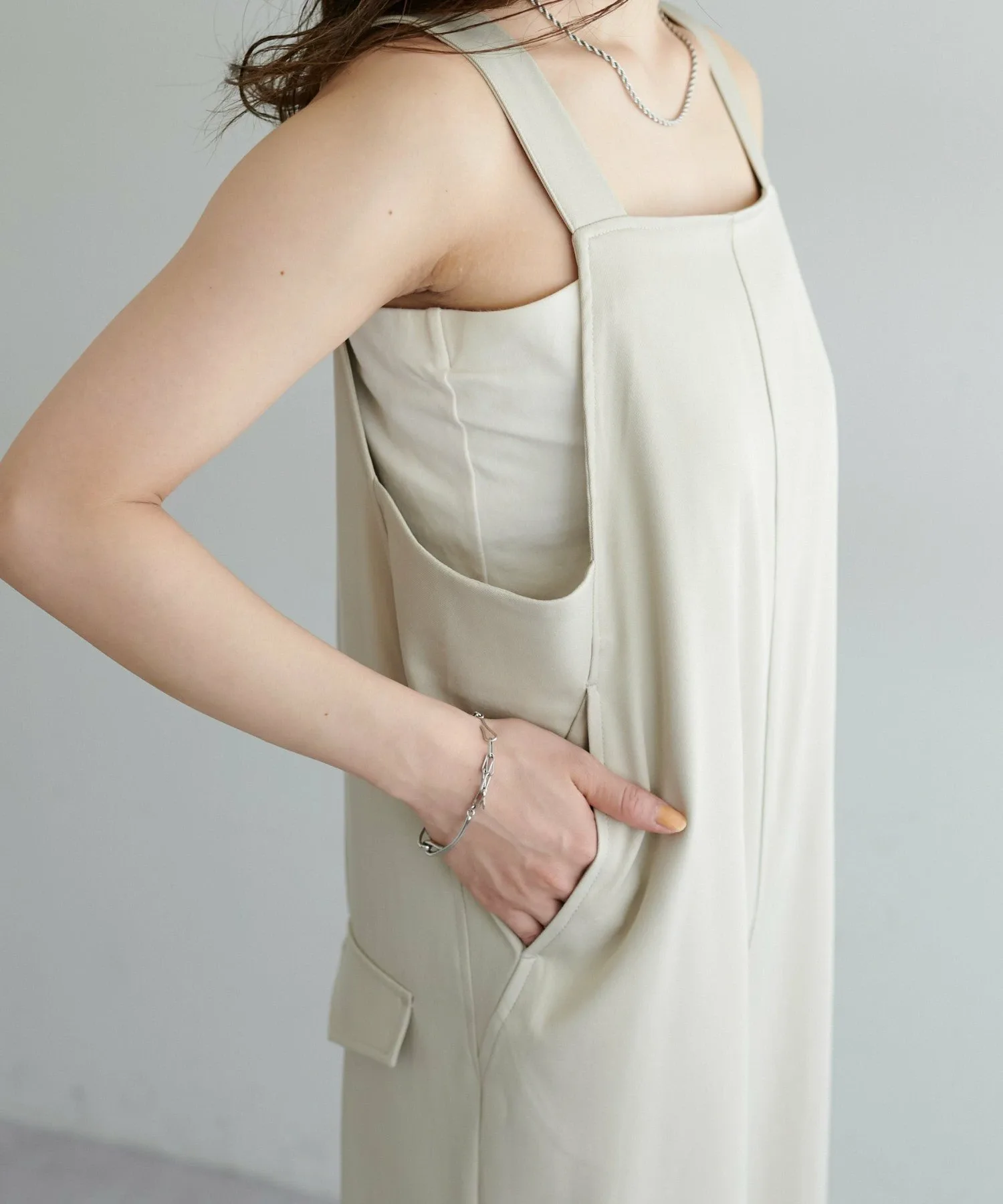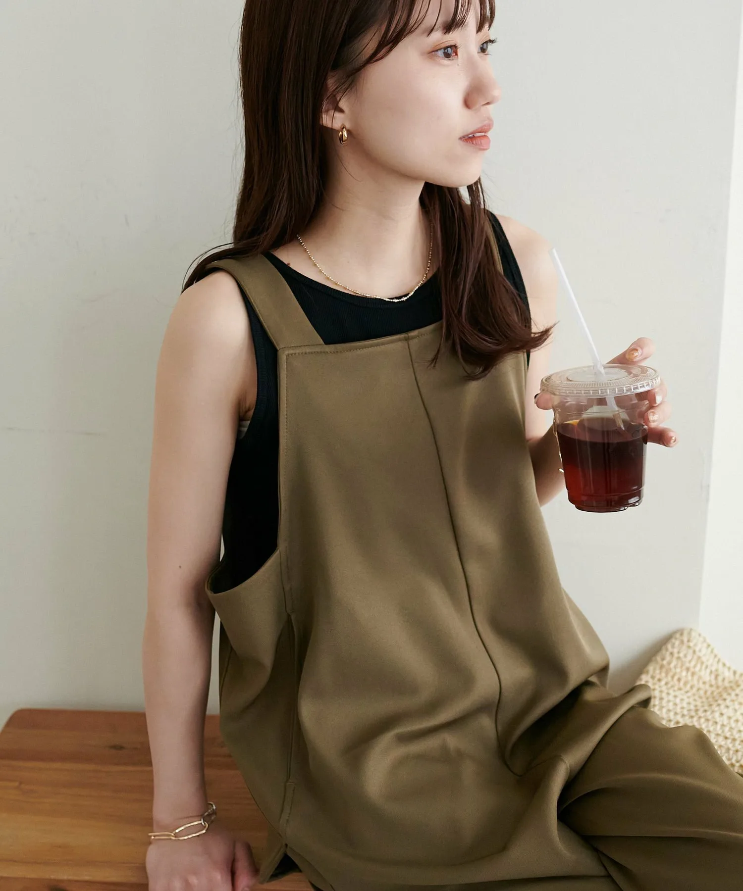 Сотрудники ростом 155 см: Материал гладкий и легкий, поэтому в нем комфортно даже в жаркую погоду! Мне очень нравится, как изящные бретельки придают ему женственный вид◎