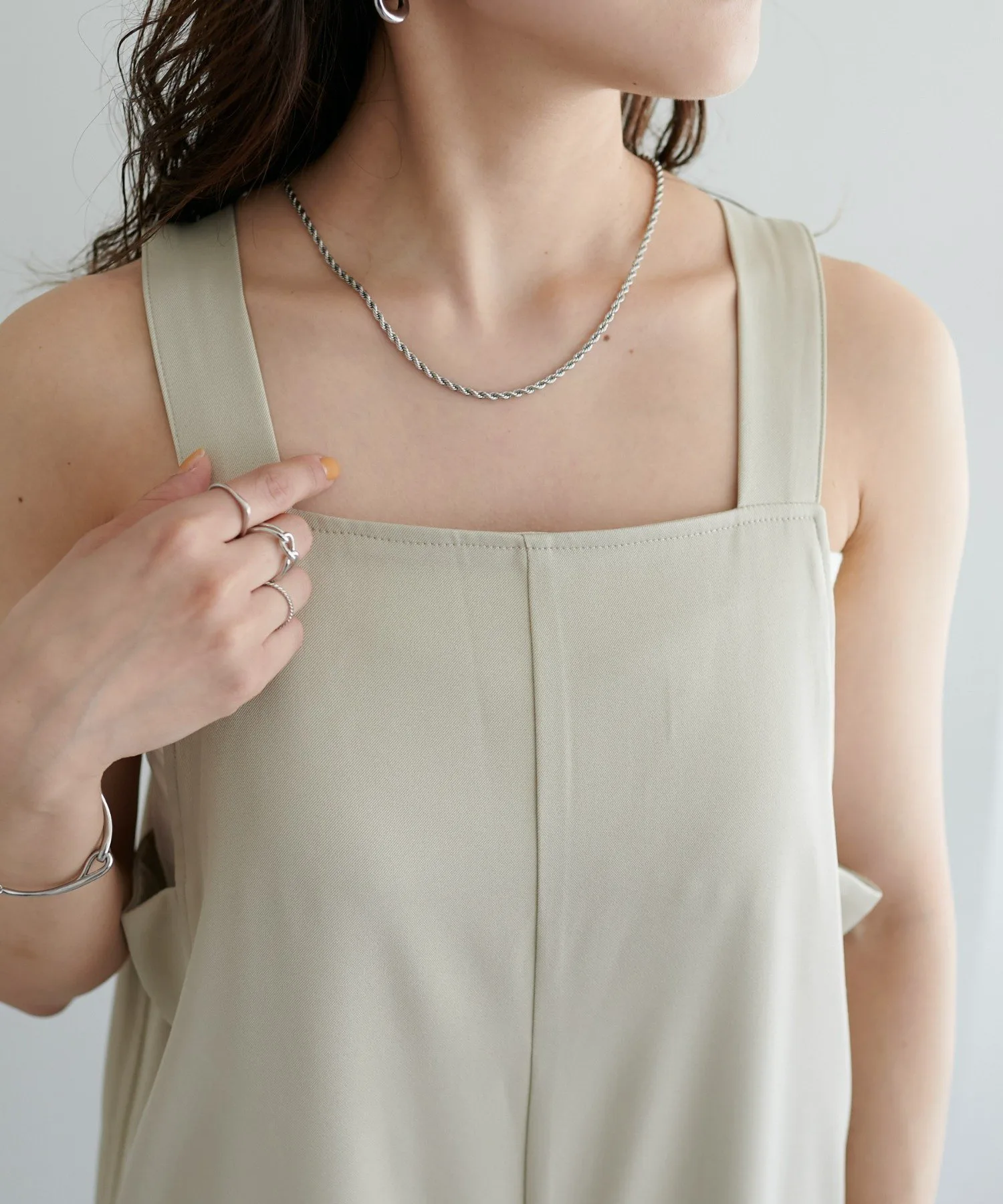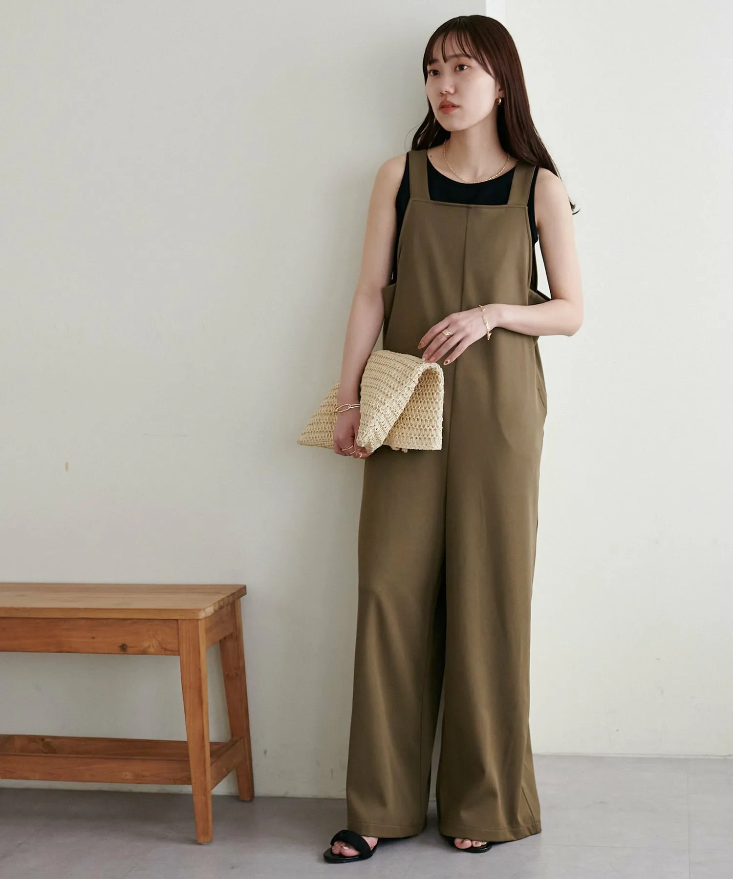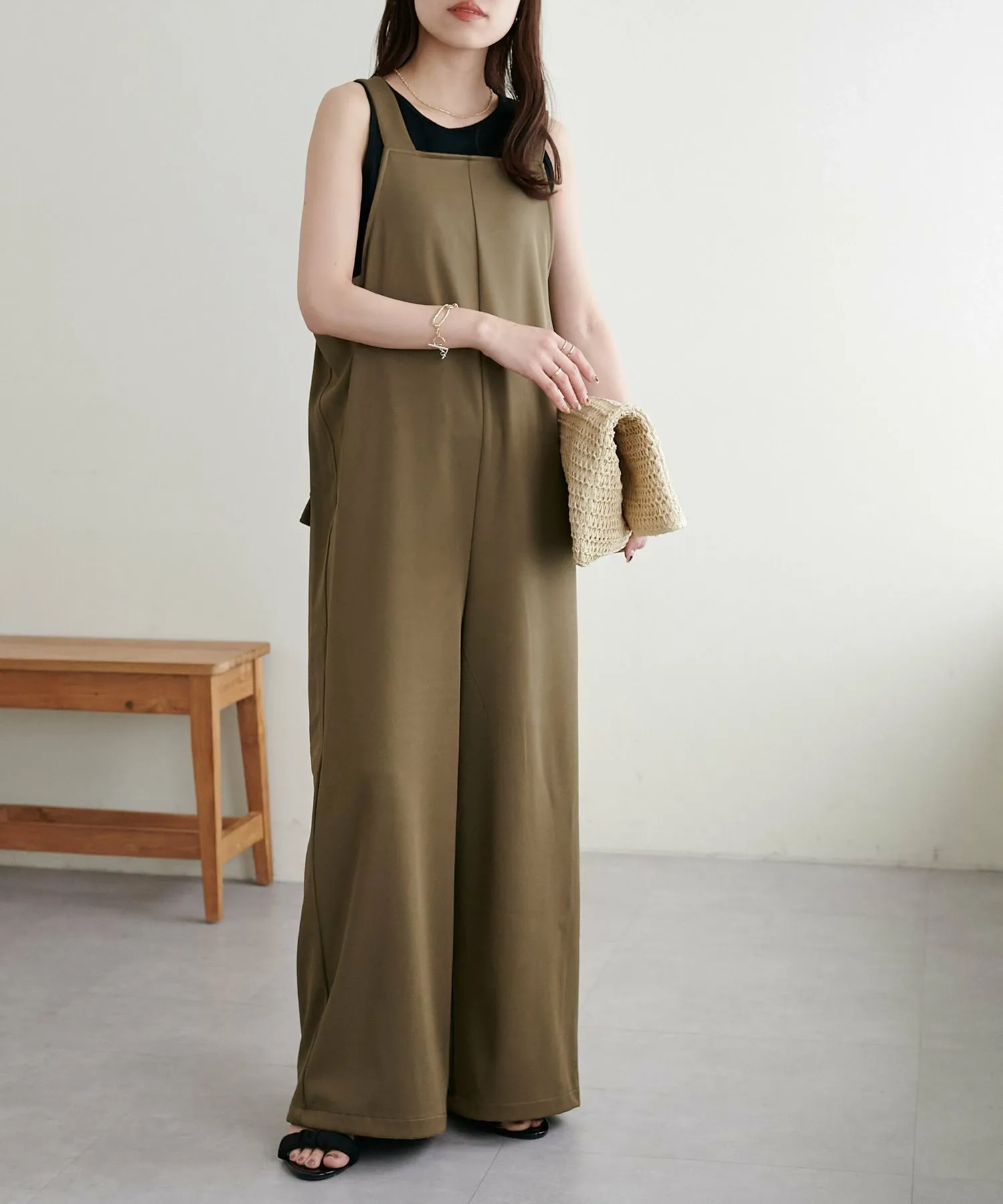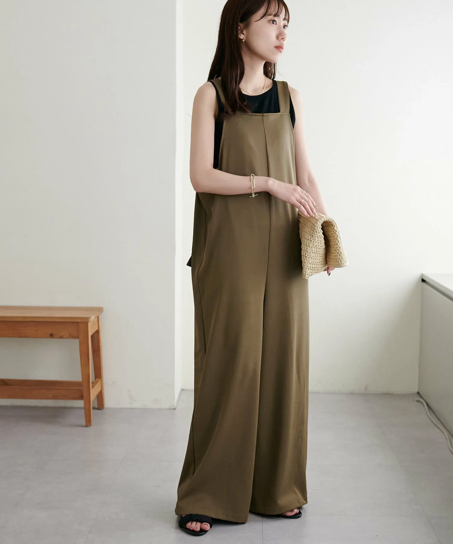 Сотрудники ростом 155 см: Материал гладкий и легкий, поэтому в нем комфортно даже в жаркую погоду! Мне очень нравится, как изящные бретельки придают ему женственный вид◎
