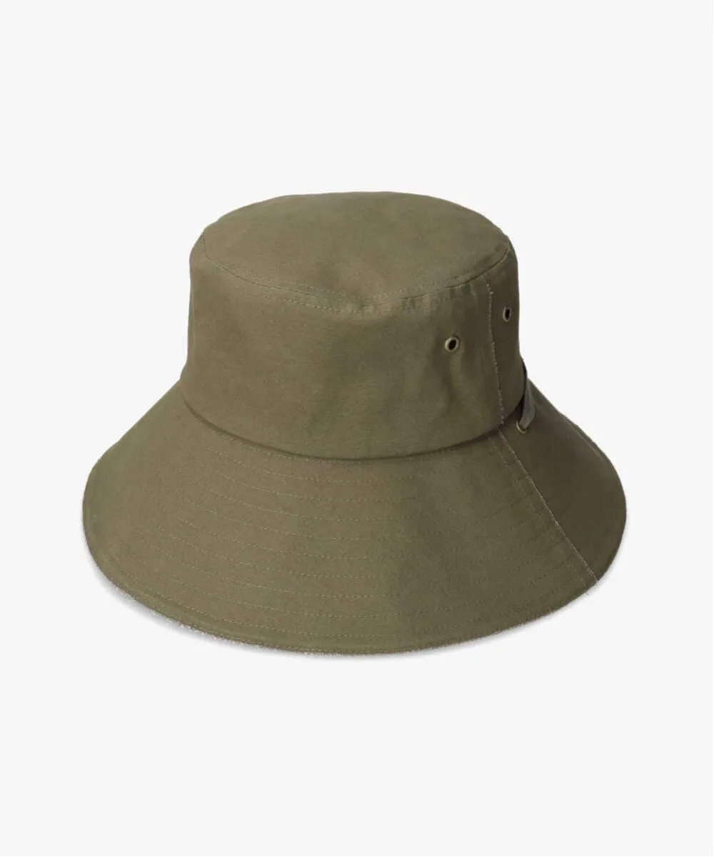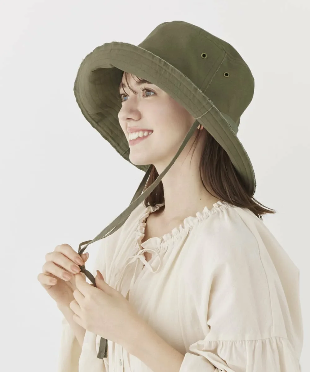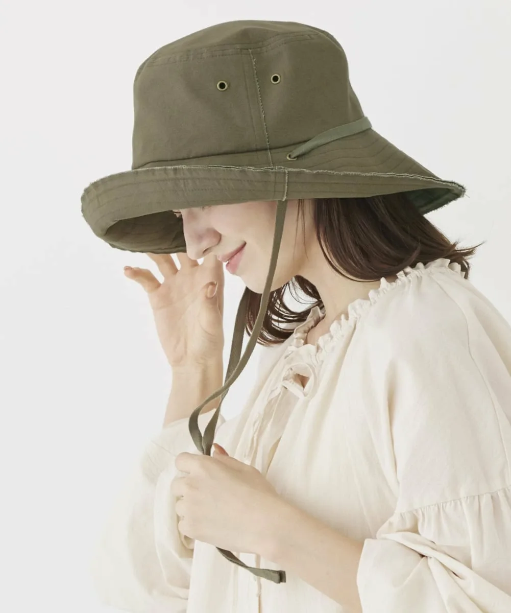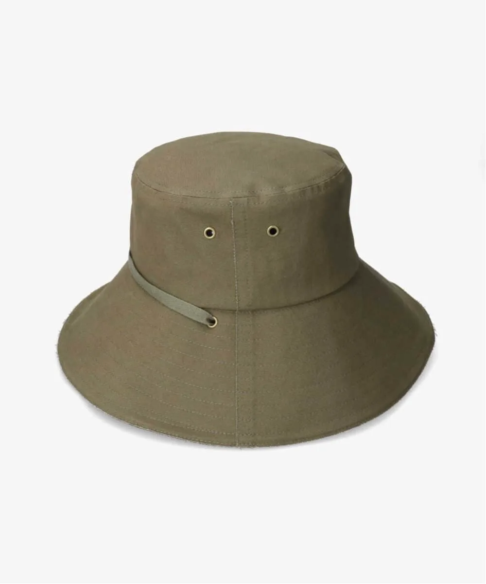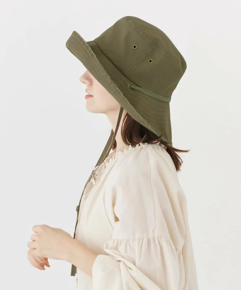 Шляпа с широкими полями из хлопчатобумажной ткани. В кончик полей вшита проволока, позволяющая создавать различные стили, включая обычное поднятие и опускание полей или использование ремешков под подбородком для поднятия и завязывания обоих полей, создавая эффект широкополой шляпы. Рекомендуется для повседневной носки и активного отдыха на природе. Можно сложить или свернуть. Регулируется изнутри для идеальной посадки.