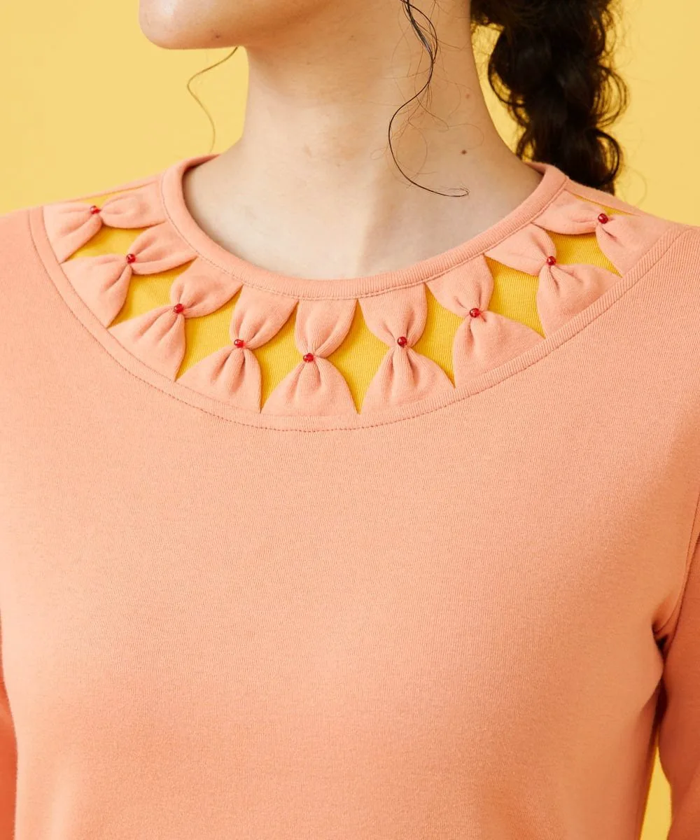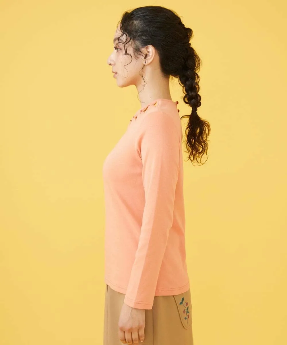 Топ с длинными рукавами и привлекательным дизайном на груди. Он имеет лаконичный силуэт, который легко носить. Лентообразный мотив на груди и использование бусин в тон делают его уникальным. Также стоит отметить три расположенные в ряд пуговицы на спине. Благодаря широкому выбору цветов, этот топ мы рекомендуем для вашей следующей прогулки.