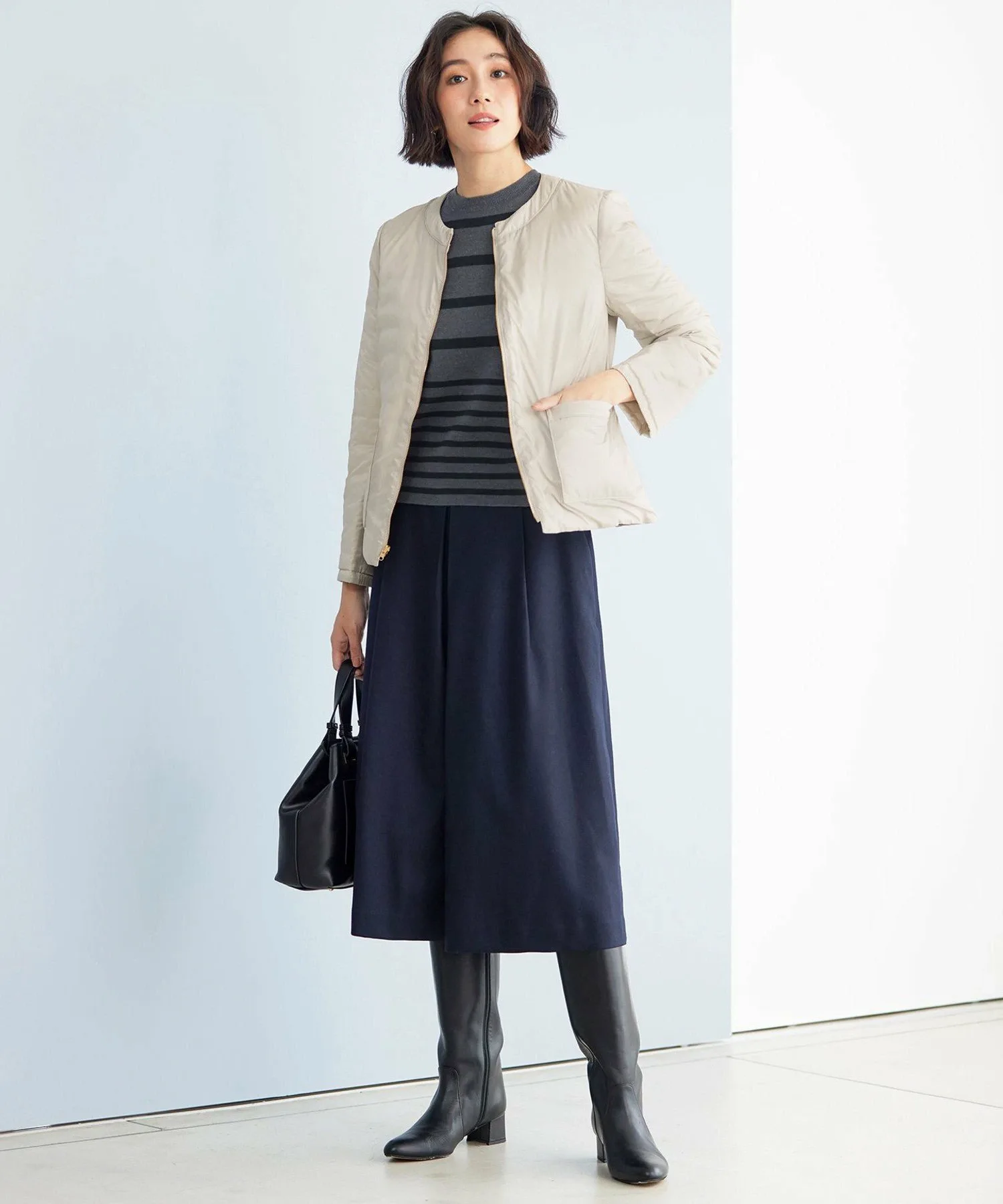 Этот трикотаж в градиентную полоску, созданный в сотрудничестве со стилистом Аей Миёси, идеально подходит для взрослых. Дизайн: Этот полосатый трикотаж создан в сотрудничестве с Аей Миёси, стилистом, чьи работы публиковались в различных журналах. Полосы сужаются к талии, создавая обтекаемый силуэт. Изделие отличается вниманием к деталям, включая компактный круглый вырез, глубокие разрезы на манжетах, которые выгодно подчеркивают запястья, и боковые разрезы. Его красивый силуэт максимально использует характеристики материала. Материал: Смесь мягкой шерсти и объемного акрила, которая не скручивается для придания объема и легкости, создает миланскую рубчатую ткань средней плотности с оптимальной плотностью и объемом. Она имеет компактную, чистую текстуру. Похожие товары: вязаный топ с вырезом-стойкой (KRWMCW0556), жилет (KRWMCW0557), юбка (SKWMCW0556) Обратите внимание, что изображение является образцом; характеристики, отделка и размер могут незначительно отличаться от фактического продукта. Благодарим за понимание. *Из-за условий съемки цвет фактического продукта может выглядеть иначе. Рост: 175 см, Обхват груди: 80 см, Обхват талии: 60 см, Обхват бедер: 88 см.