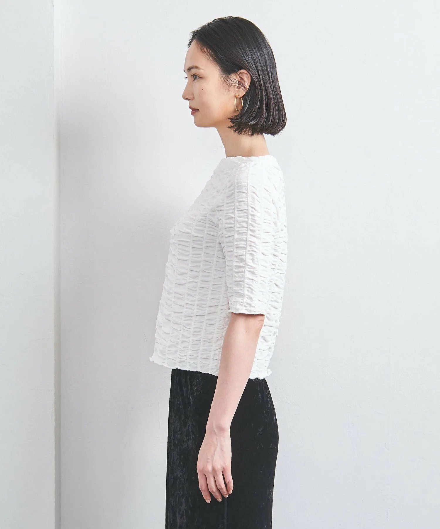 Трикотажный топ с изящным дизайном и текстурой, создаваемой сборками.