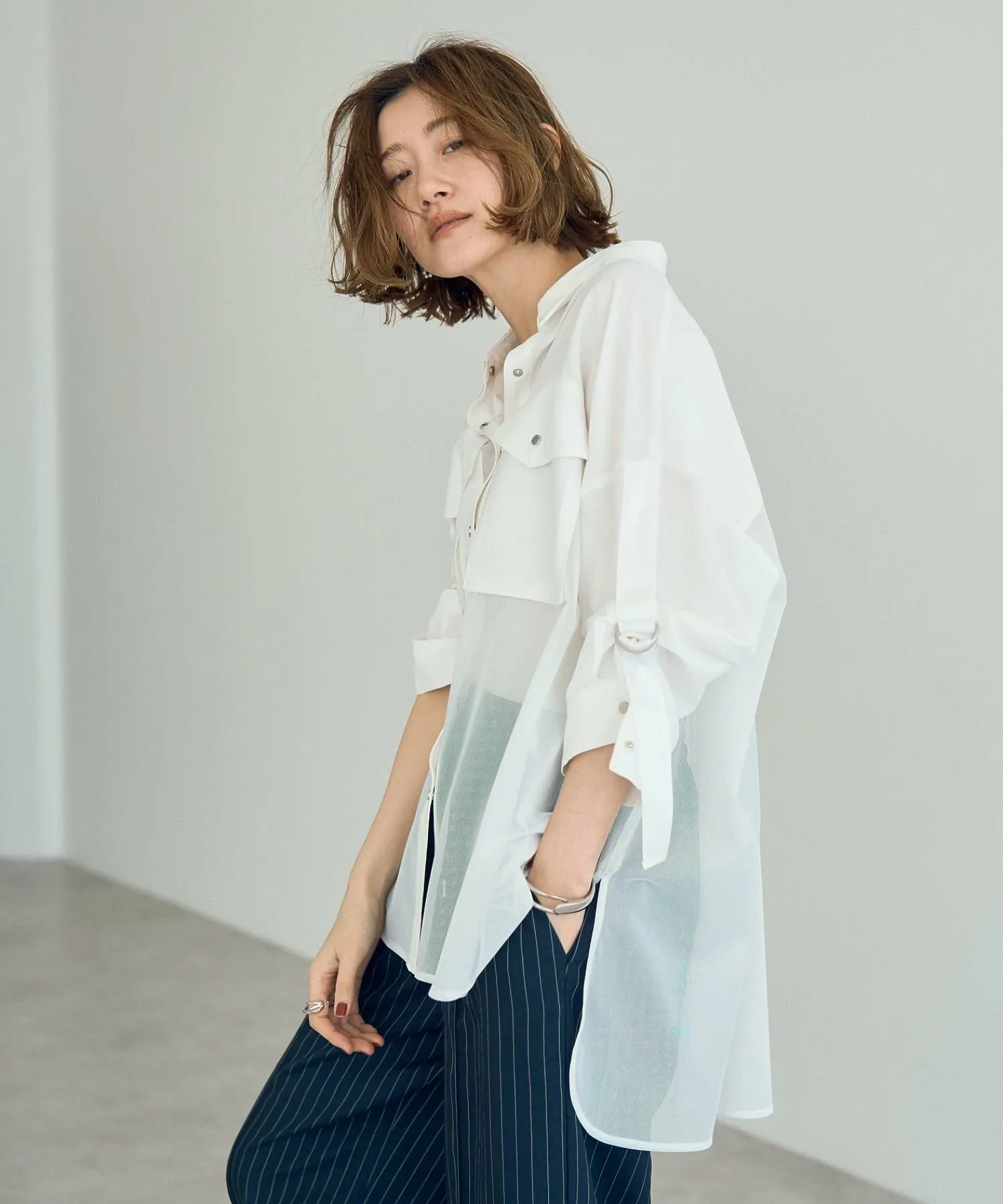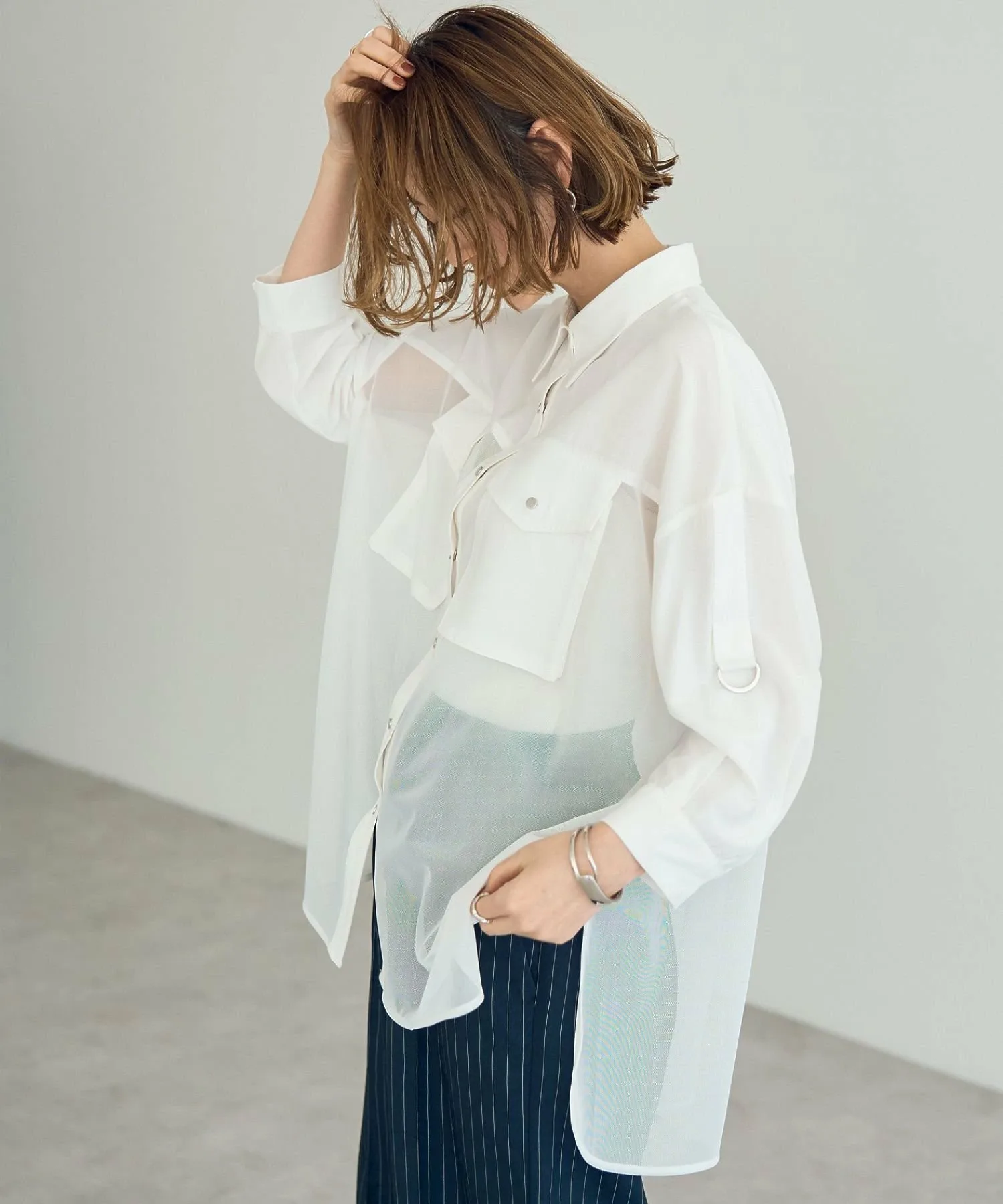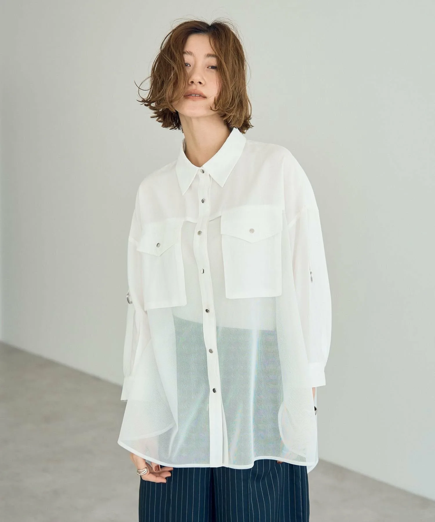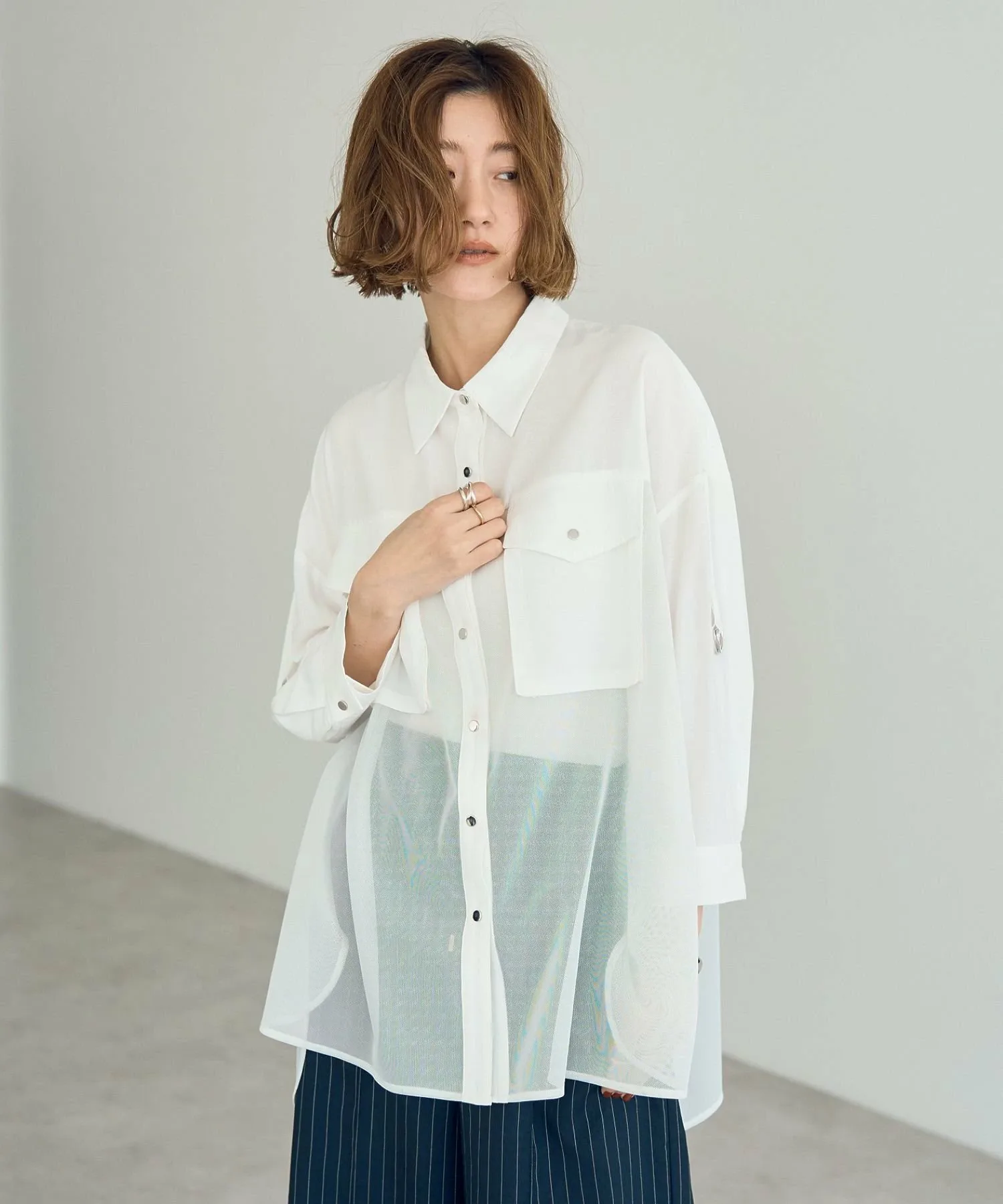 Рубашка из изысканной, слегка блестящей ткани в сочетании с сеткой.