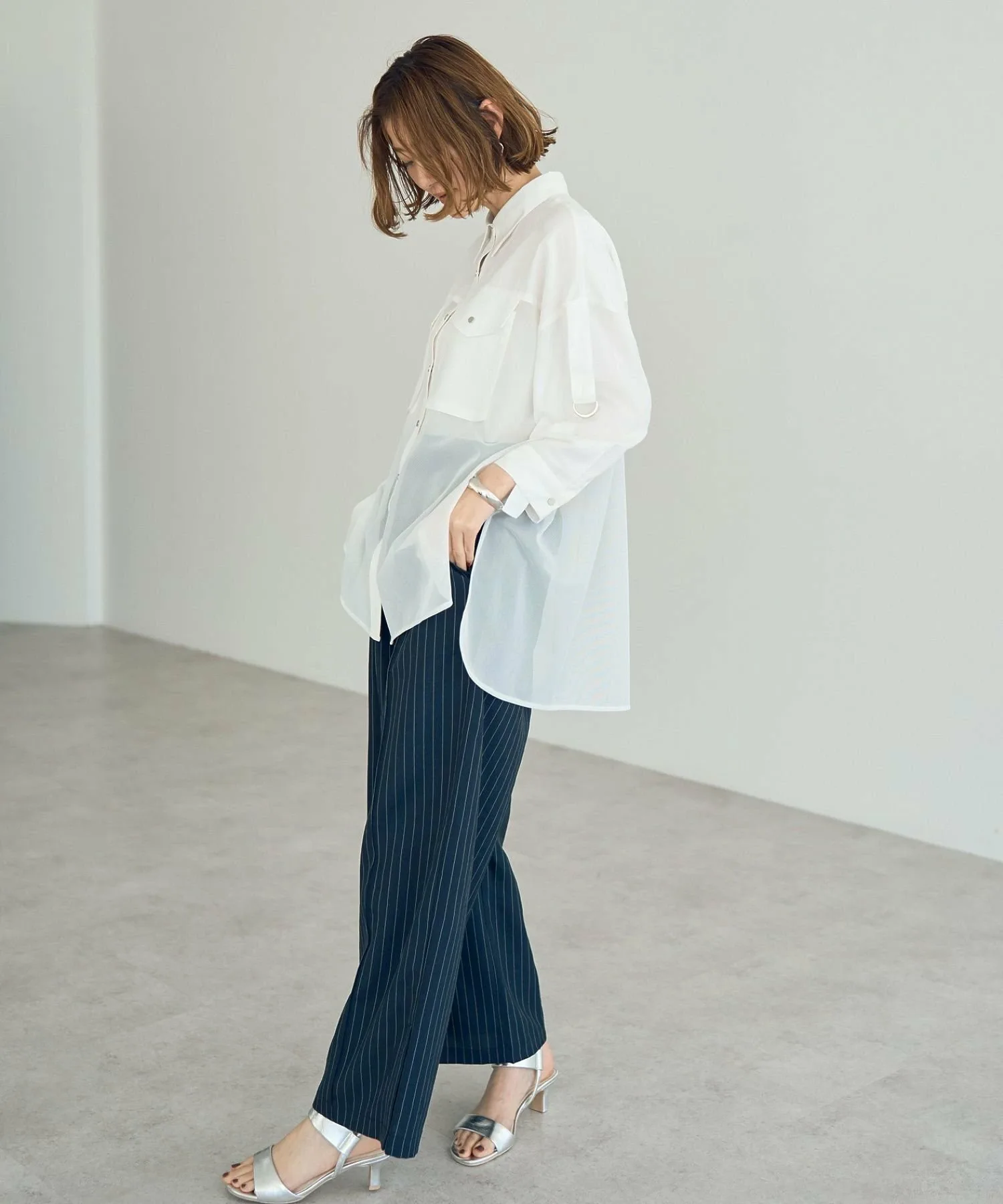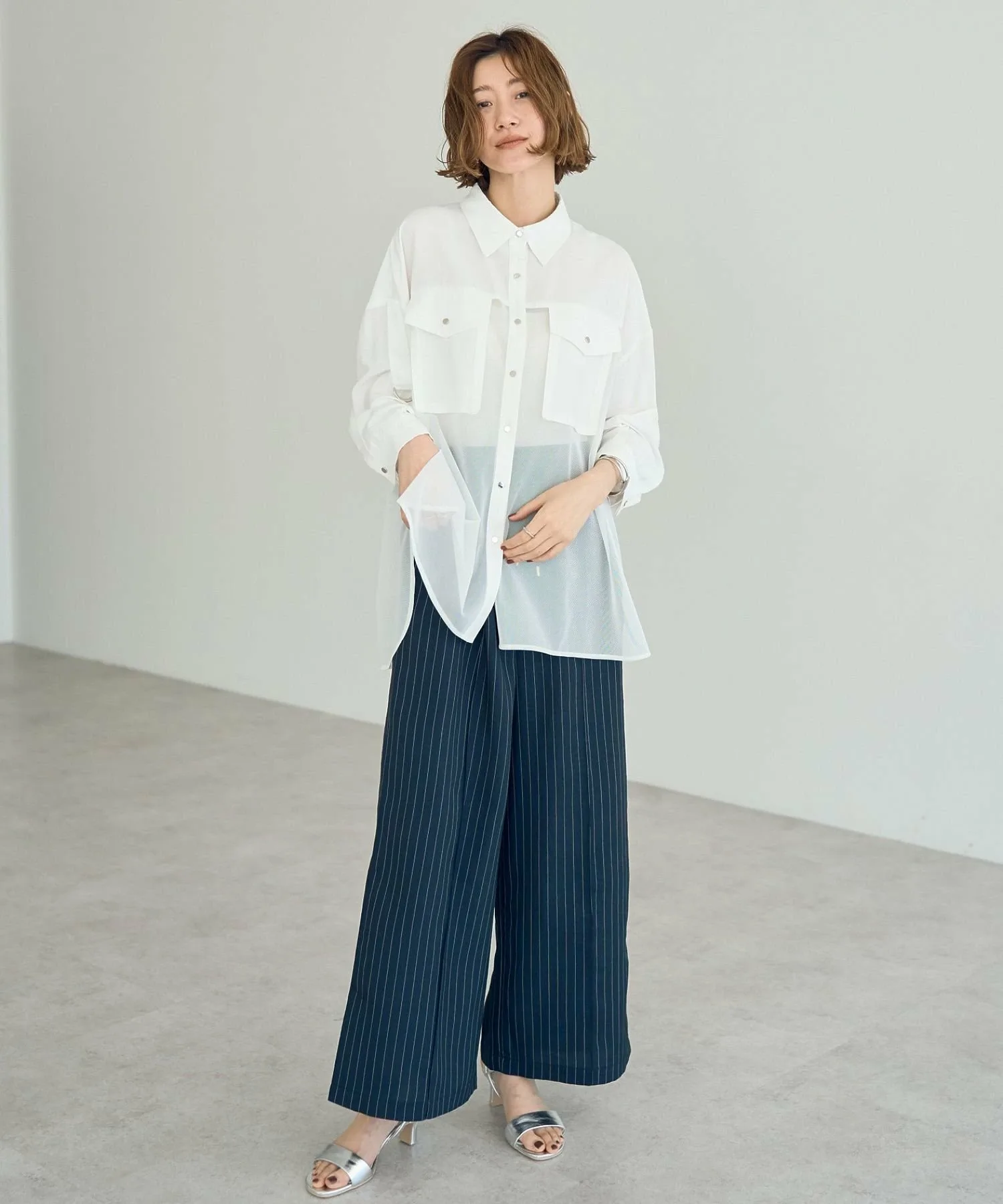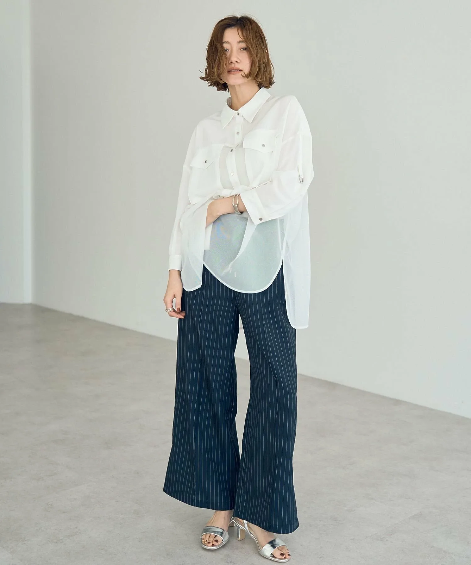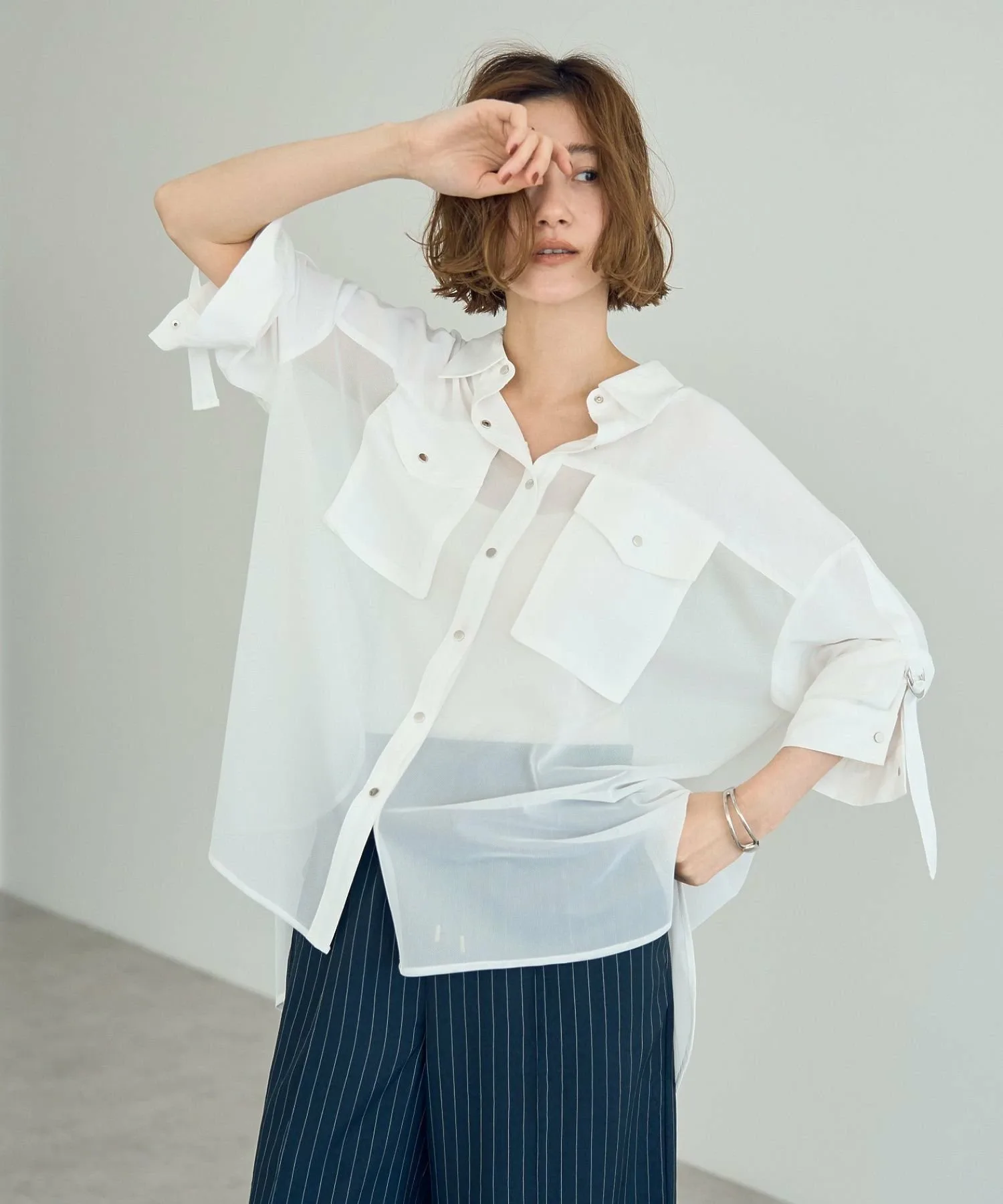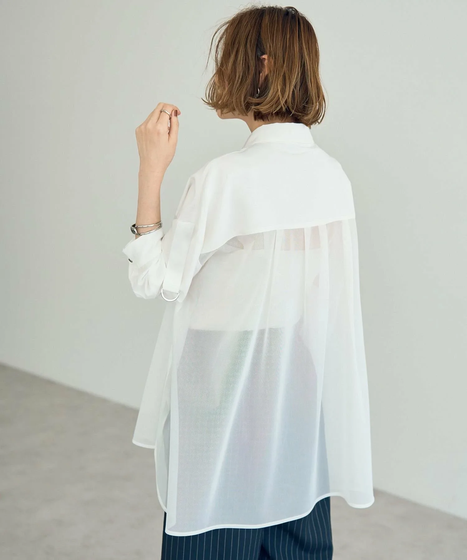 Рубашка из изысканной, слегка блестящей ткани в сочетании с сеткой.