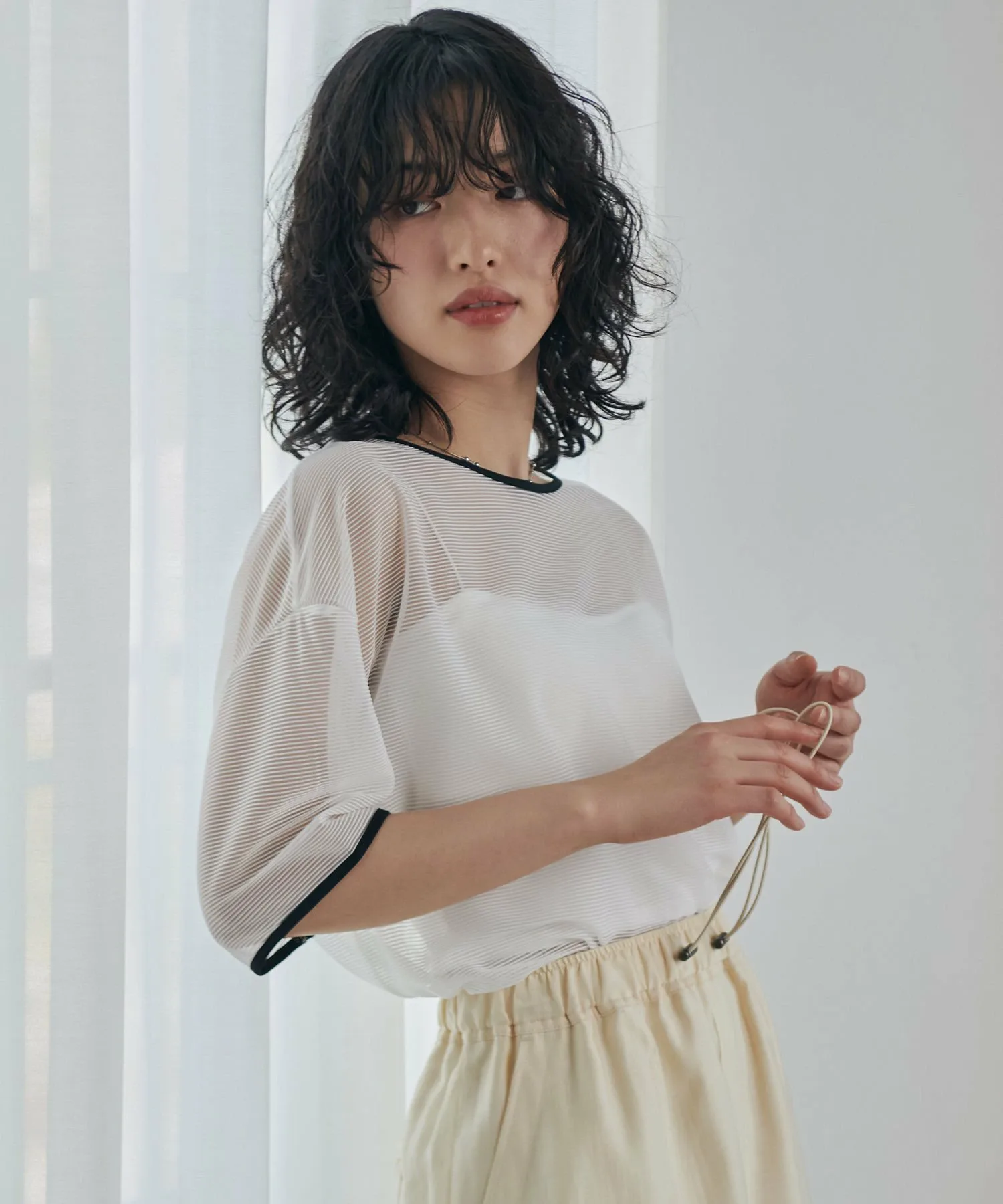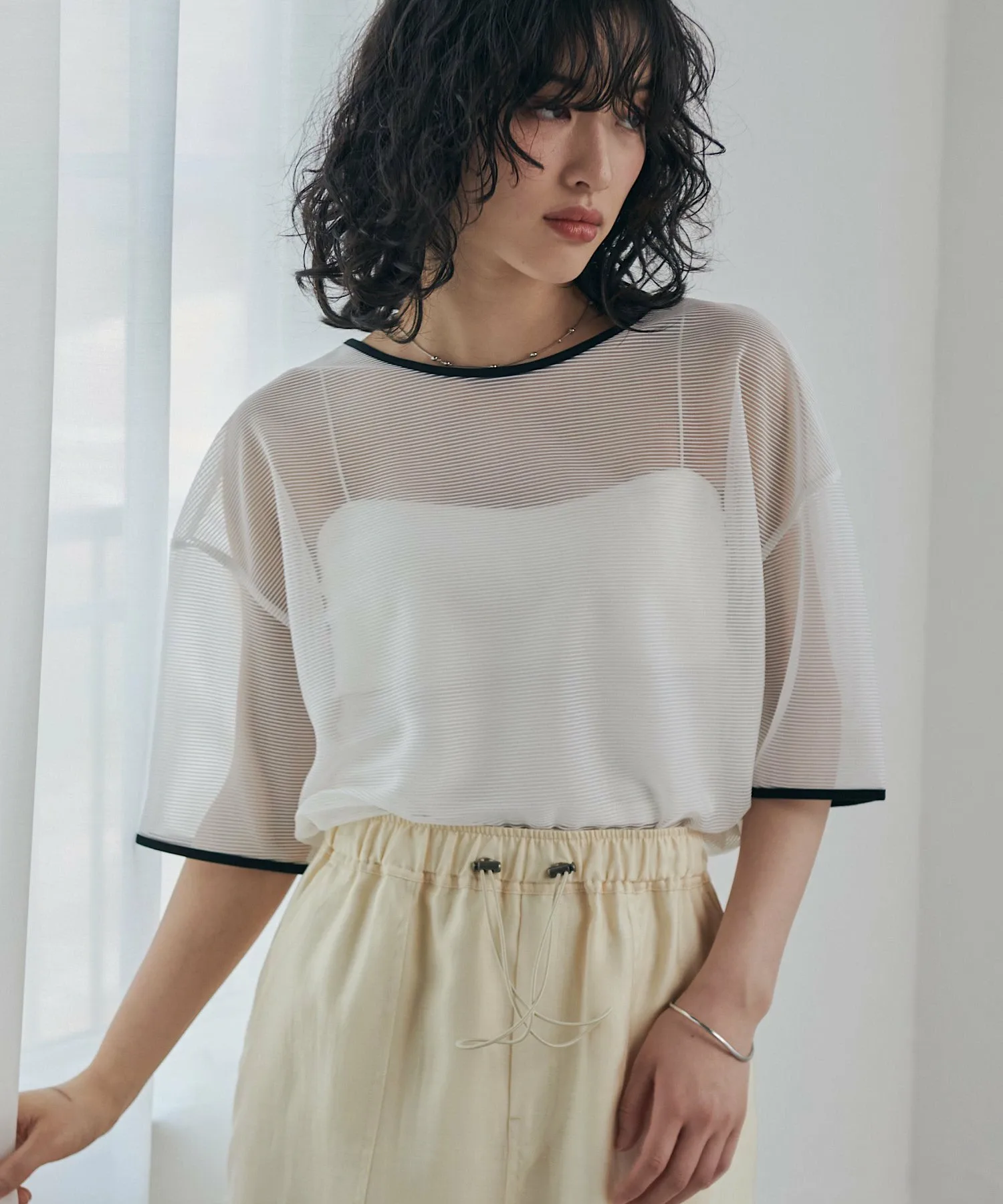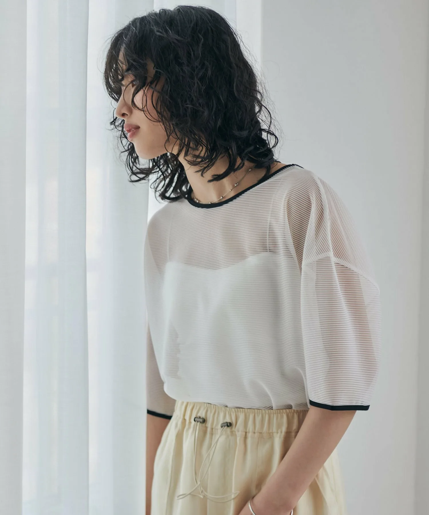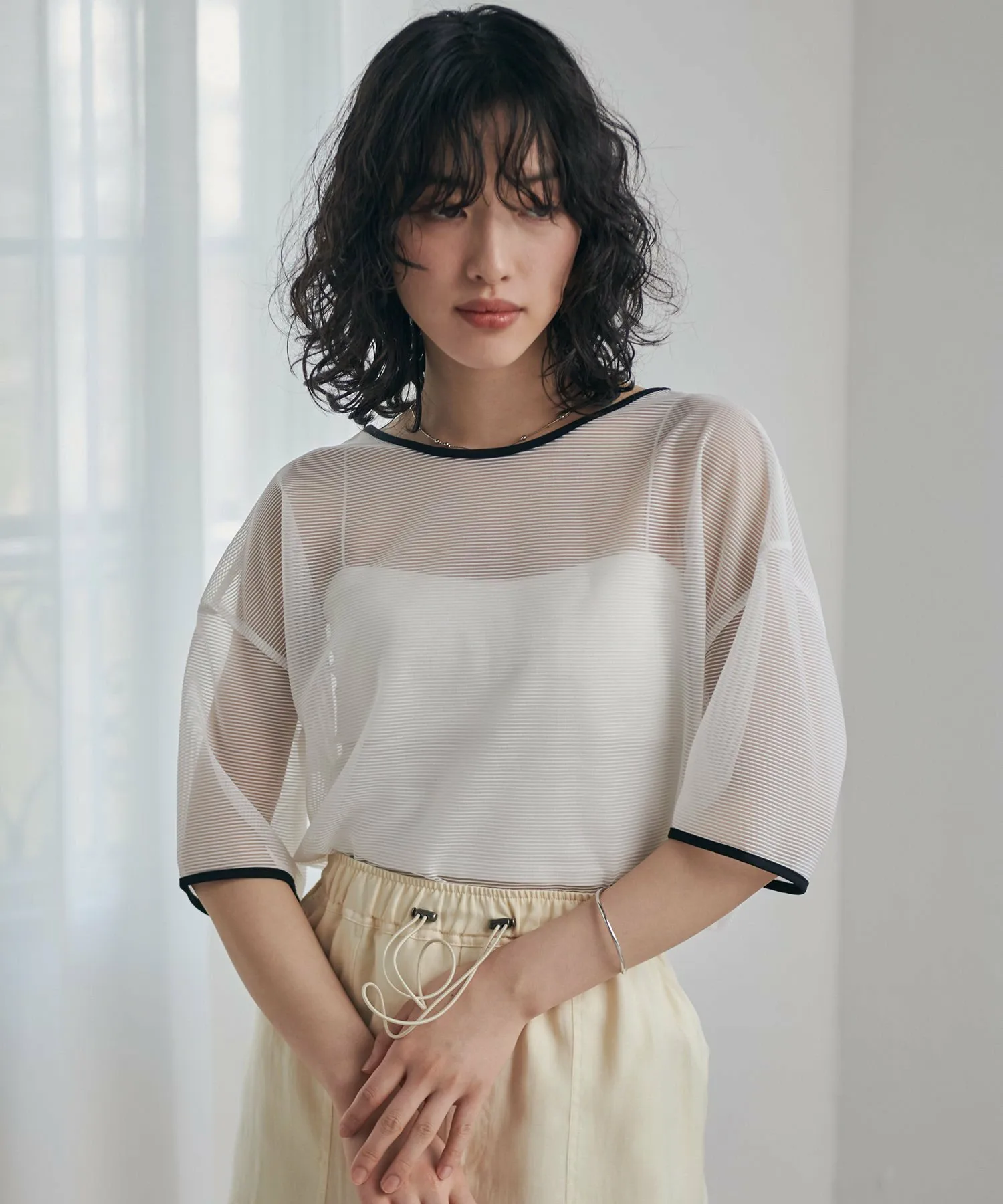 Полупрозрачный полосатый трикотаж.