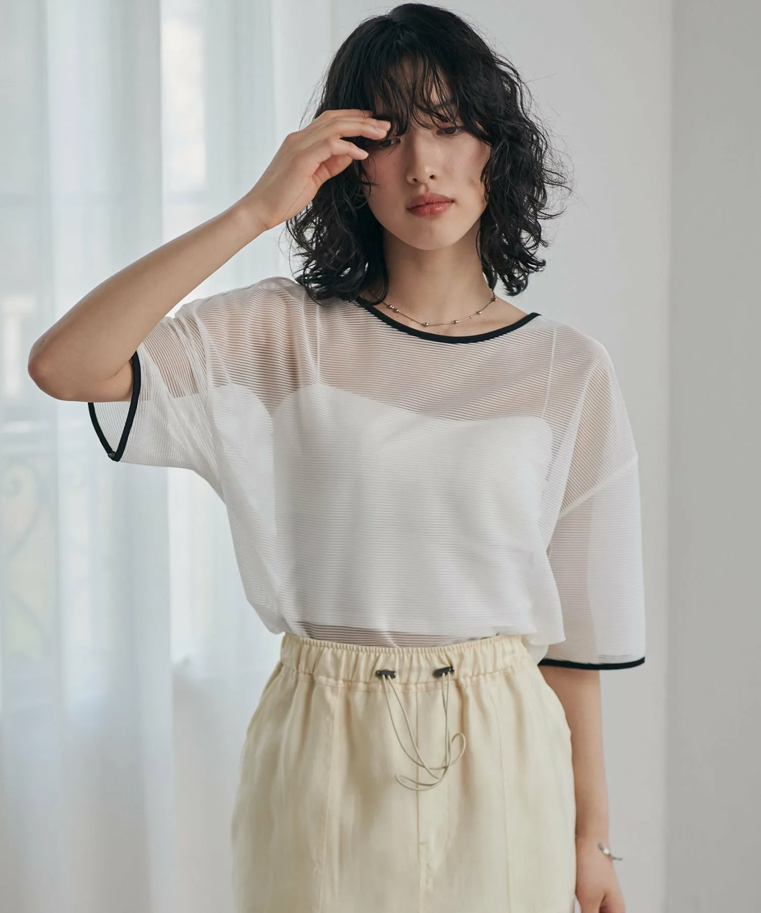 Красивая полупрозрачная полосатая футболка с контрастной отделкой. Вещь, которая отлично смотрится даже сама по себе!