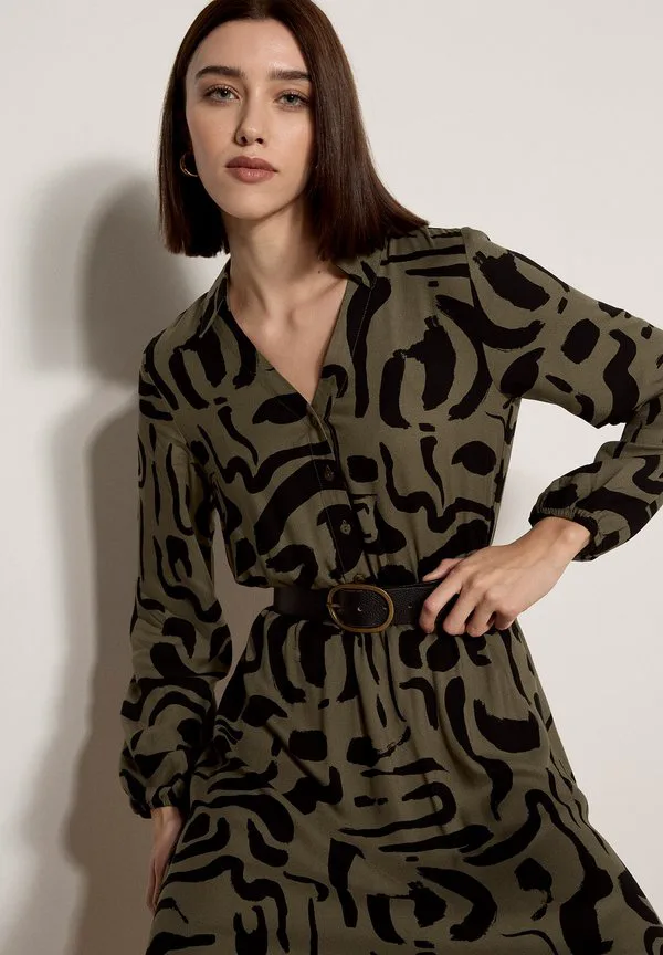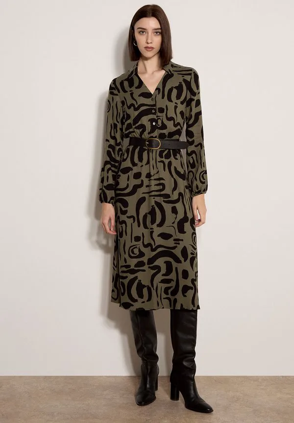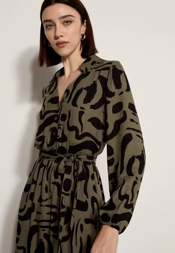 Абстрактное мазковое миди-платье Apricot, Khaki