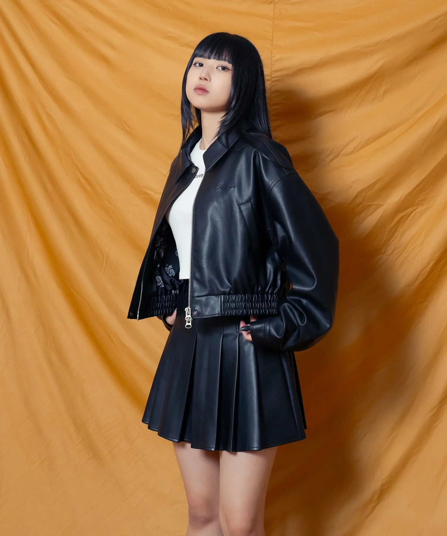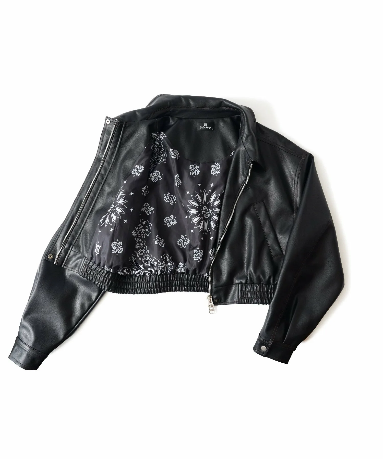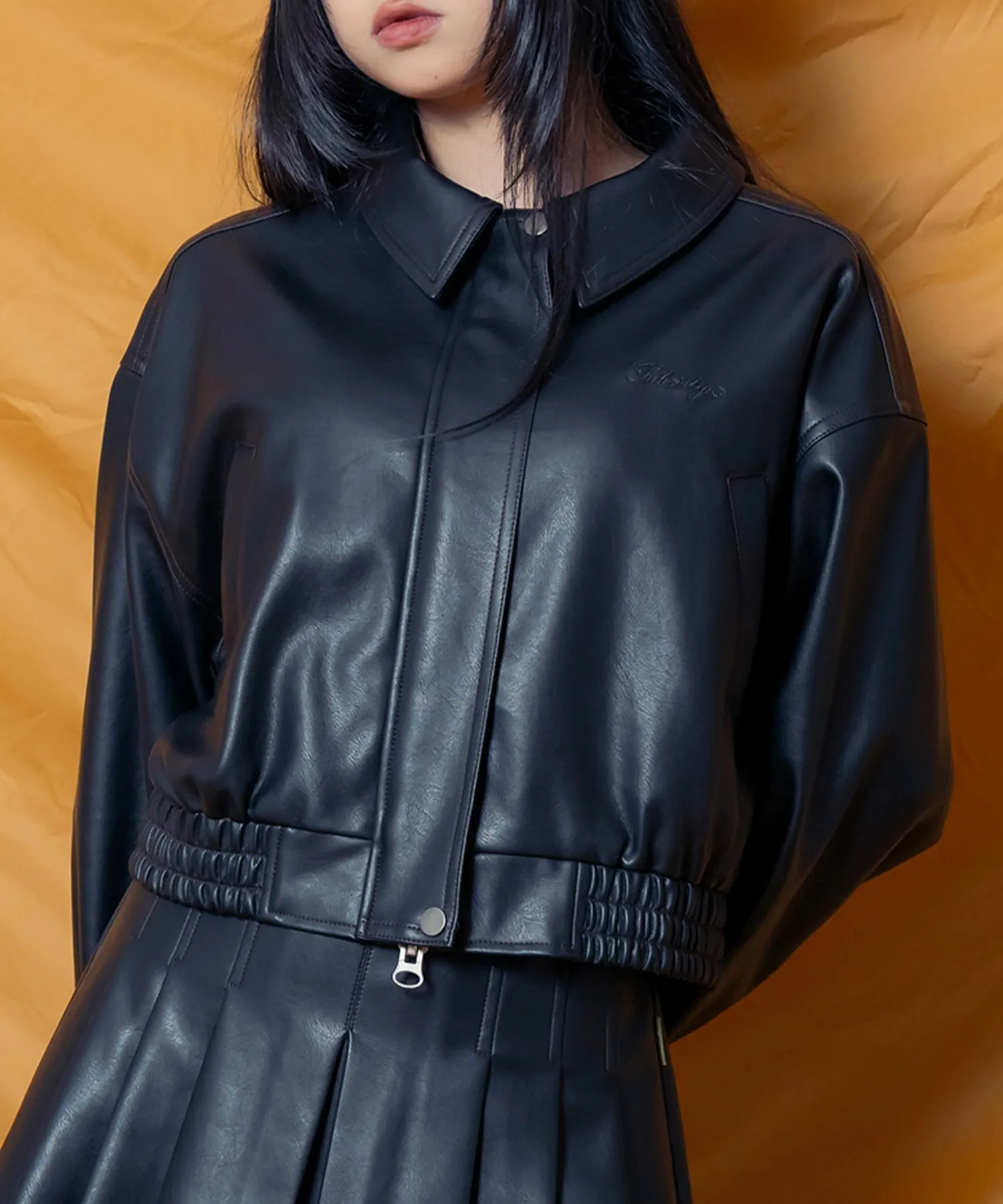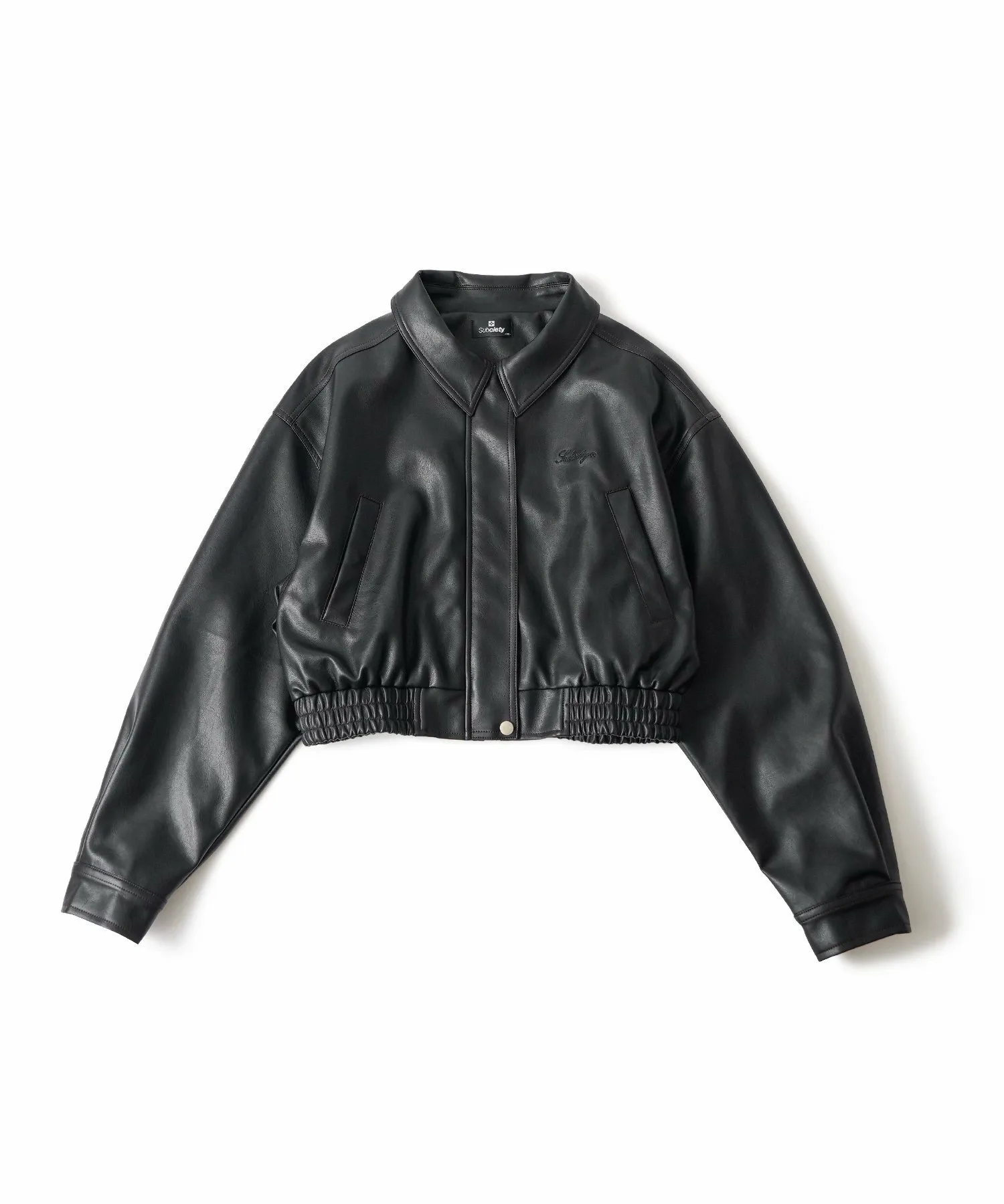 Укороченная куртка-бомбер из искусственной кожи с реалистичной зернистой текстурой.