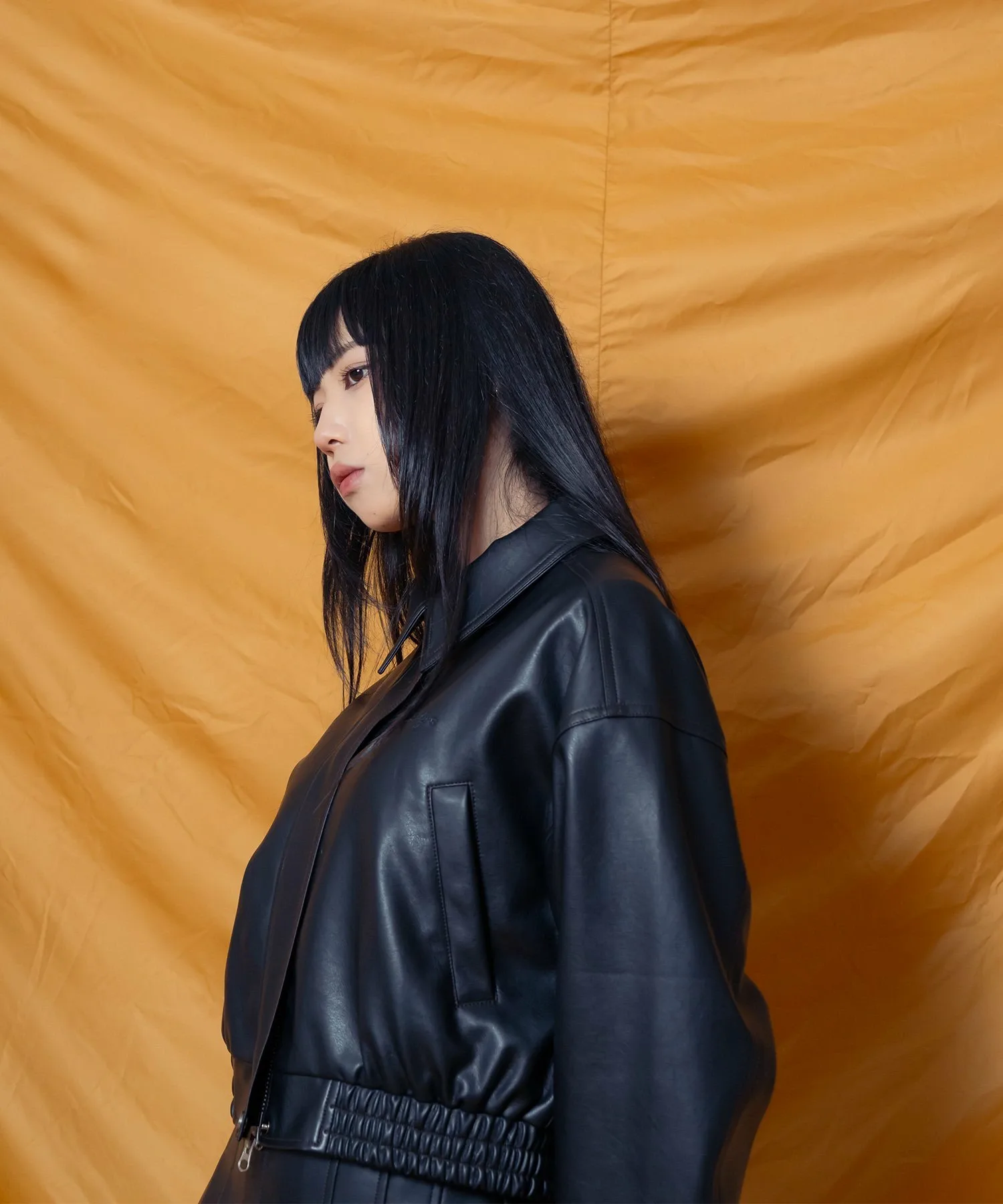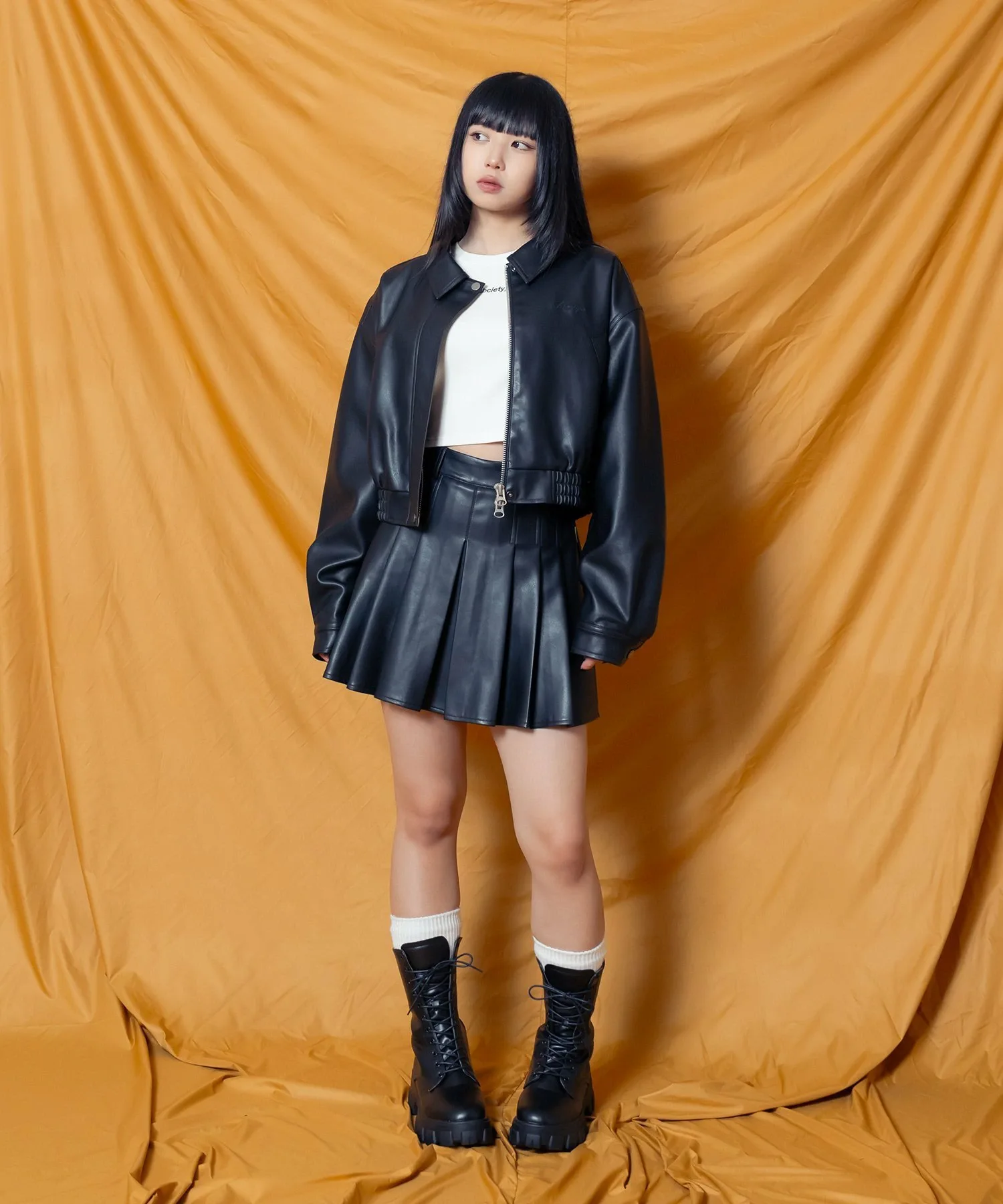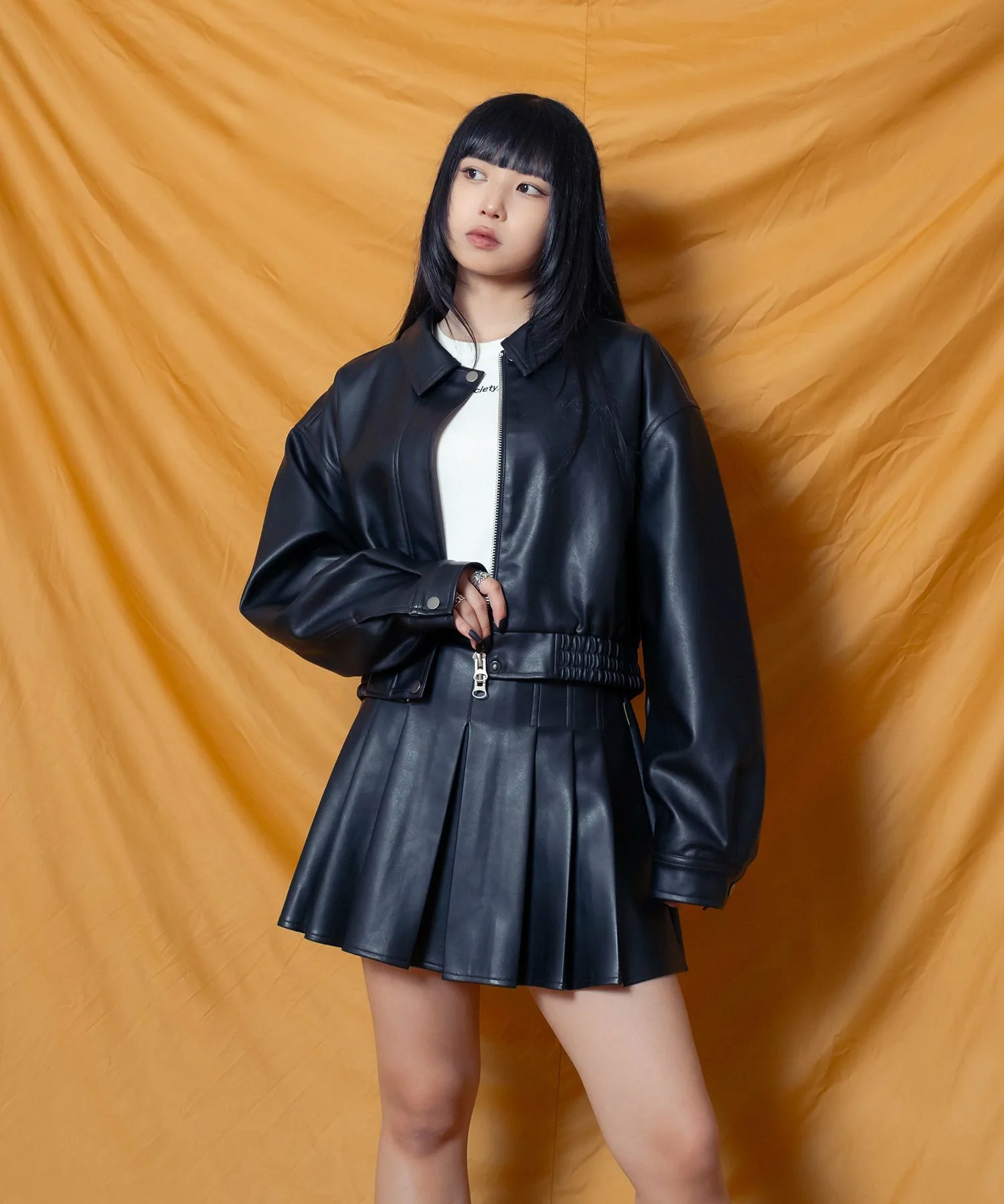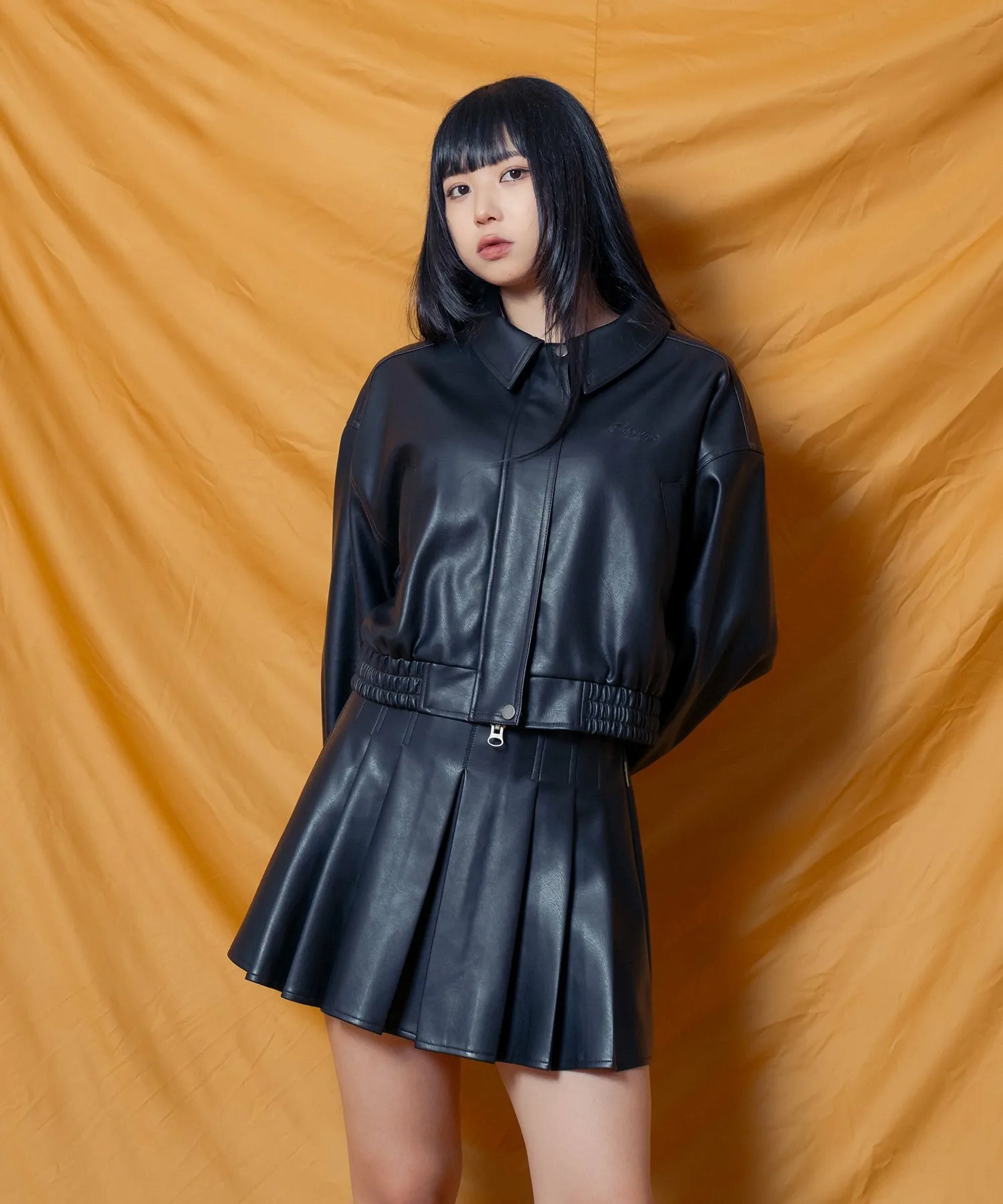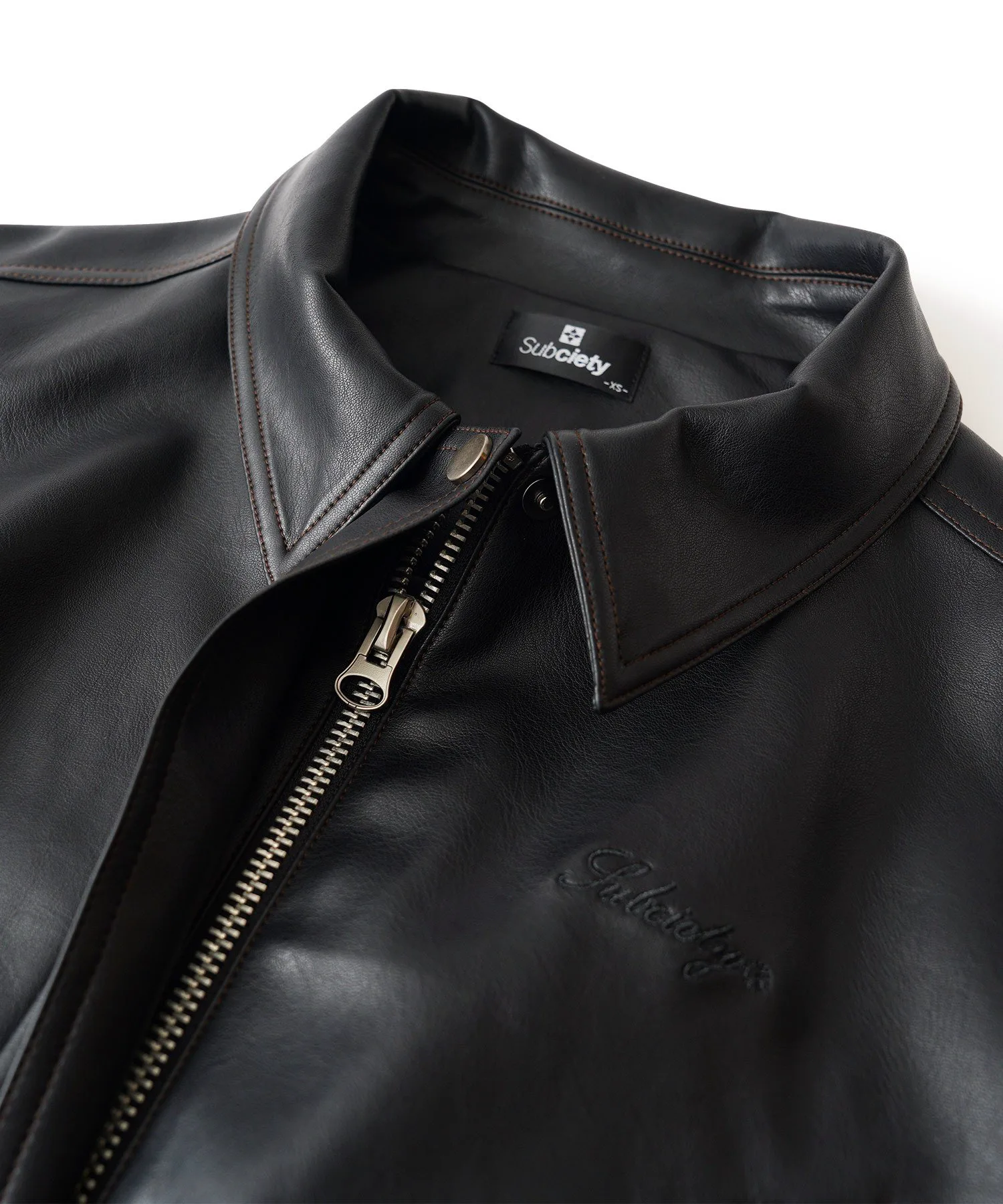 Укороченная куртка-бомбер из искусственной кожи с реалистичной зернистой текстурой.