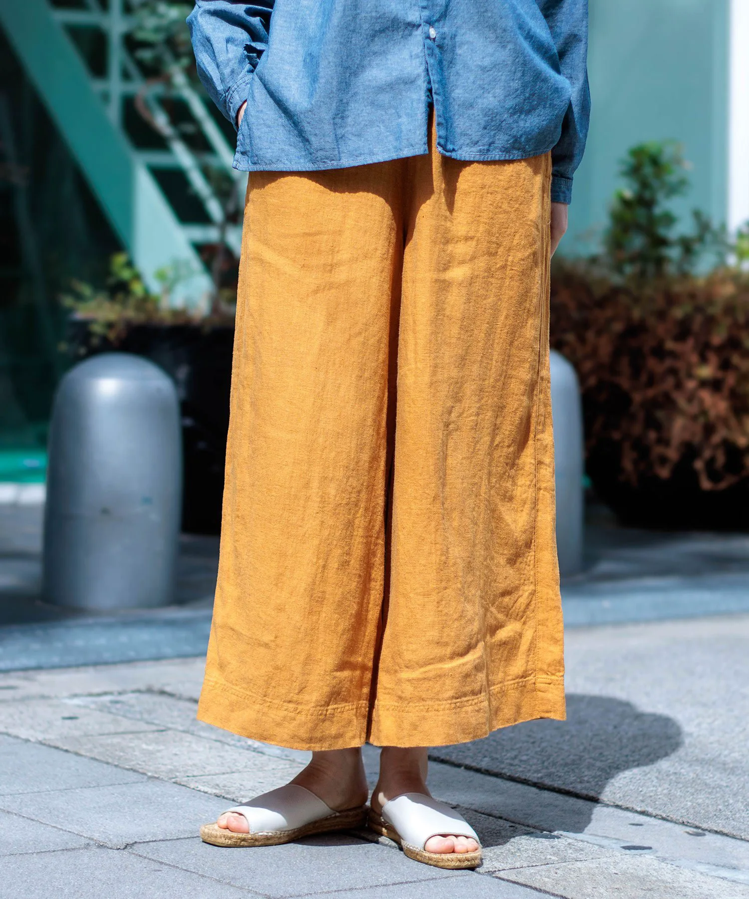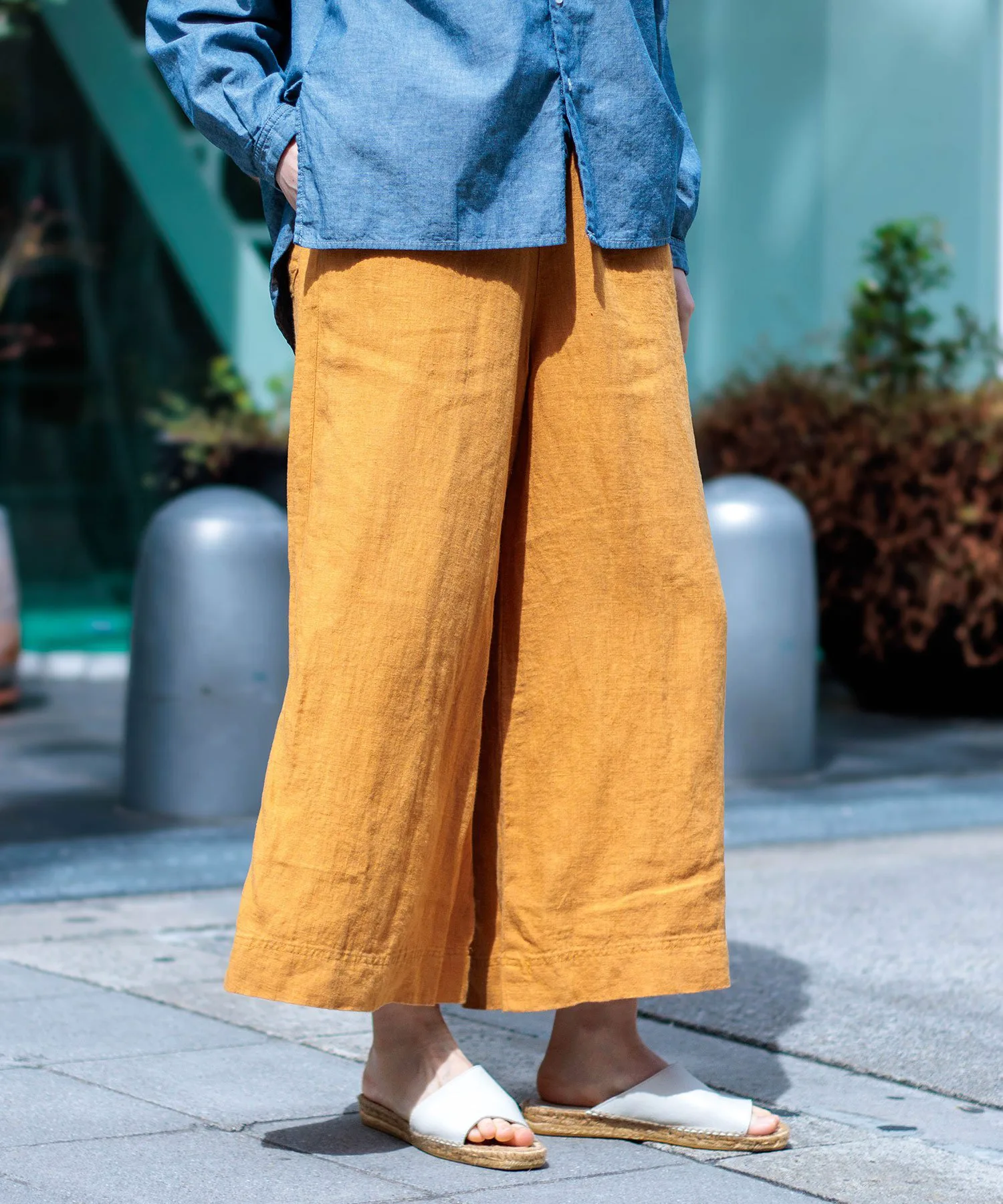 Изготовлены из 100% льняной ткани с приятной, прохладной текстурой. Лен не слишком тонкий и не слишком толстый, поэтому не нужно беспокоиться о просвечивании.Материал, сочетающий гладкую, мягкую текстуру с легкостью. Ткань плотная и прочная, поэтому ее удобно носить без зуда и просвечивания.Пояс полностью эластичный и имеет внутренний шнурок для регулировки посадки, что делает эти удобные брюки комфортными и удобными. Умеренный А-образный силуэт мягко колышется при каждом шаге, создавая прохладный, воздушный силуэт. Благодаря высокой воздухопроницаемости эти брюки идеально подходят для длительного ношения. ……………………Прозрачность: ОтсутствуетТолщина: Слегка тонкаяРастяжимость: ОтсутствуетТалия: Эластичная (со шнурком)Можно стирать: Да……………………100% лен