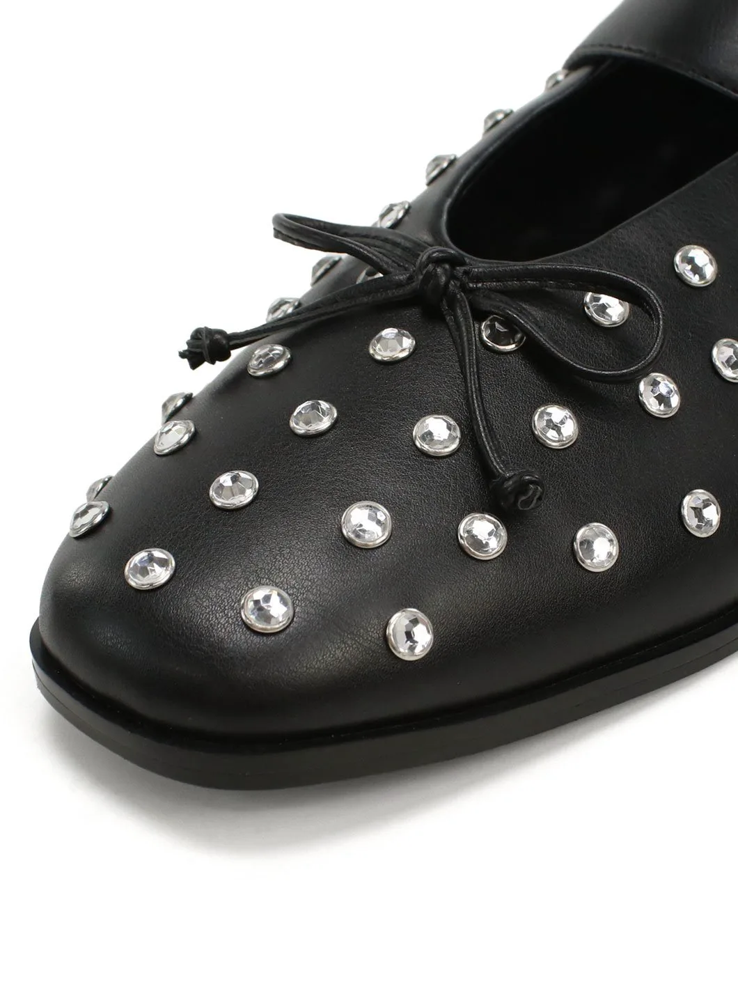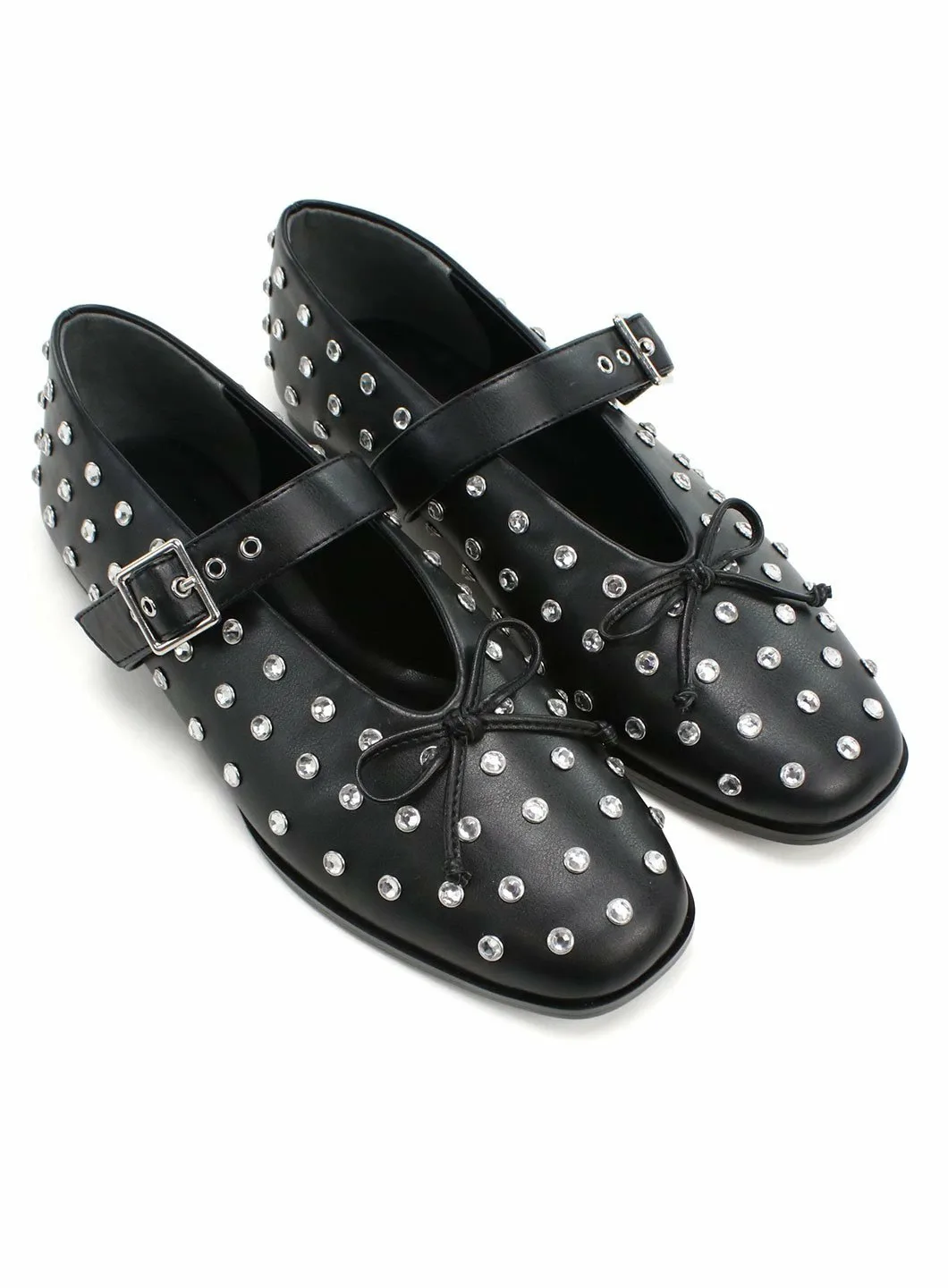 Черный 2: Яркий, привлекательный материал, изготовленный из гладкой экокожи с металлическими стразами, расположенными в виде точек.