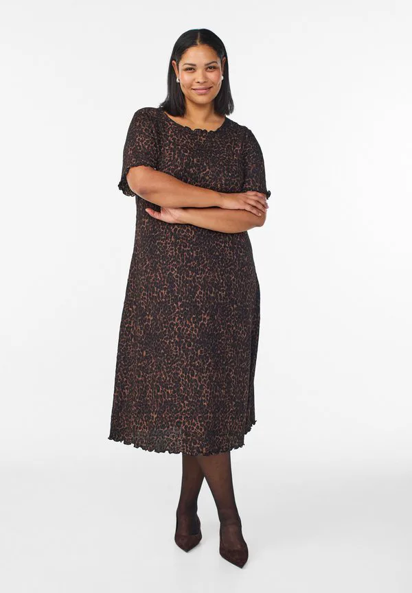 Strukturiertes mit kurzen ärmeln дневное платье Zizzi, Leopard Aop