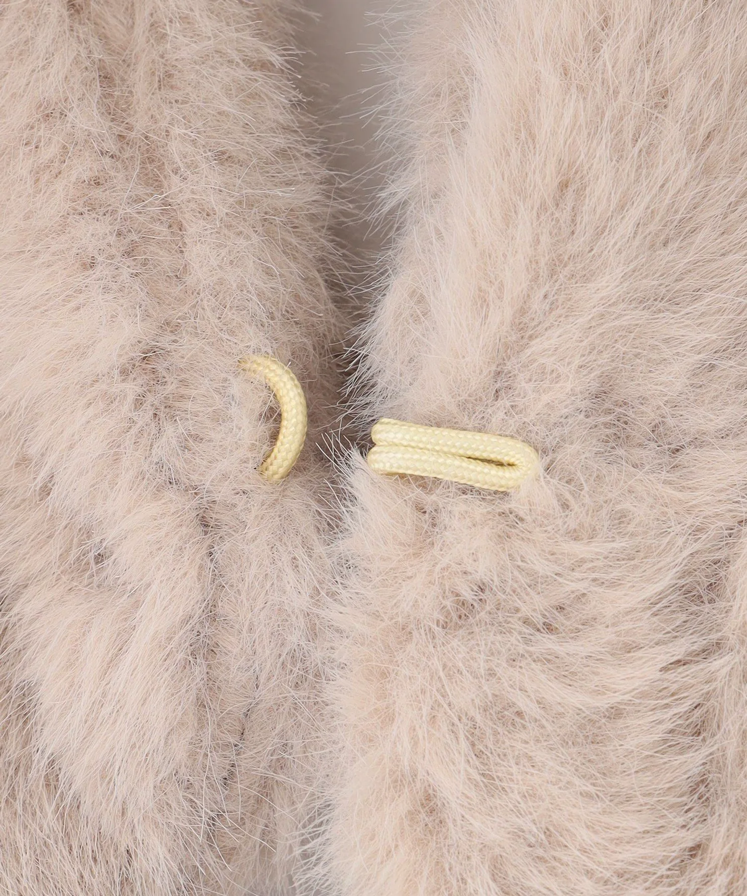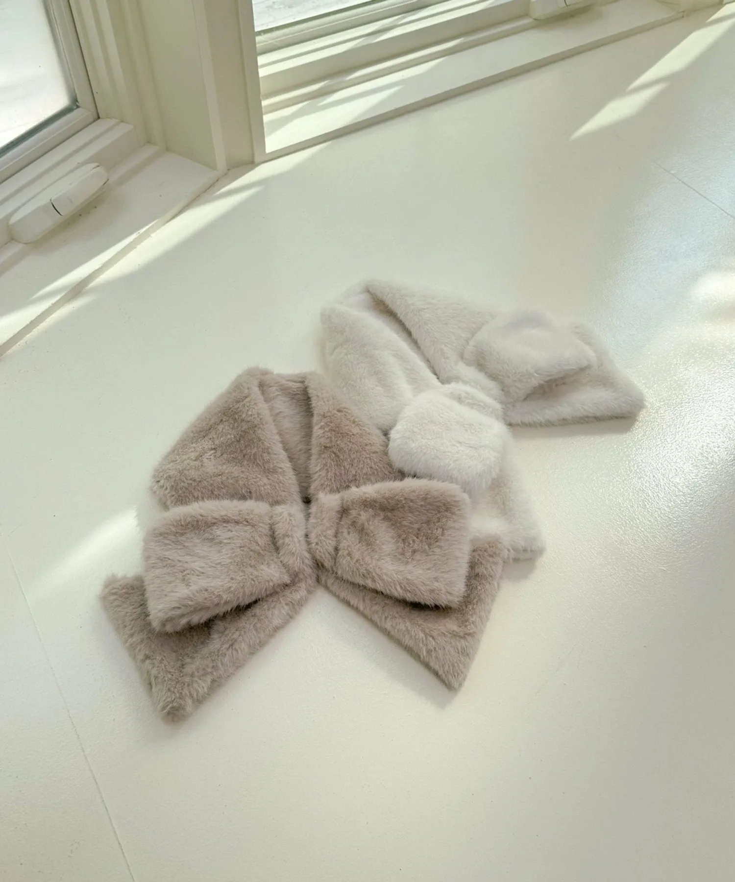 Изготовлена из мягкого эко-меха. Ее пушистая мягкость и умеренный объем сочетают в себе тепло и легкость. Доступна в двух цветах: слоновая кость и бежевый, оба легко впишутся в ваш повседневный гардероб.
